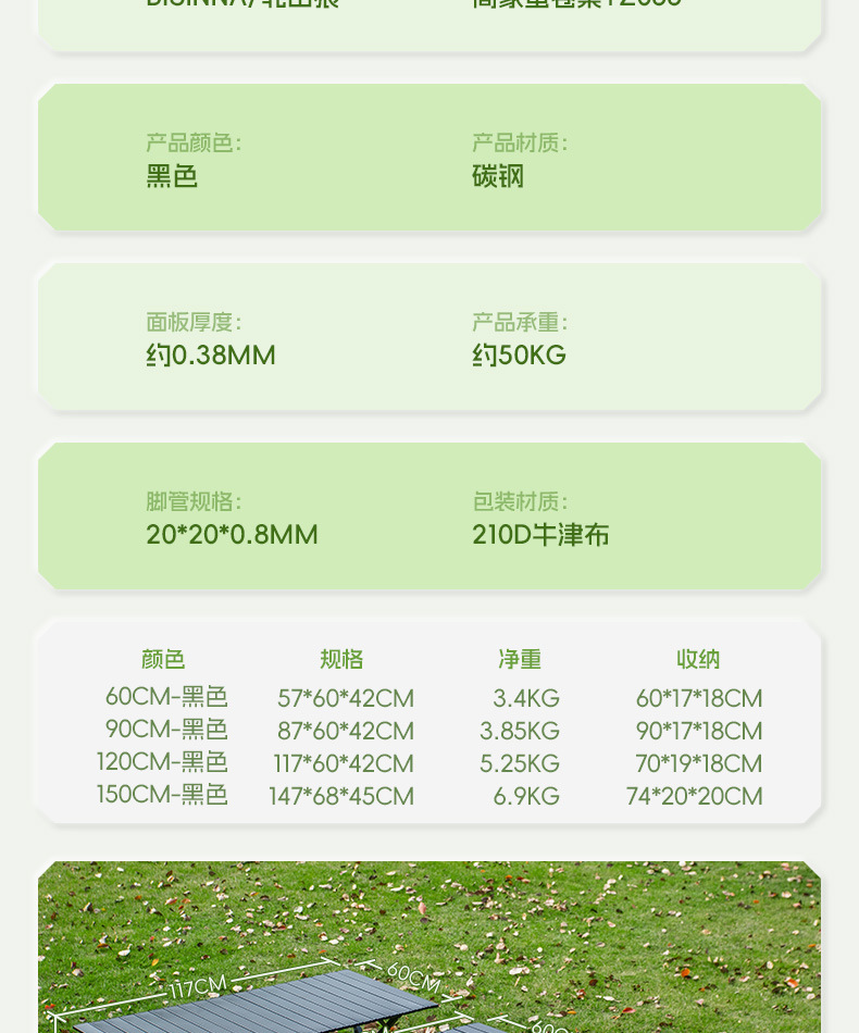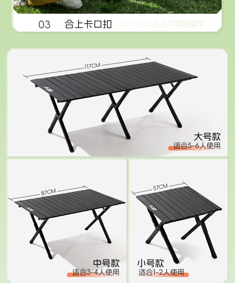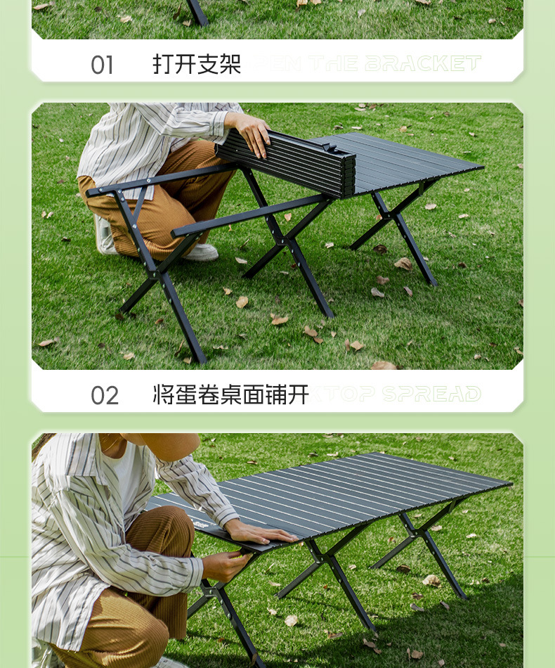 야외 캠핑 계란 롤 테이블 탄소 강철 접이식 테이블 휴대용 야외 안뜰 정원 야외 필드 식탁 및 의자 발코니 용품