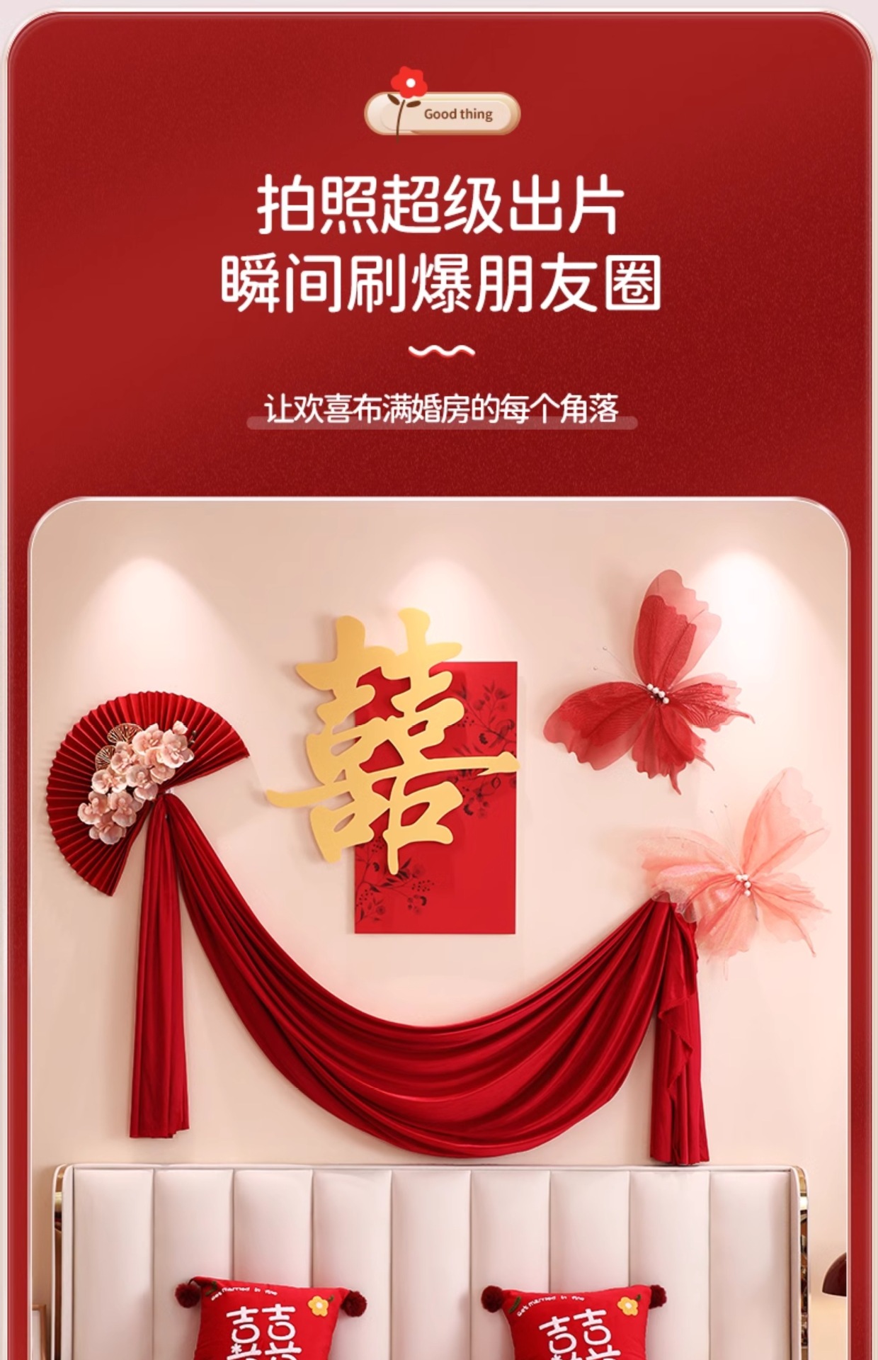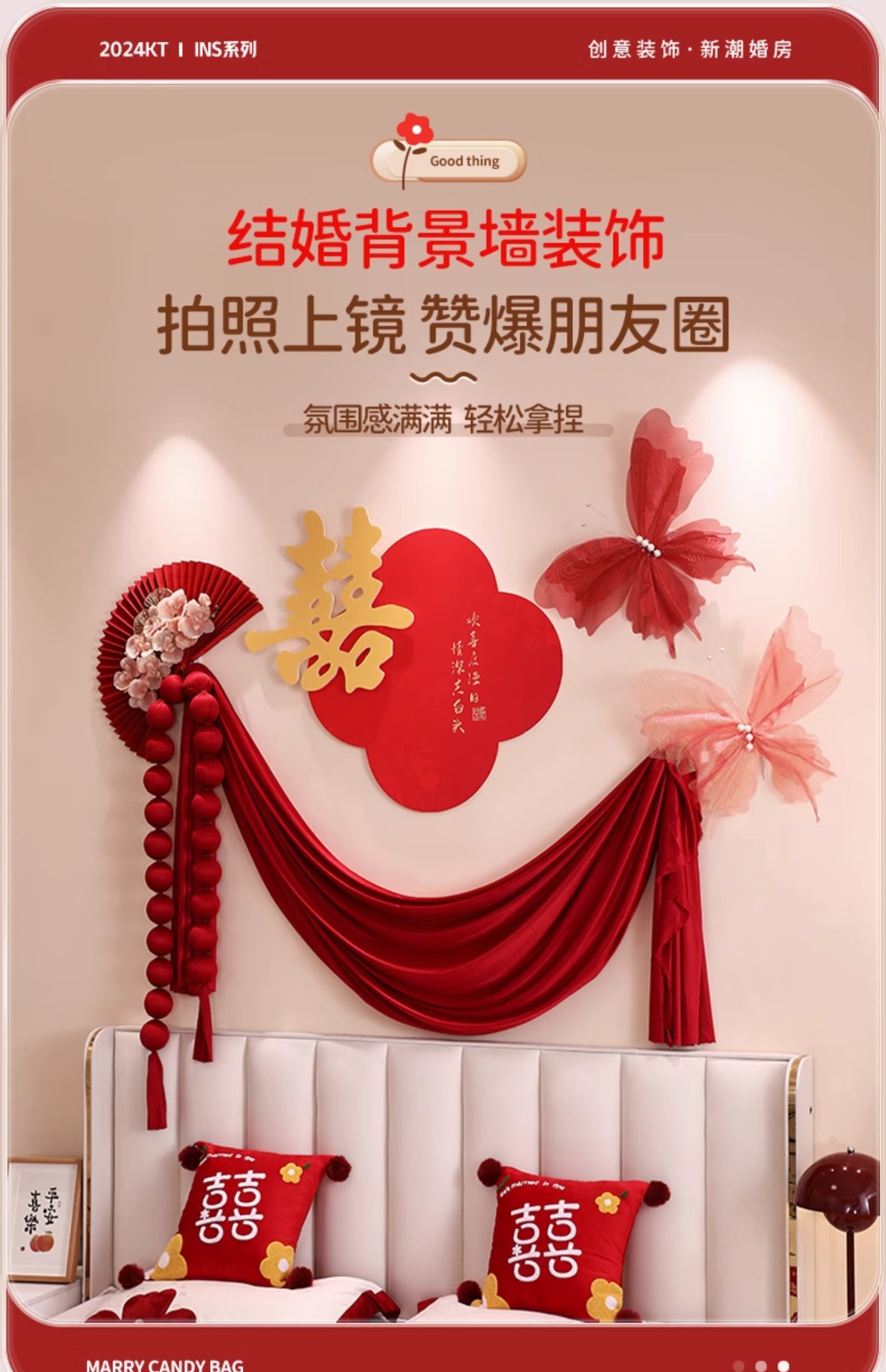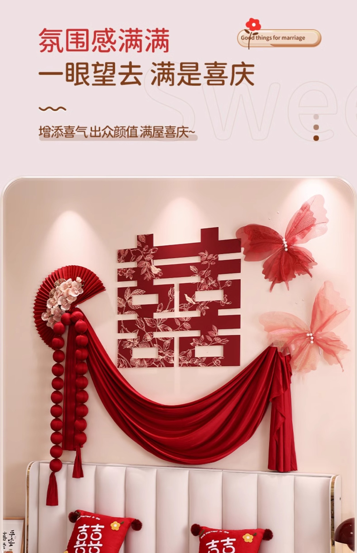 • Fangxi + 행복한 단어 매달려 천 웨딩 룸 배경 벽