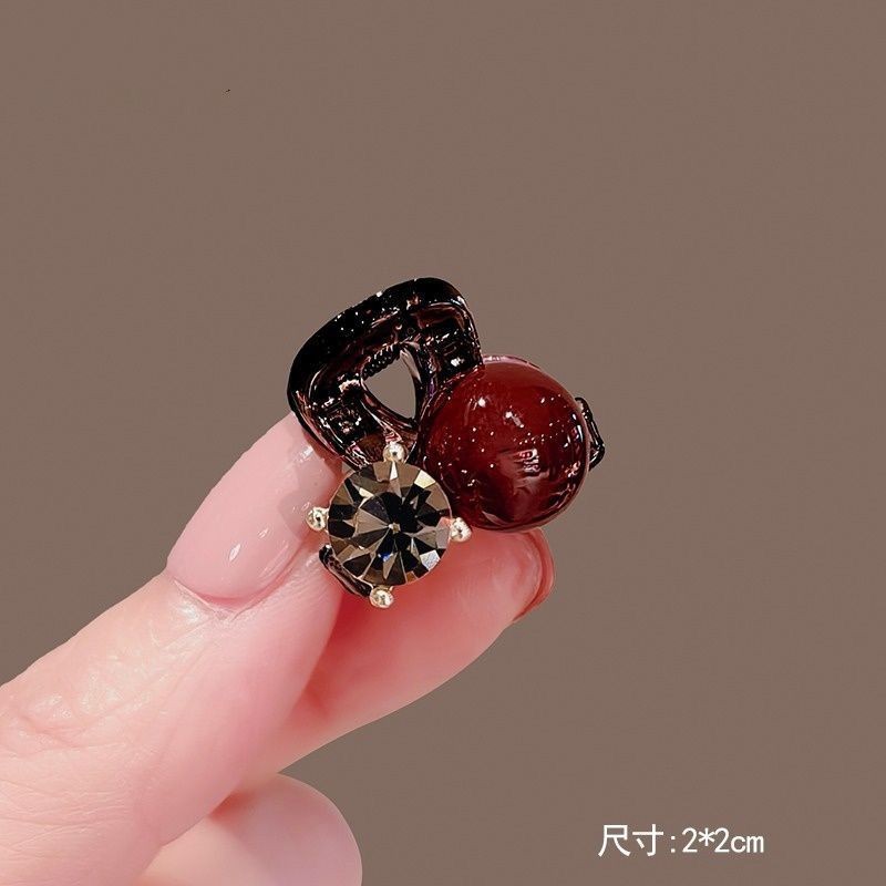레드 펄 미니 작은 잡아 클립 여성용 전면 클립 2024 새로운 스타일 뱅 클립 클립 라인스톤 헤어핀 헤어 액세서리스토어 가기