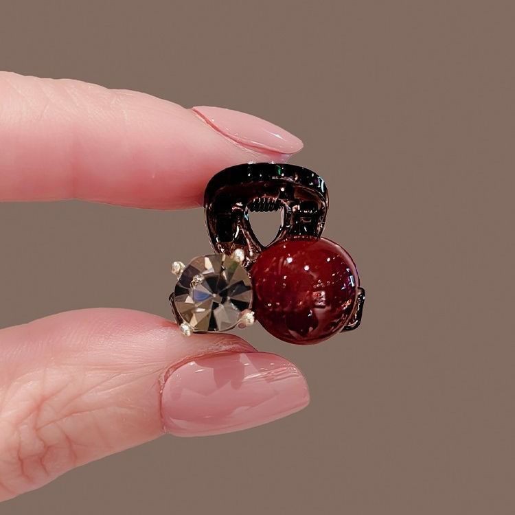 레드 펄 미니 작은 잡아 클립 여성용 전면 클립 2024 새로운 스타일 뱅 클립 클립 라인스톤 헤어핀 헤어 액세서리