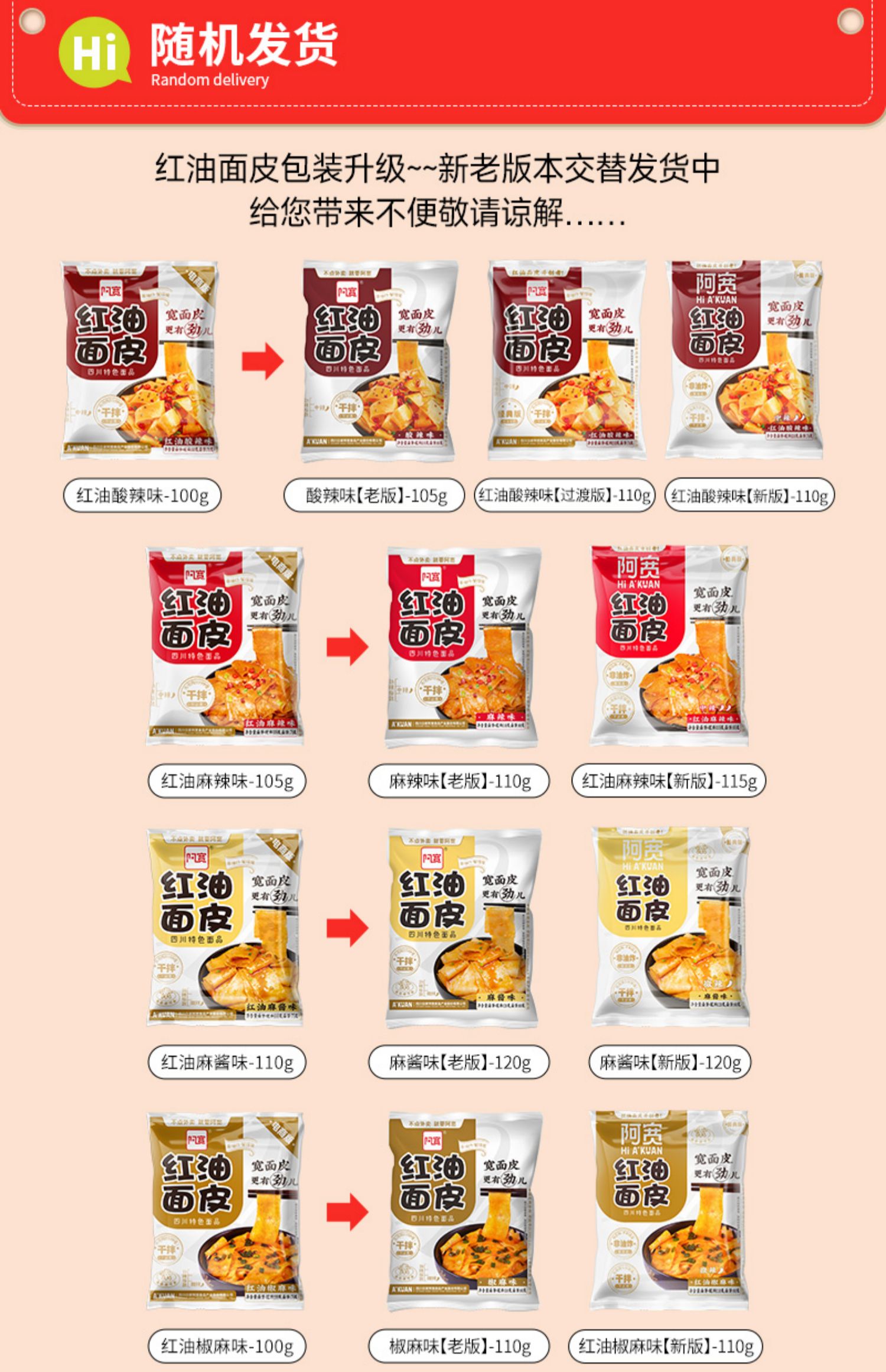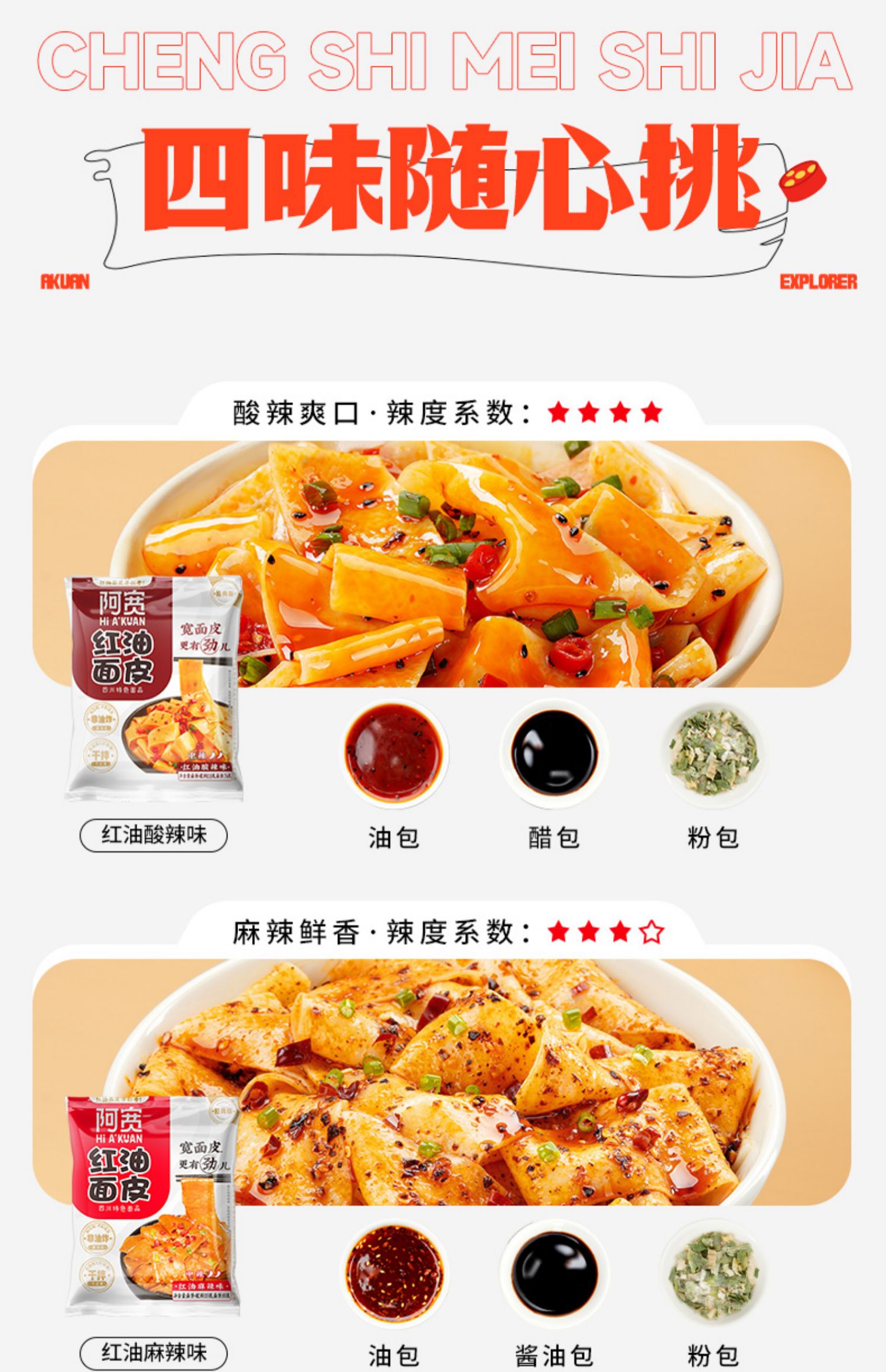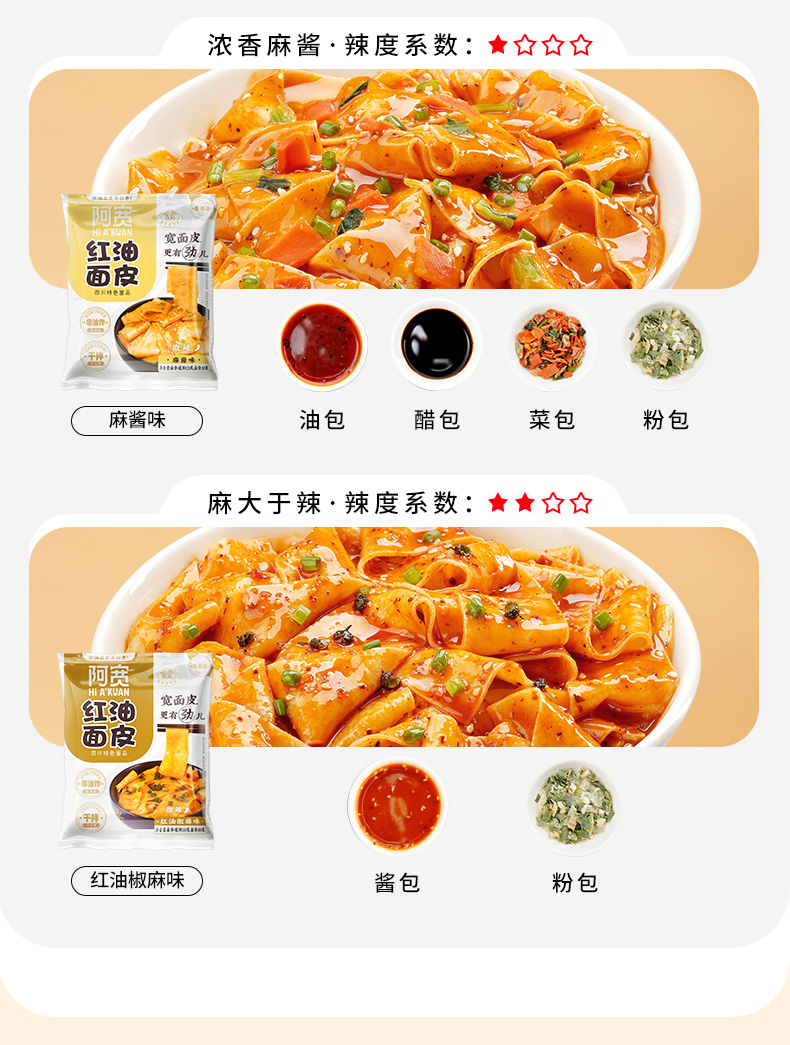 Akuan Red Oil Noodles 20 패키지 Sichuan Baijia 소스 매운 차가운 국수 튀겨지지 않은 즉석면스토어 가기
