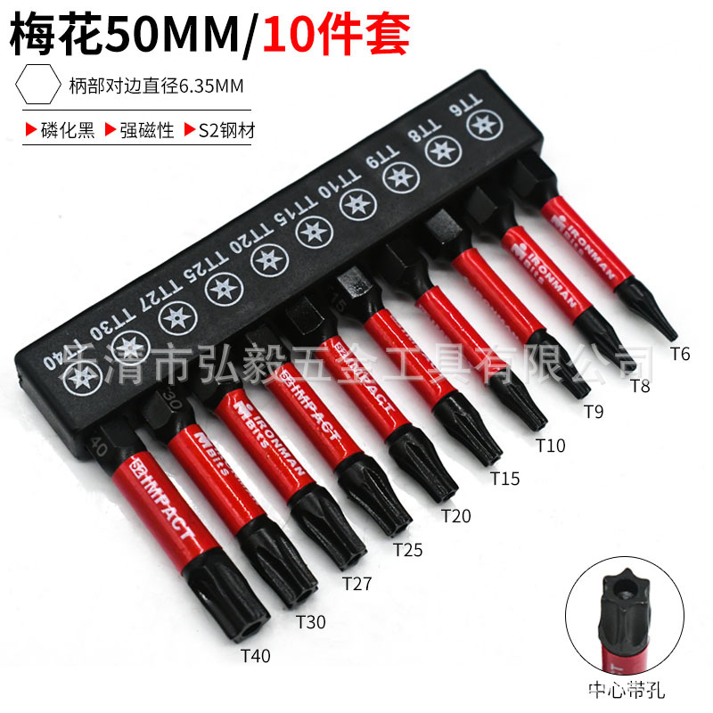 공압 확장 매화 스크류 드라이버 헤드 T6-T40 구멍 50/75/100mmT 마그네틱 드라이버 헤드 세트