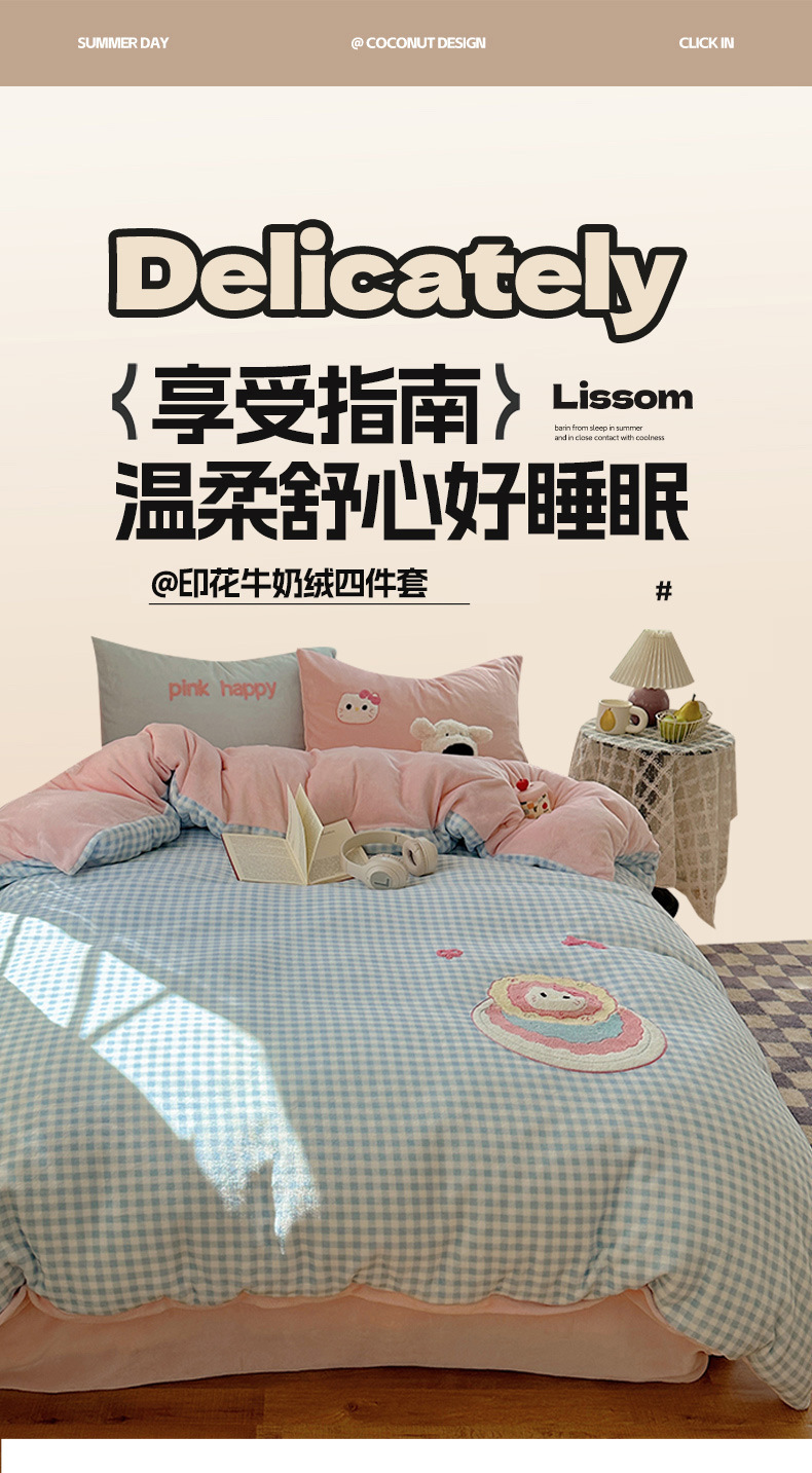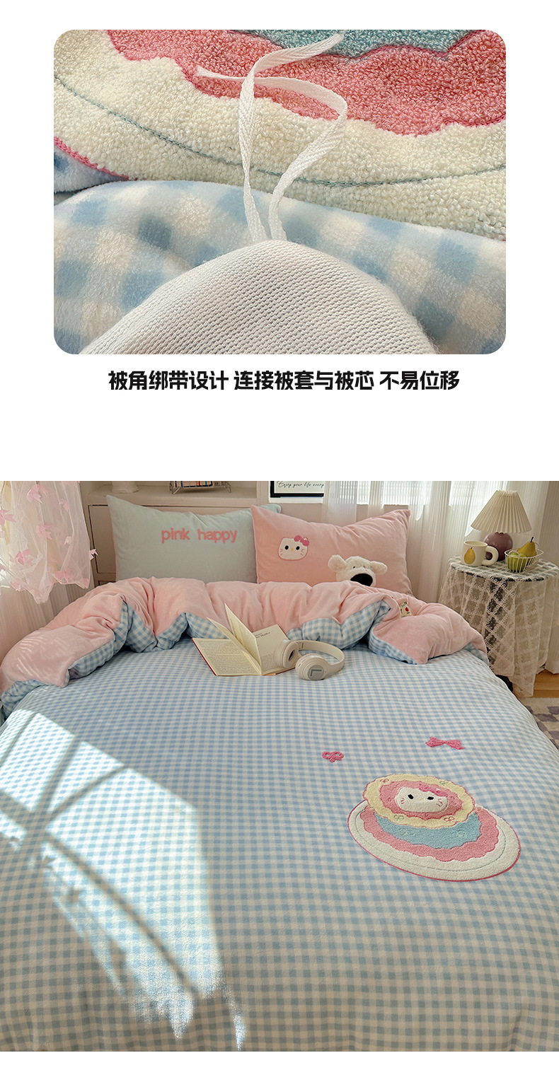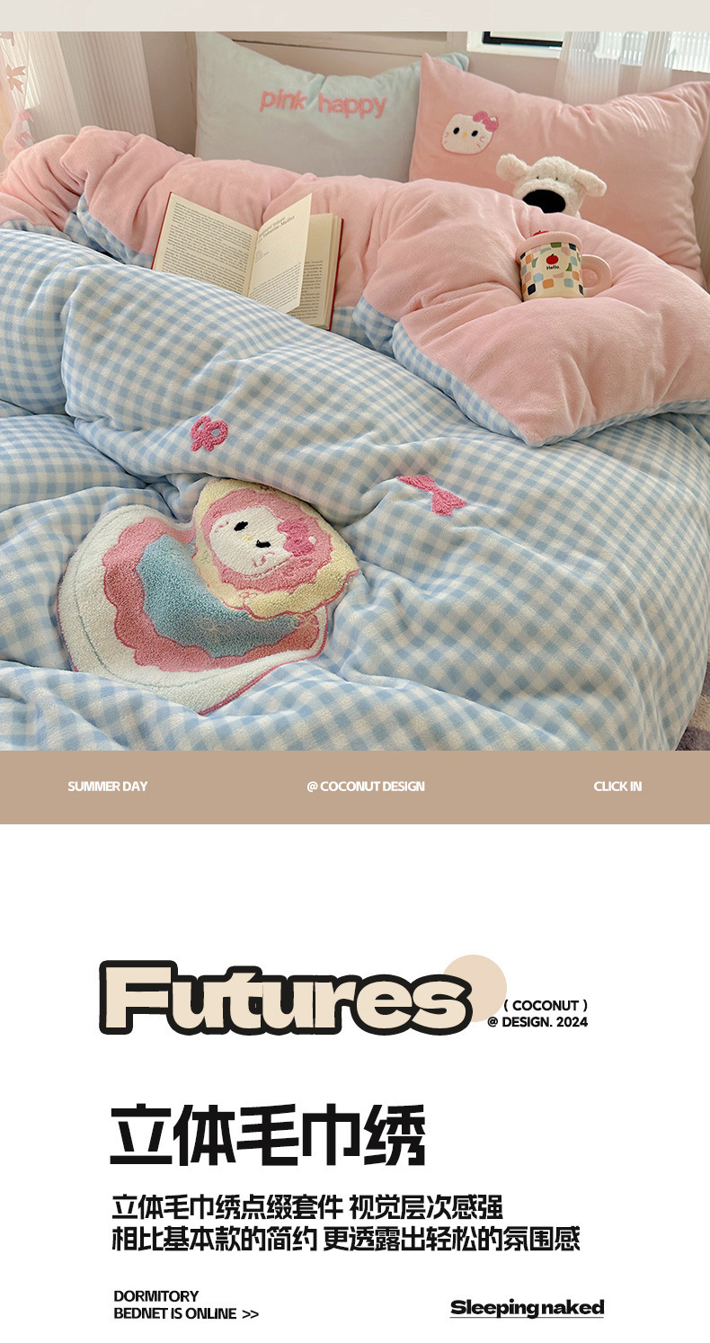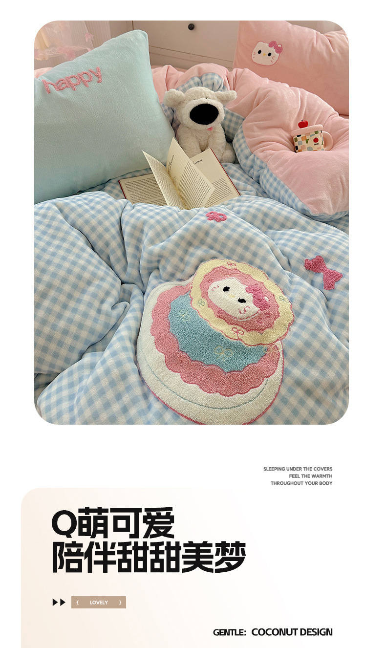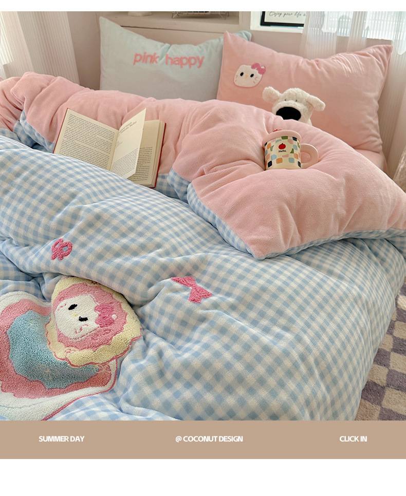 ✅클래스 밀크 벨벳 4 조각 세트 만화 수건 자수 퀼트 커버 플란넬 침대 시트 산호 벨벳 학생 기숙사 3 조각