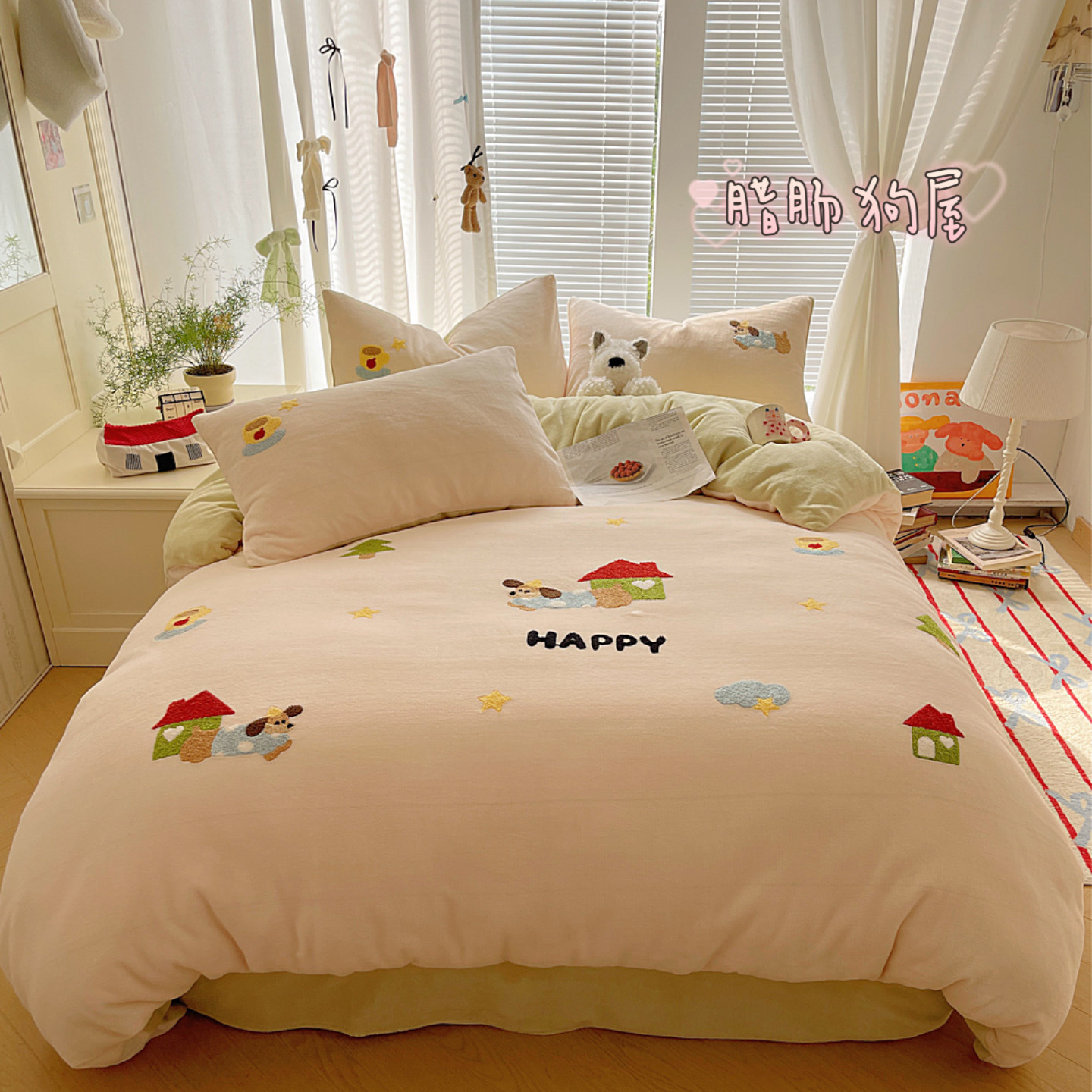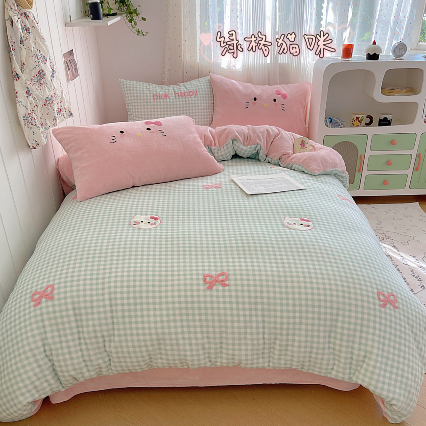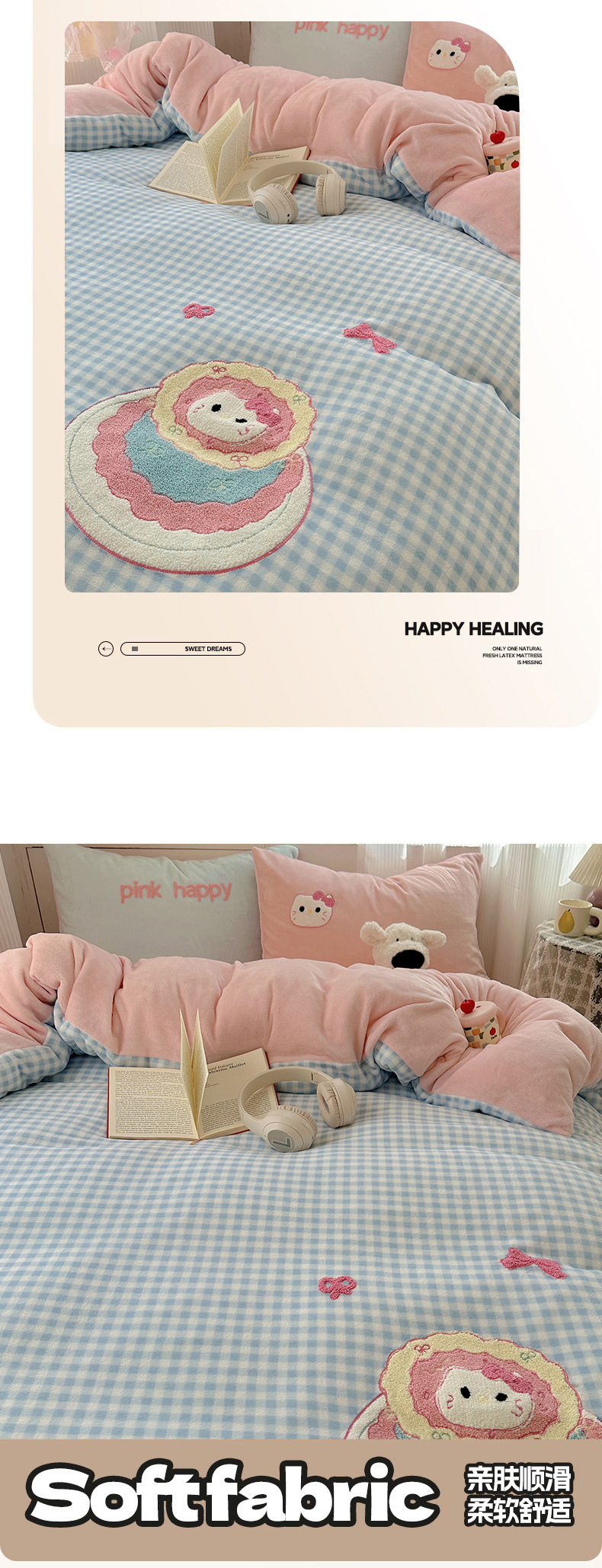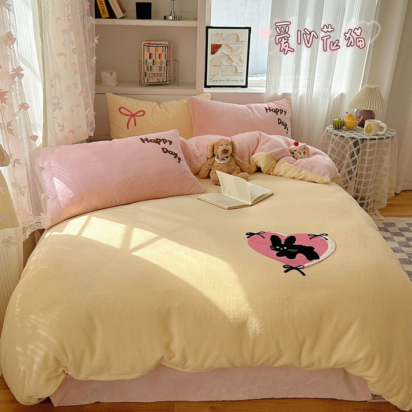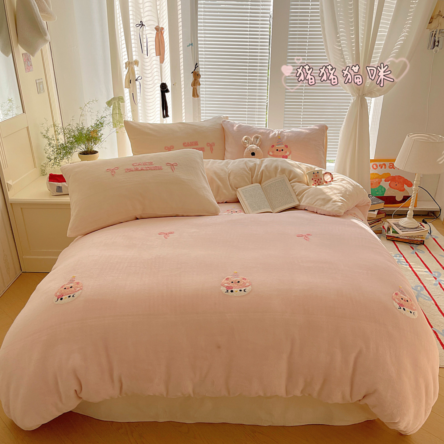 ✅클래스 밀크 벨벳 4 조각 세트 만화 수건 자수 퀼트 커버 플란넬 침대 시트 산호 벨벳 학생 기숙사 3 조각