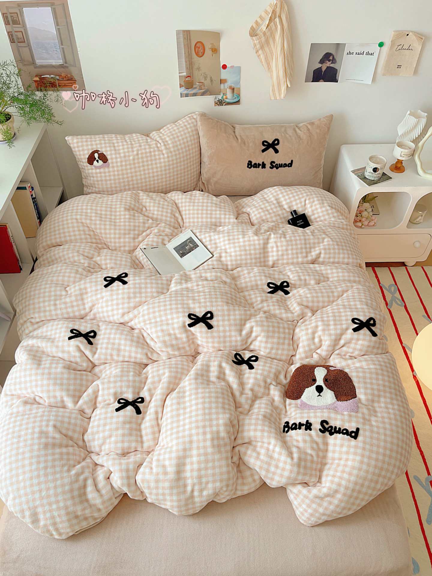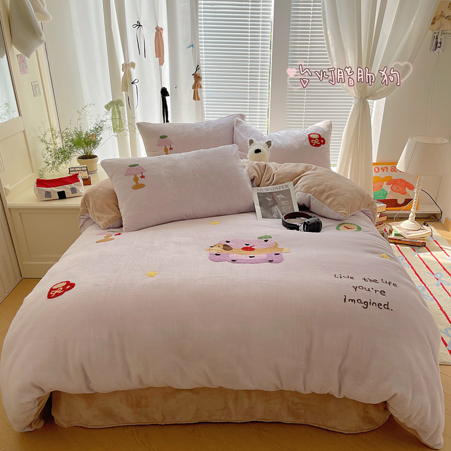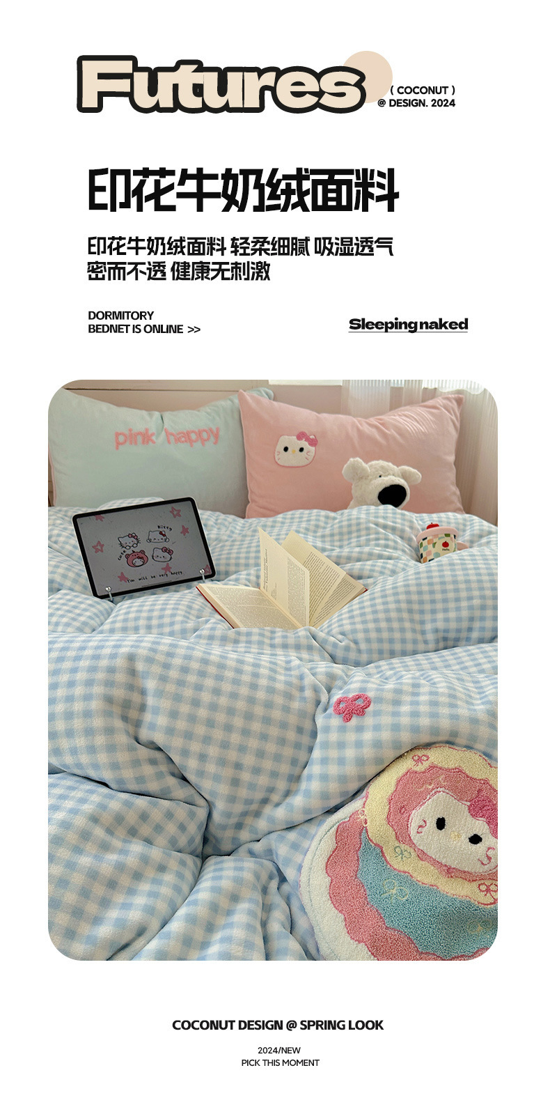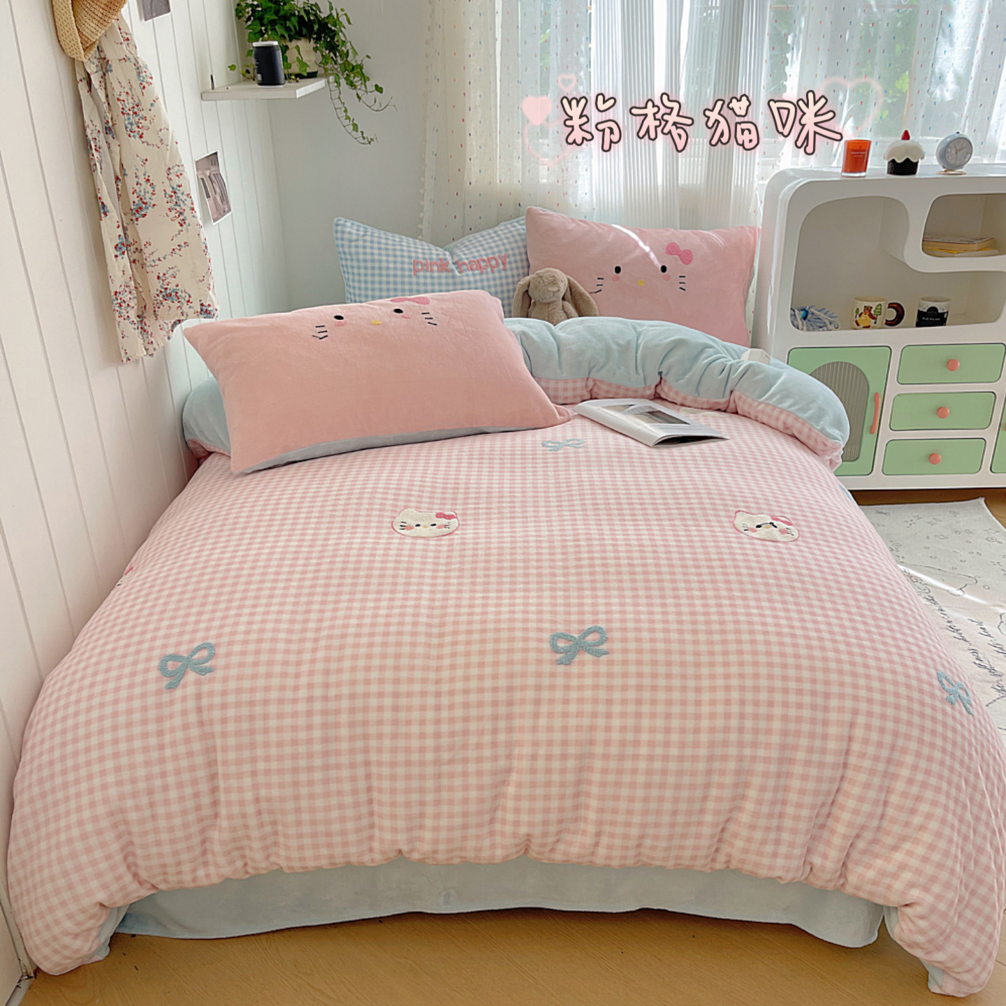 ✅클래스 밀크 벨벳 4 조각 세트 만화 수건 자수 퀼트 커버 플란넬 침대 시트 산호 벨벳 학생 기숙사 3 조각