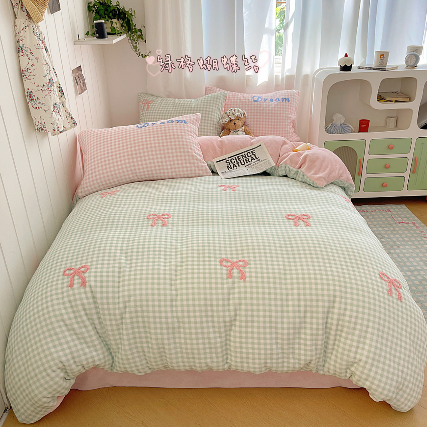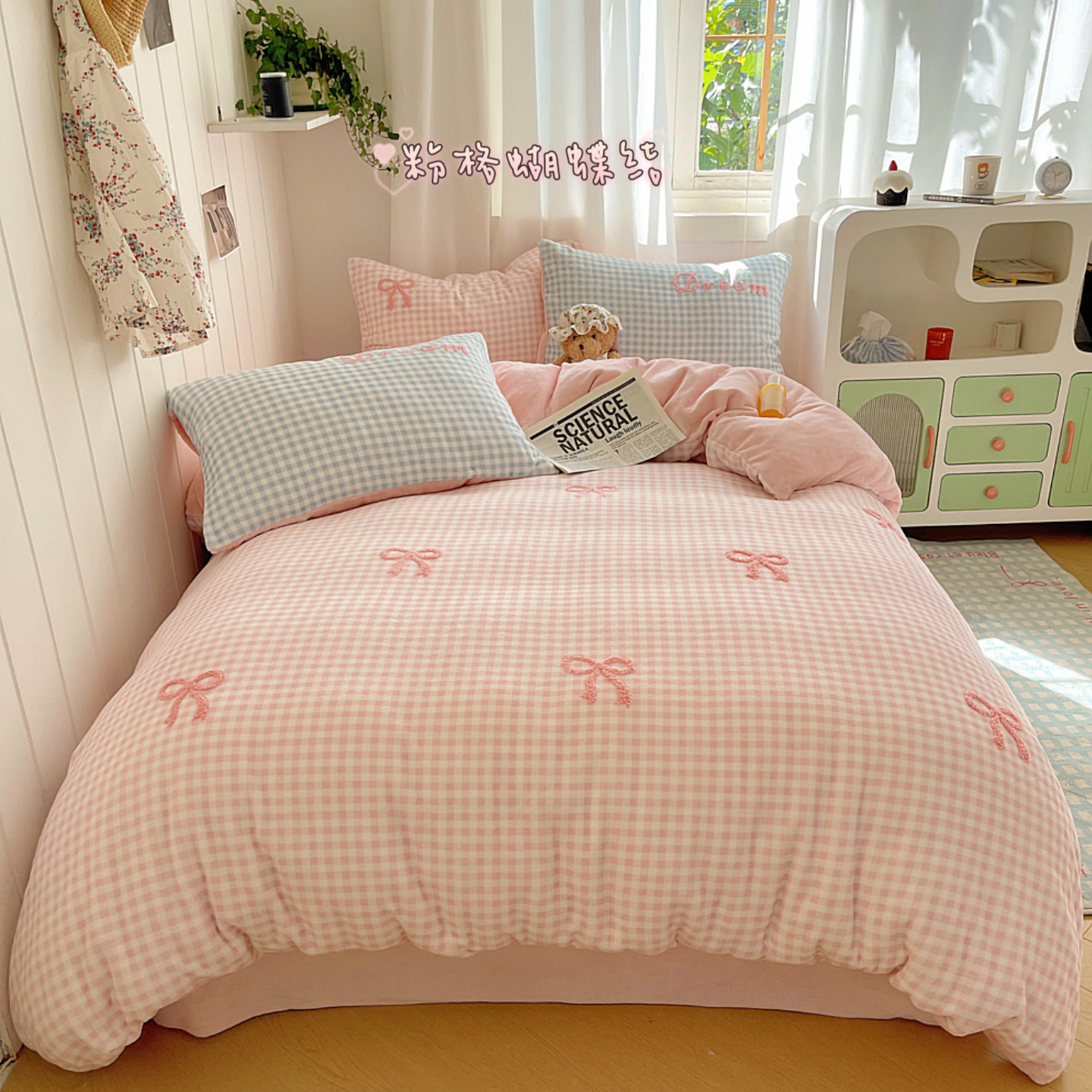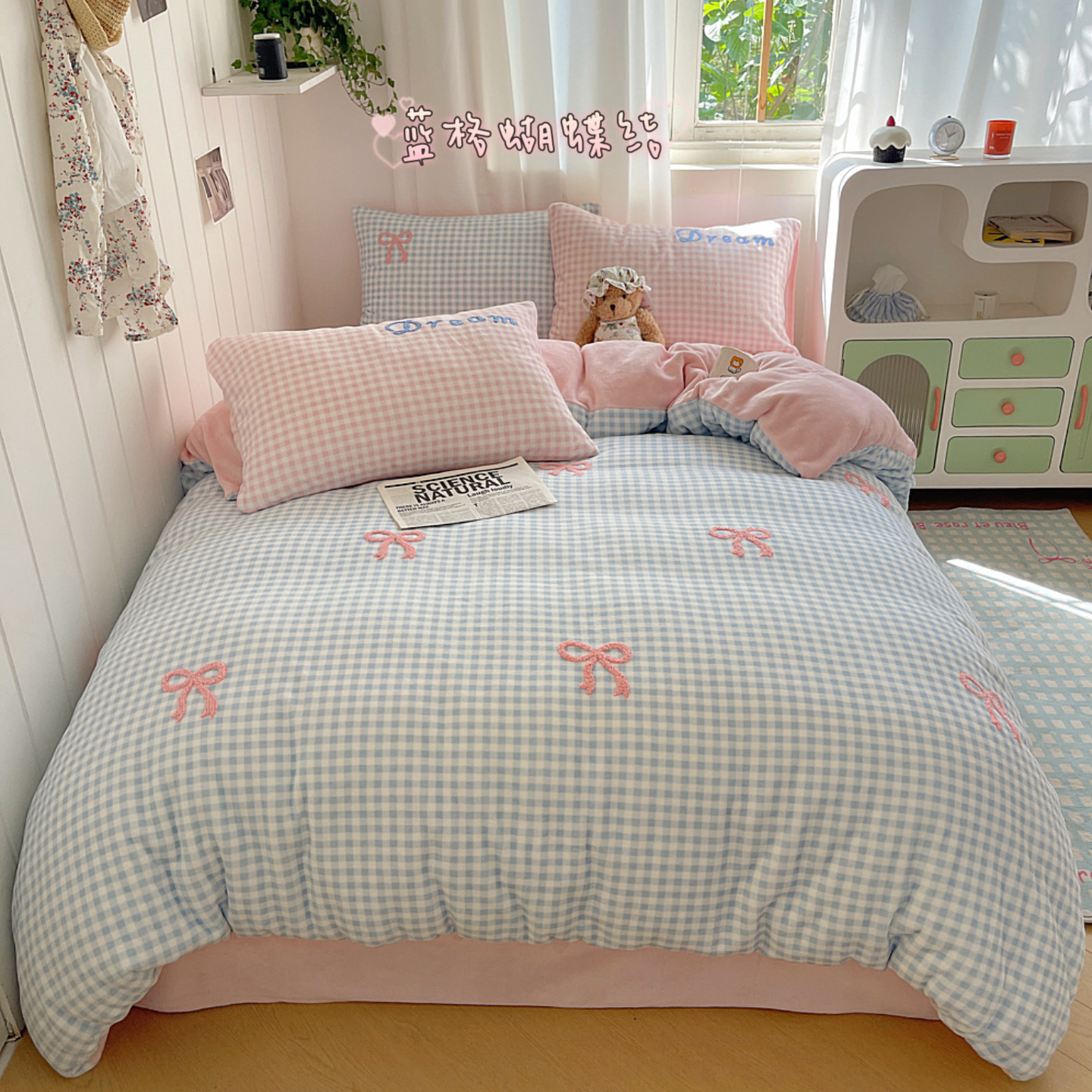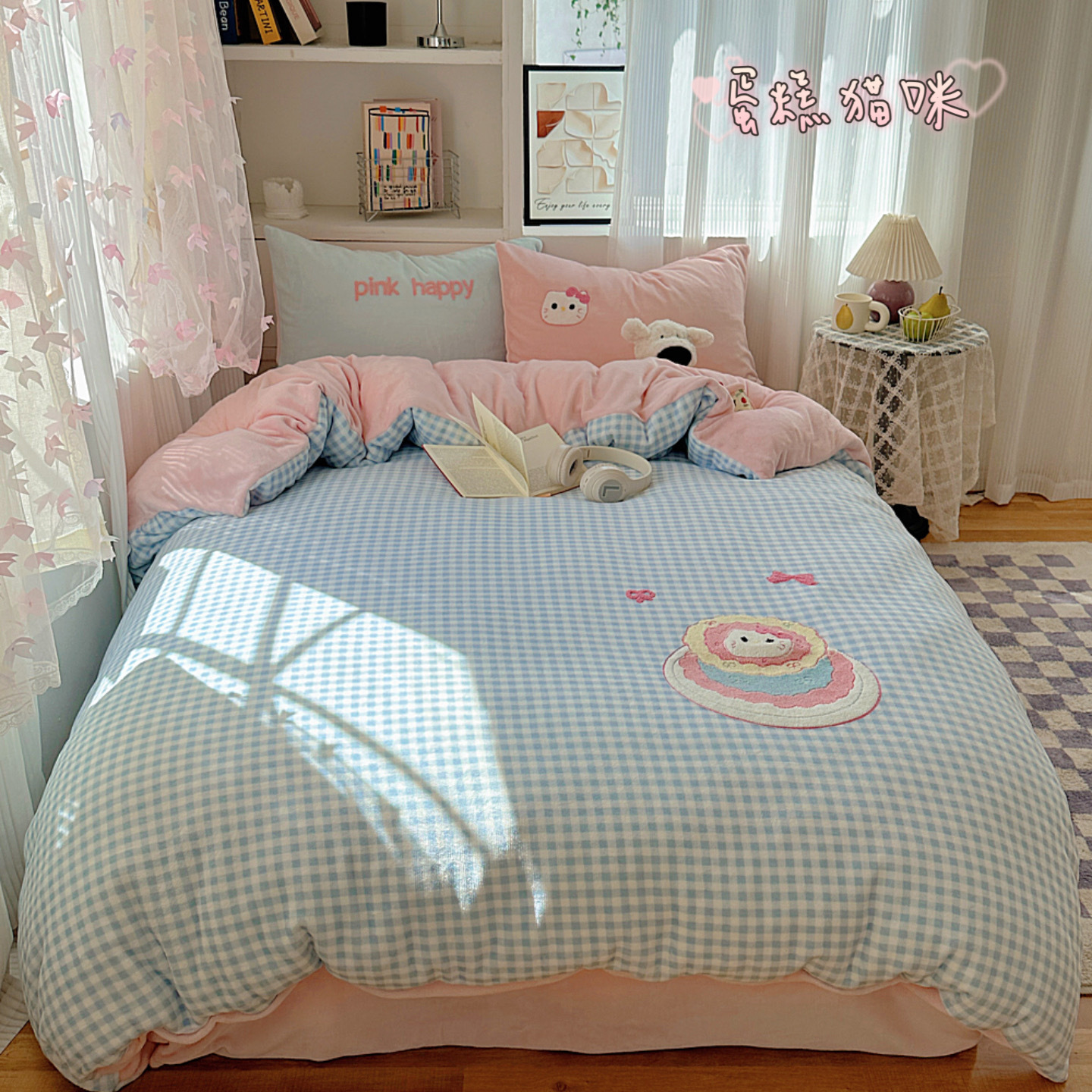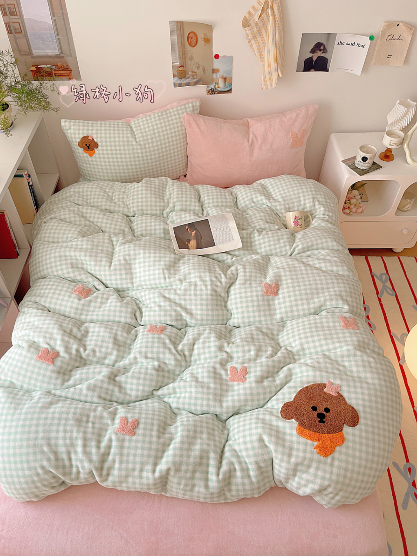 ✅클래스 밀크 벨벳 4 조각 세트 만화 수건 자수 퀼트 커버 플란넬 침대 시트 산호 벨벳 학생 기숙사 3 조각
