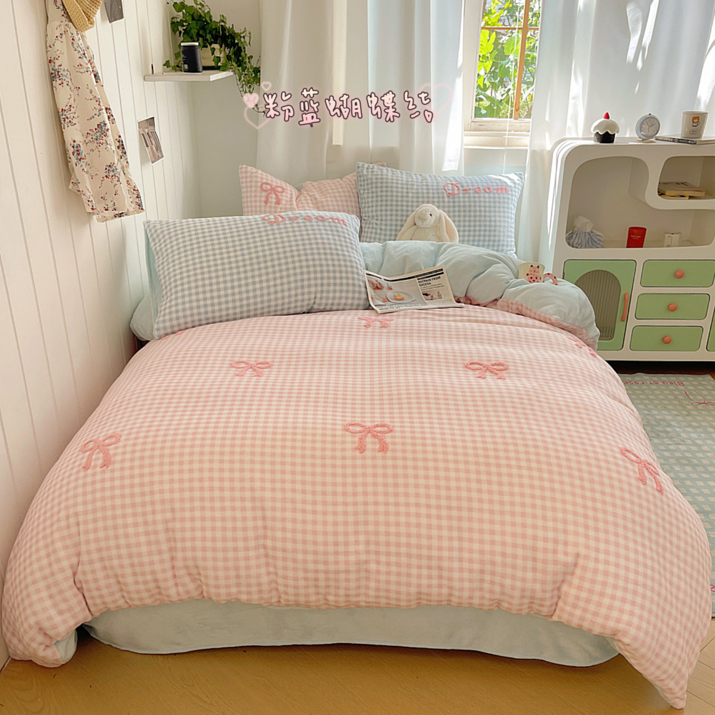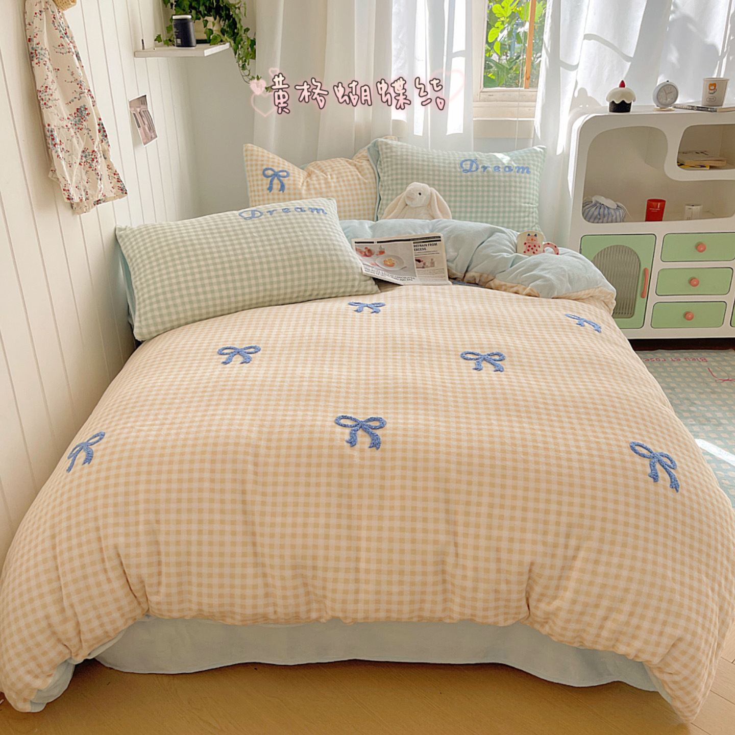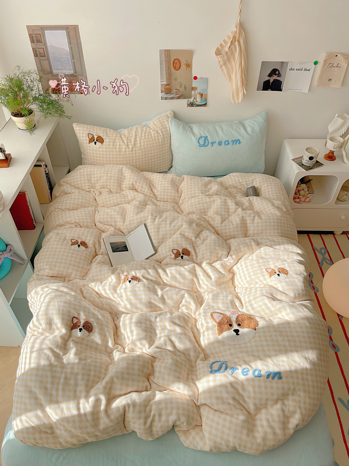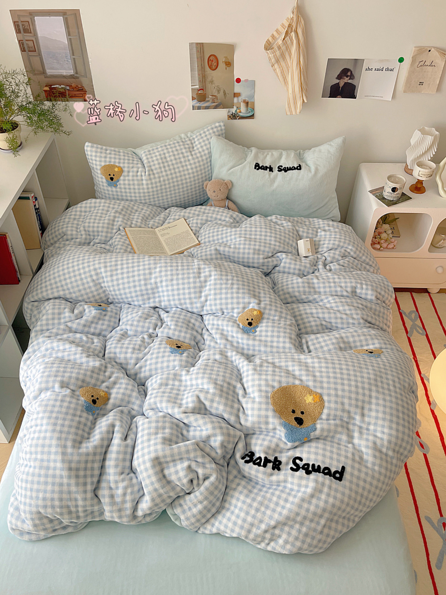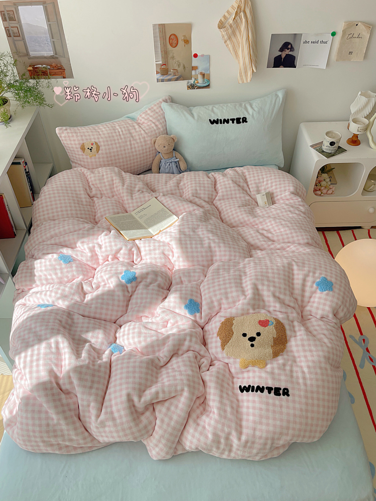 ✅클래스 밀크 벨벳 4 조각 세트 만화 수건 자수 퀼트 커버 플란넬 침대 시트 산호 벨벳 학생 기숙사 3 조각스토어 가기