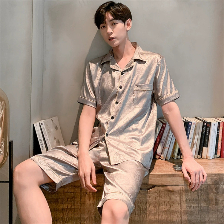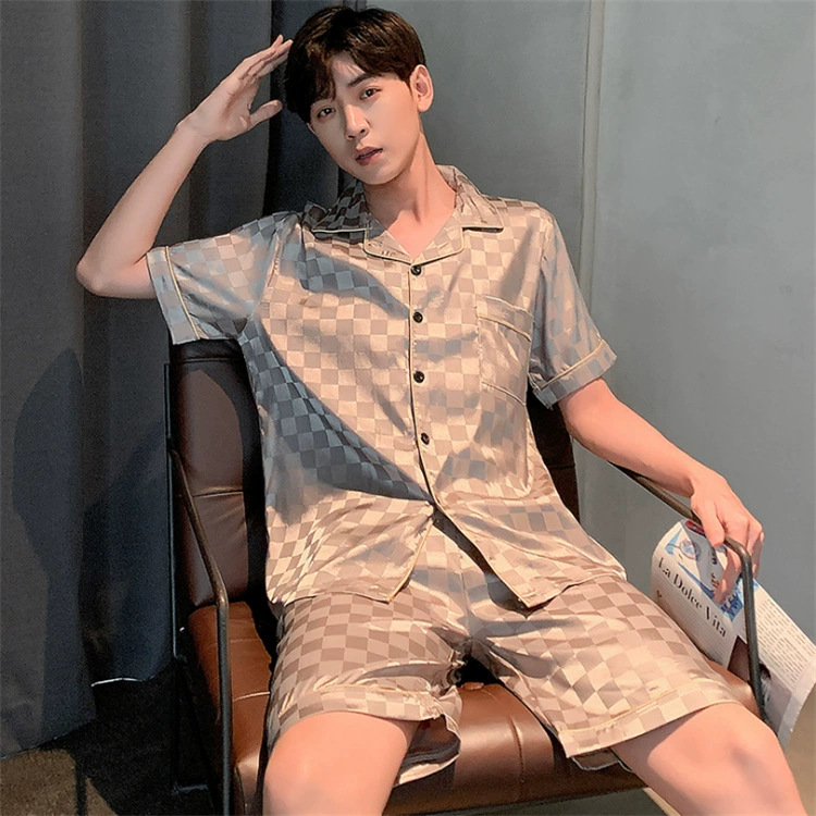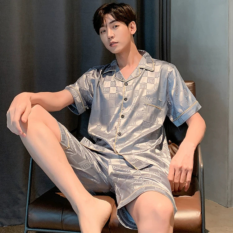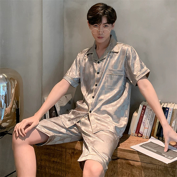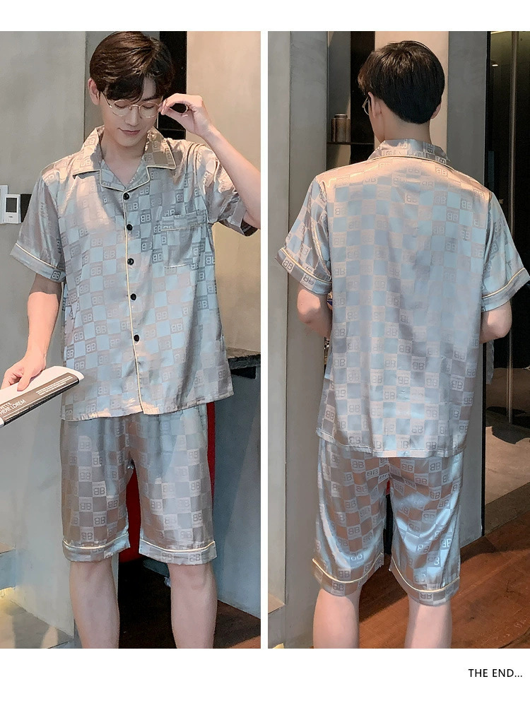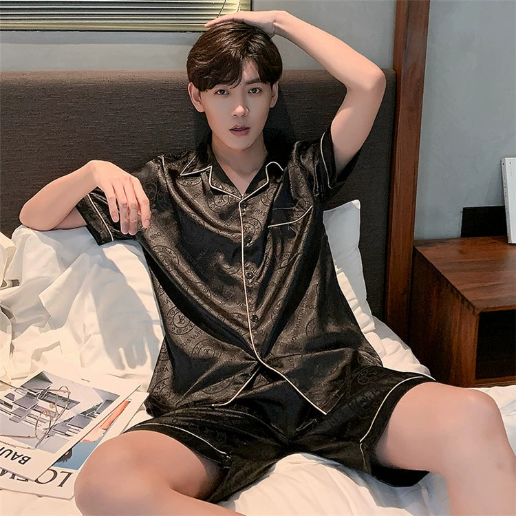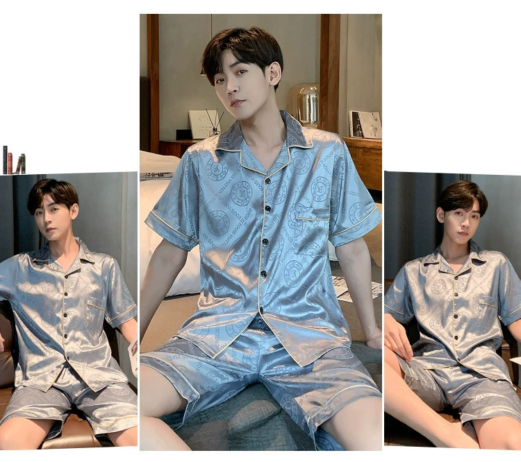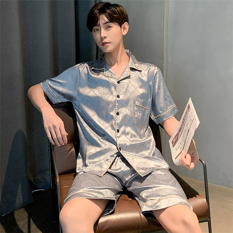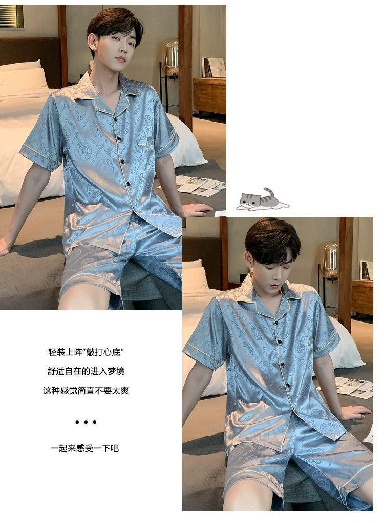 잠옷 남자 여름 반소매 아이스 실크 얇은 2025 새로운 청소년 남성 실크 여름 홈 의류 세트스토어 가기