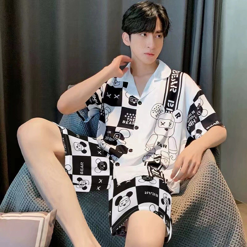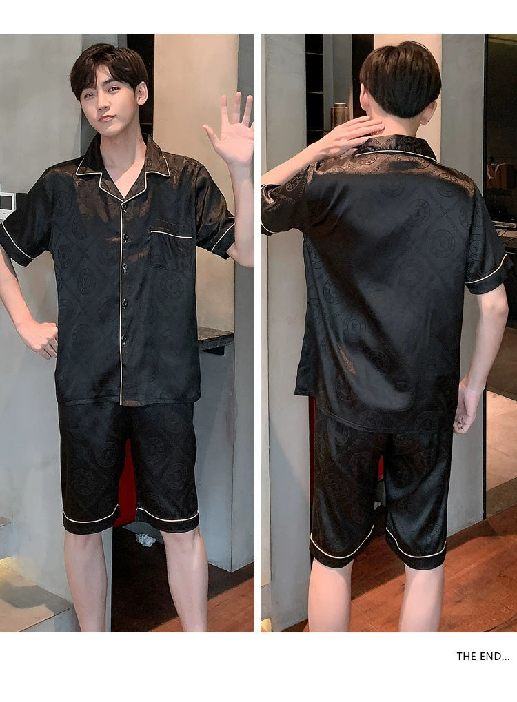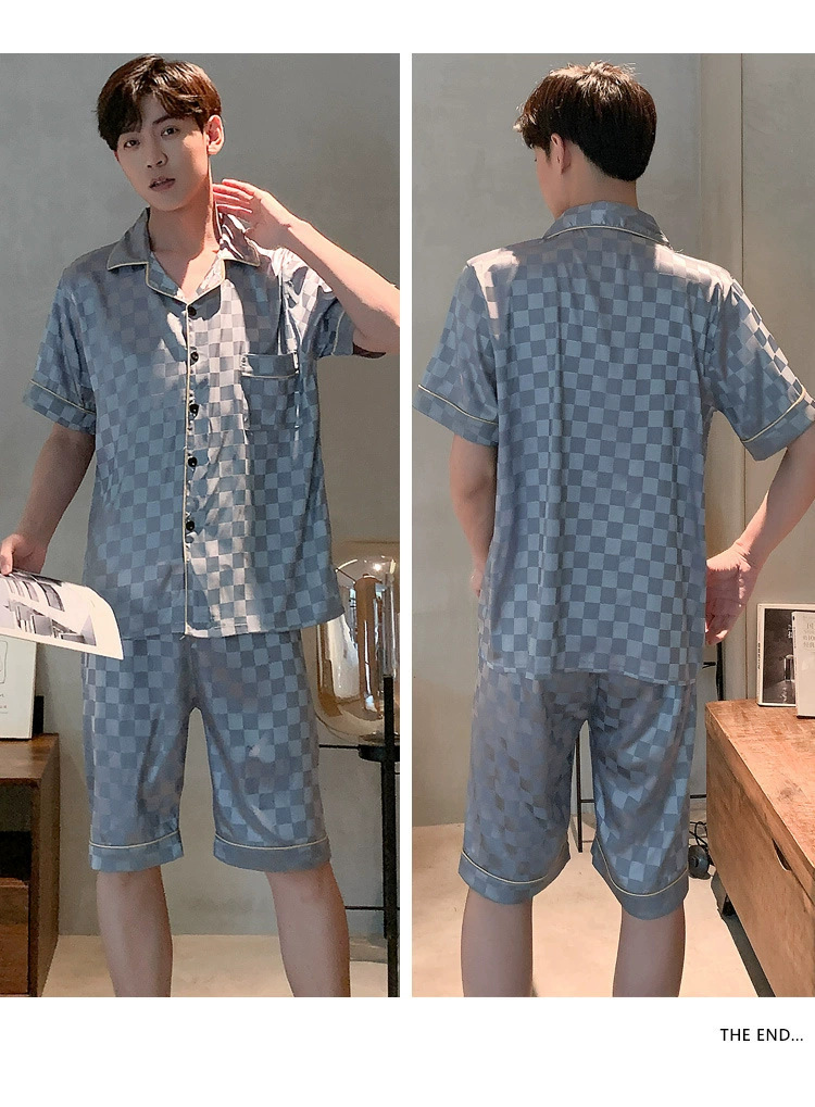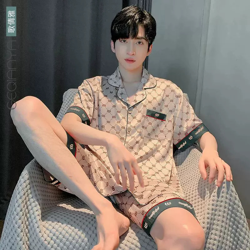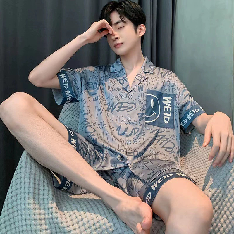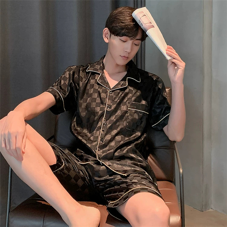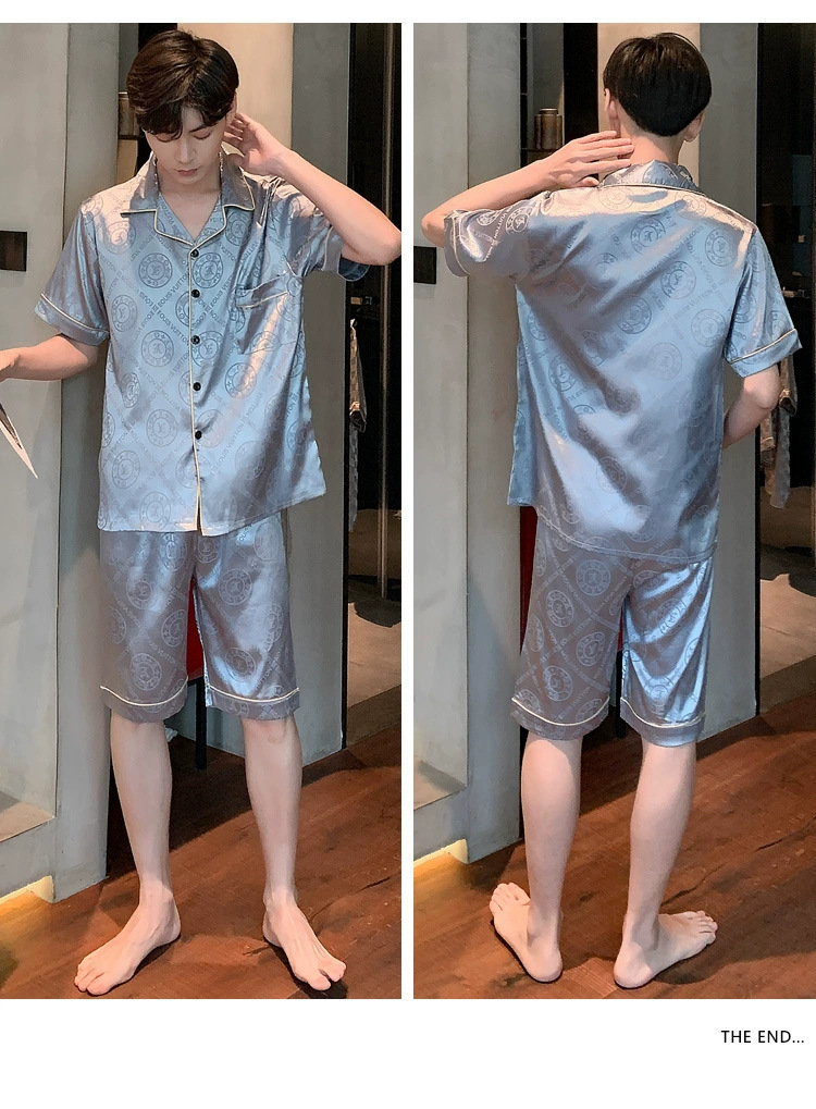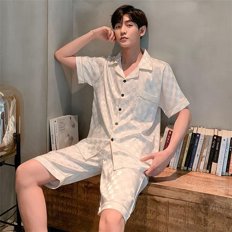 잠옷 남자 여름 반소매 아이스 실크 얇은 2025 새로운 청소년 남성 실크 여름 홈 의류 세트스토어 가기