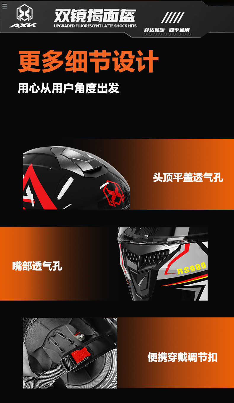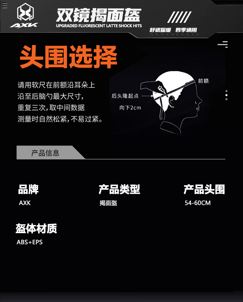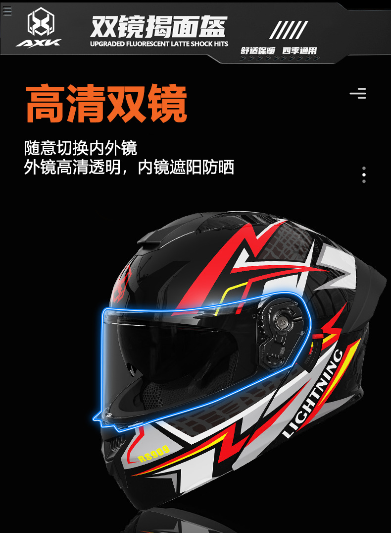 3.镜片:双镜片,PC外镜透明,内镜防晒。