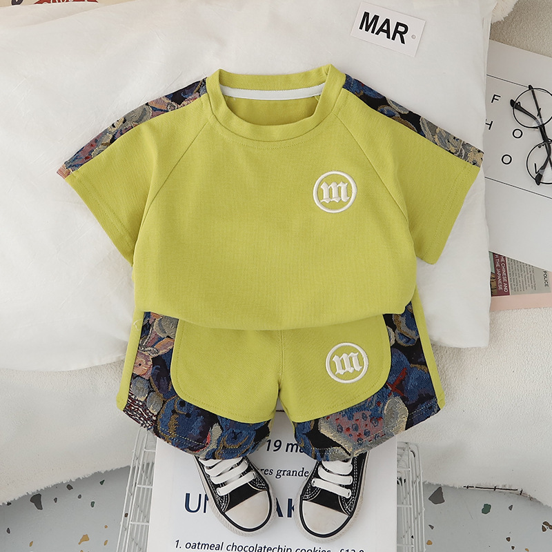 소년 아기 여름 세트 2025 새 소년 여름 옷 둥근 편지 반팔 투피스 세트 아기 어린이 옷 유행