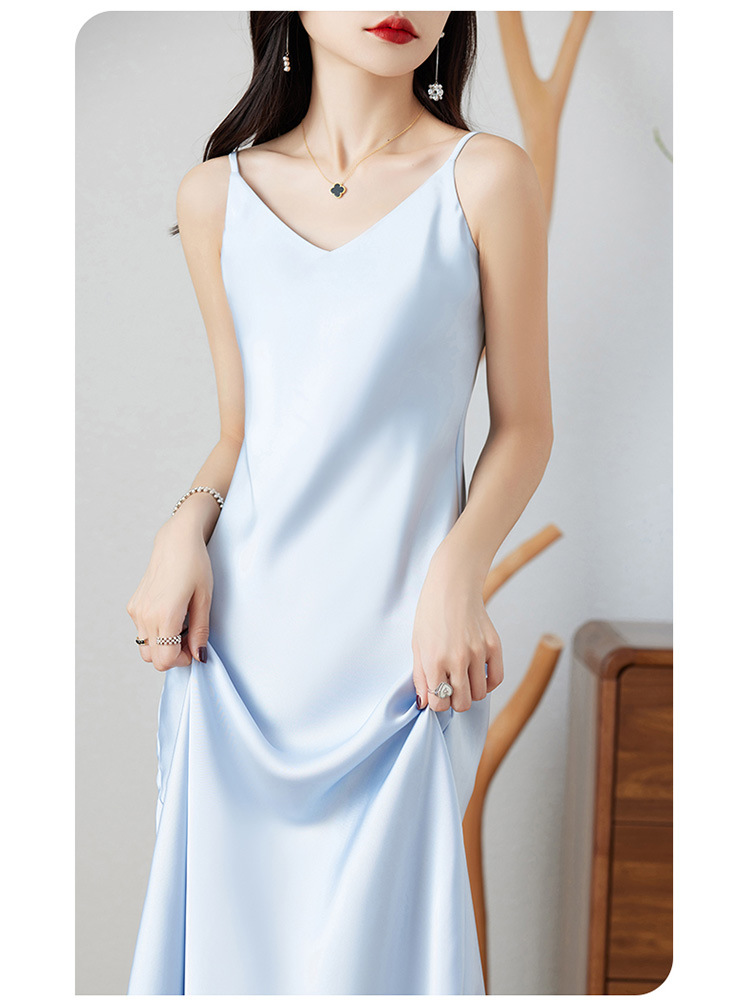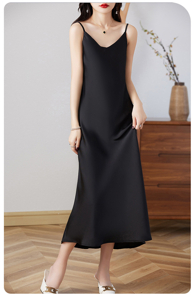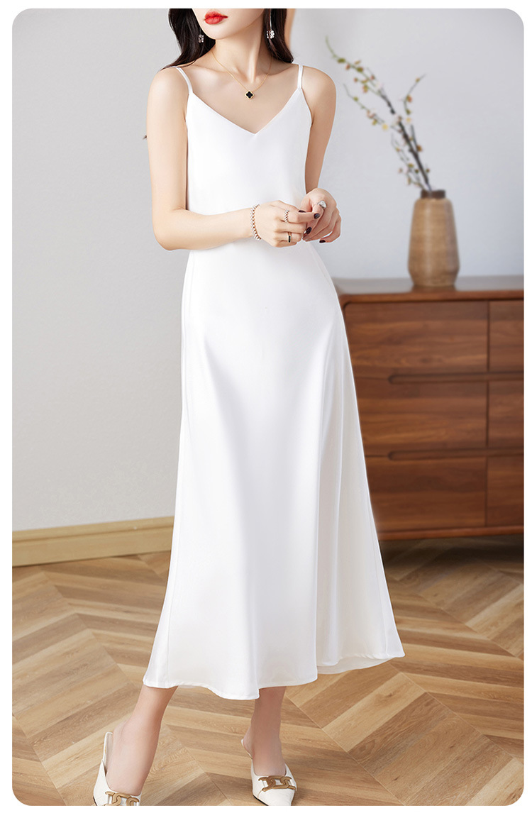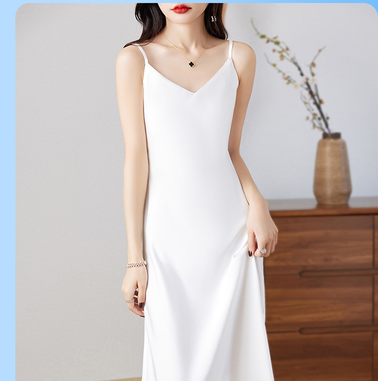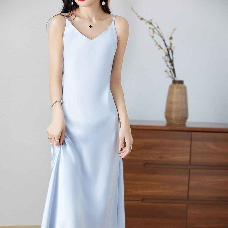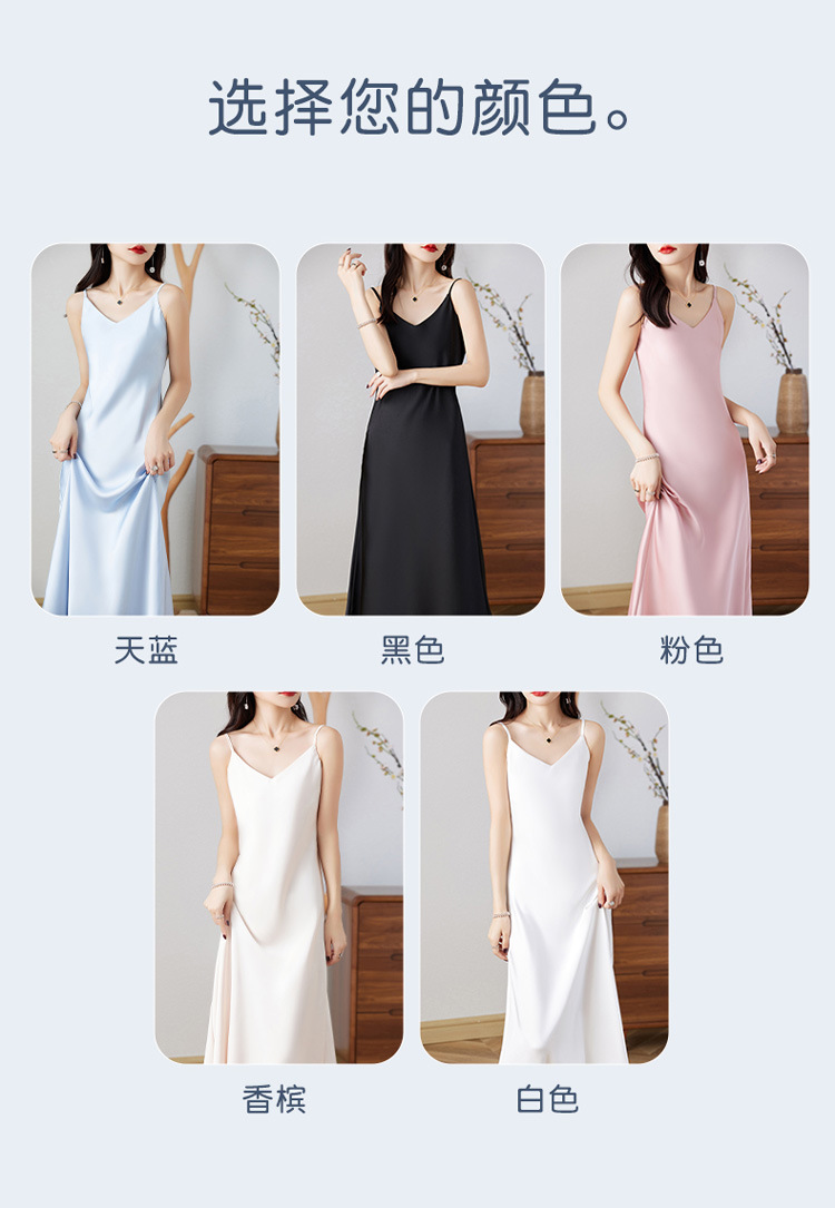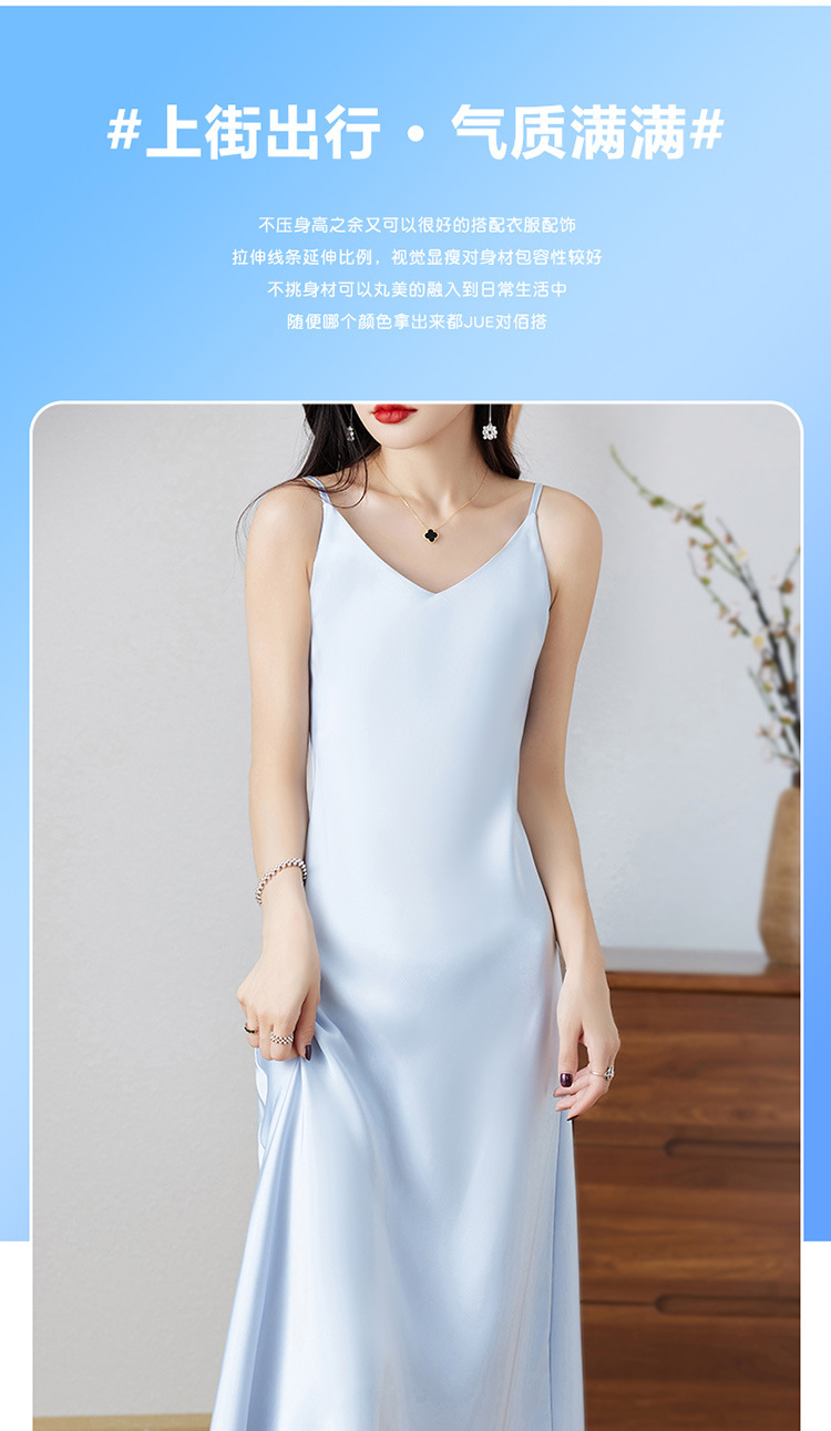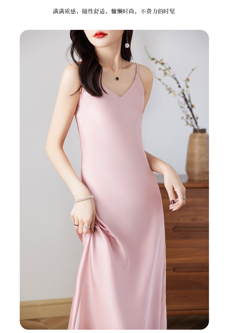 25 새로운 우아한 Acetic Acid Sling Skirt V-Neck Satin 원피스 원피스 긴 스커트 슬림 한 광택 포장