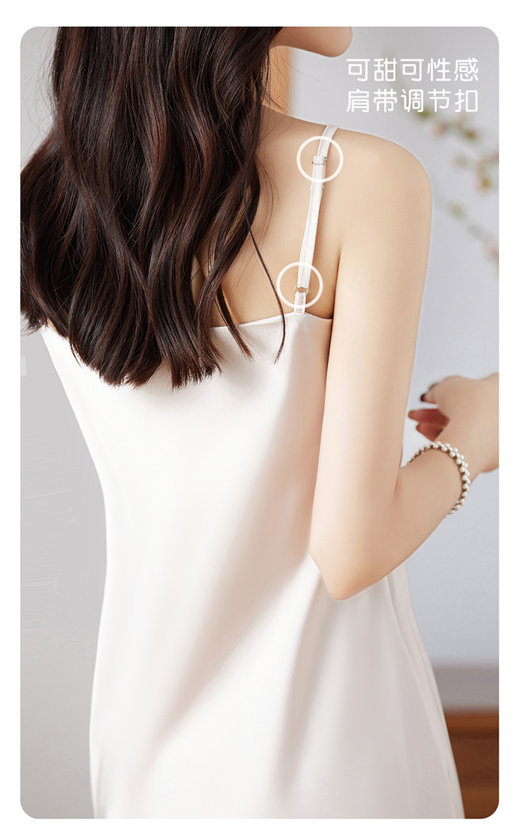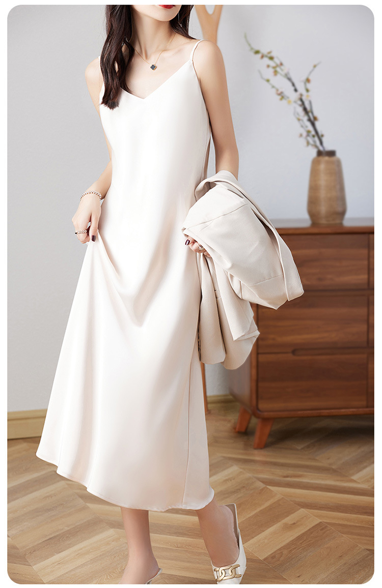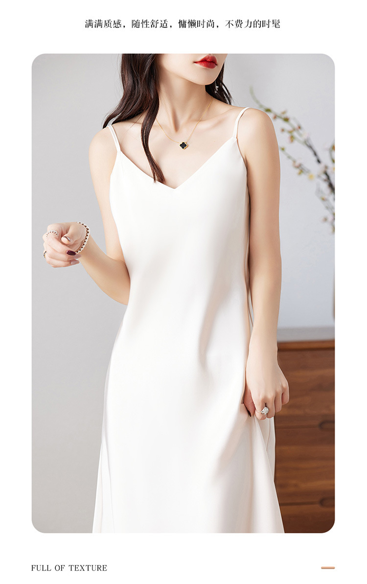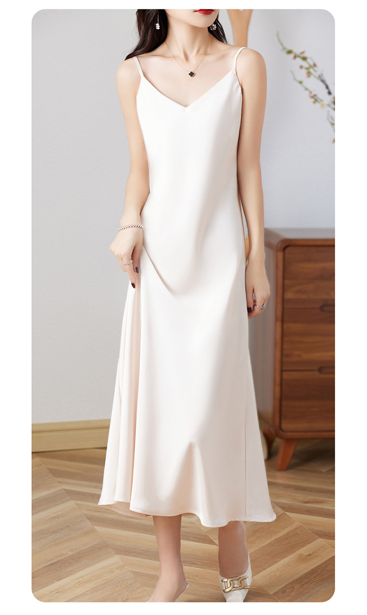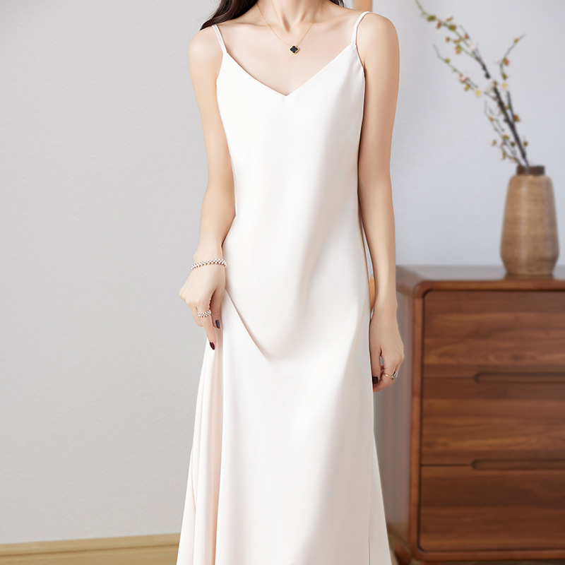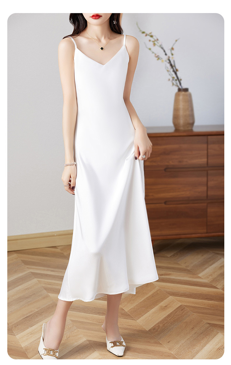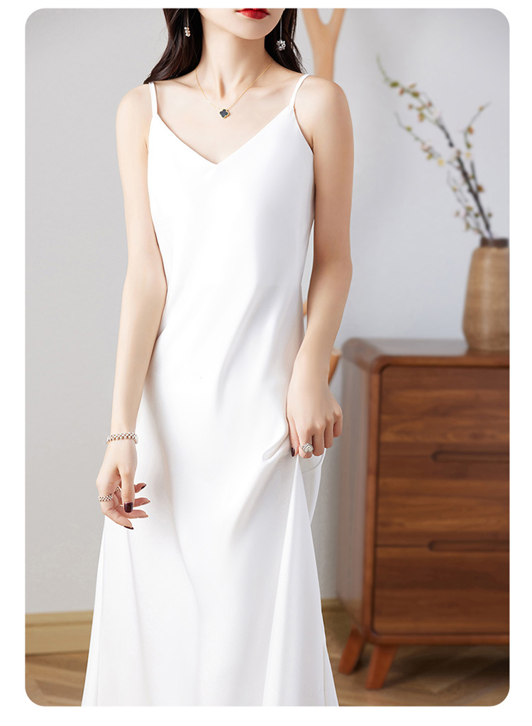25 새로운 우아한 Acetic Acid Sling Skirt V-Neck Satin 원피스 원피스 긴 스커트 슬림 한 광택 포장