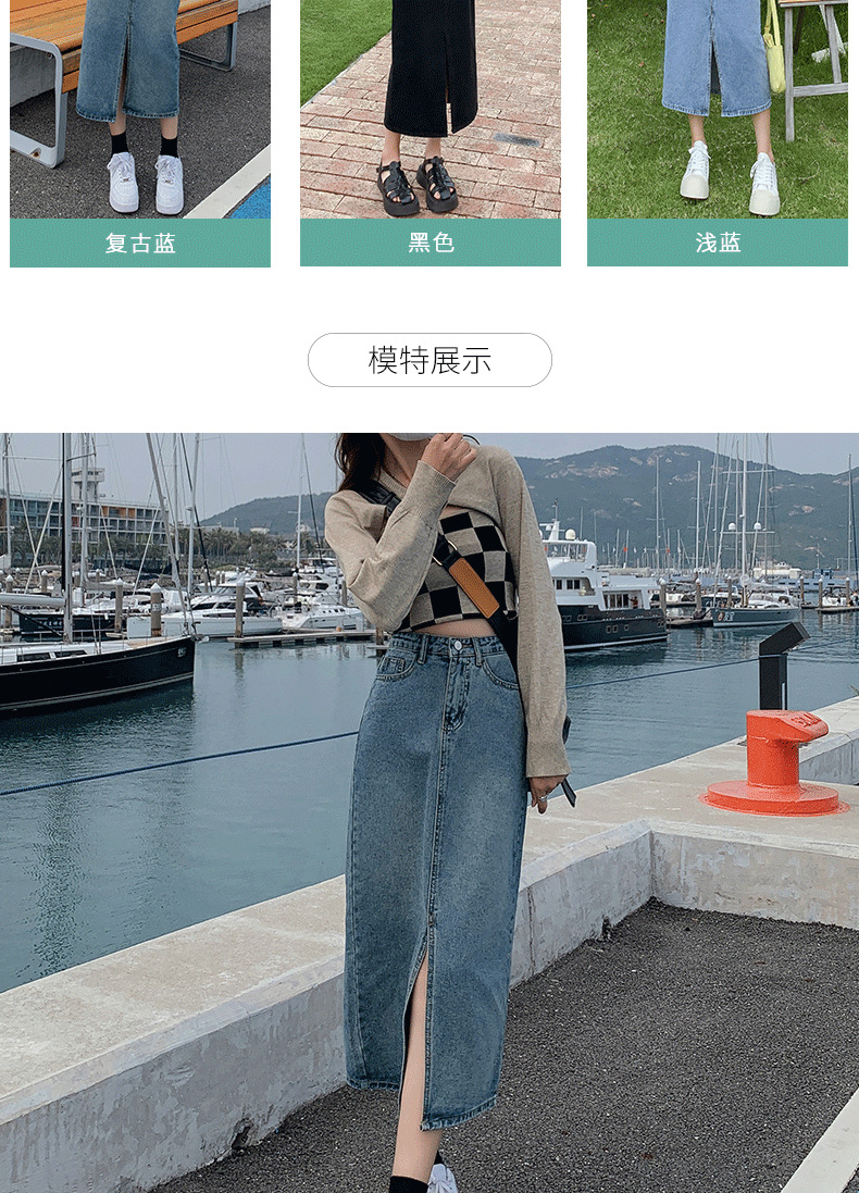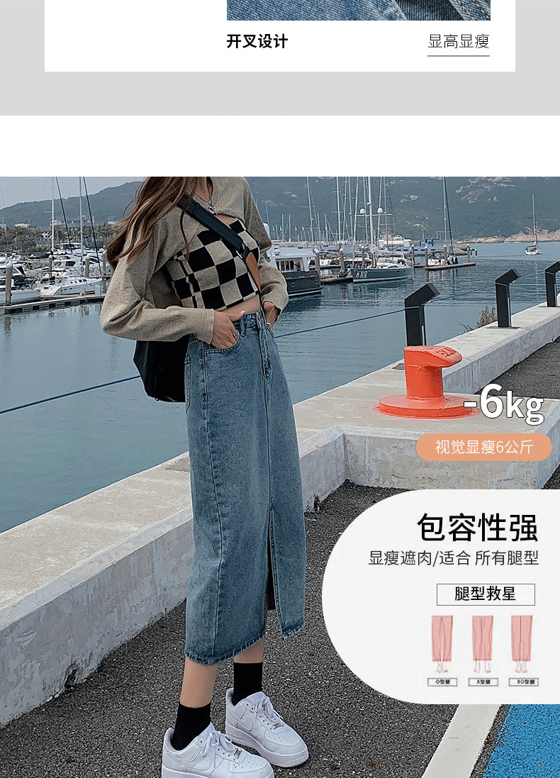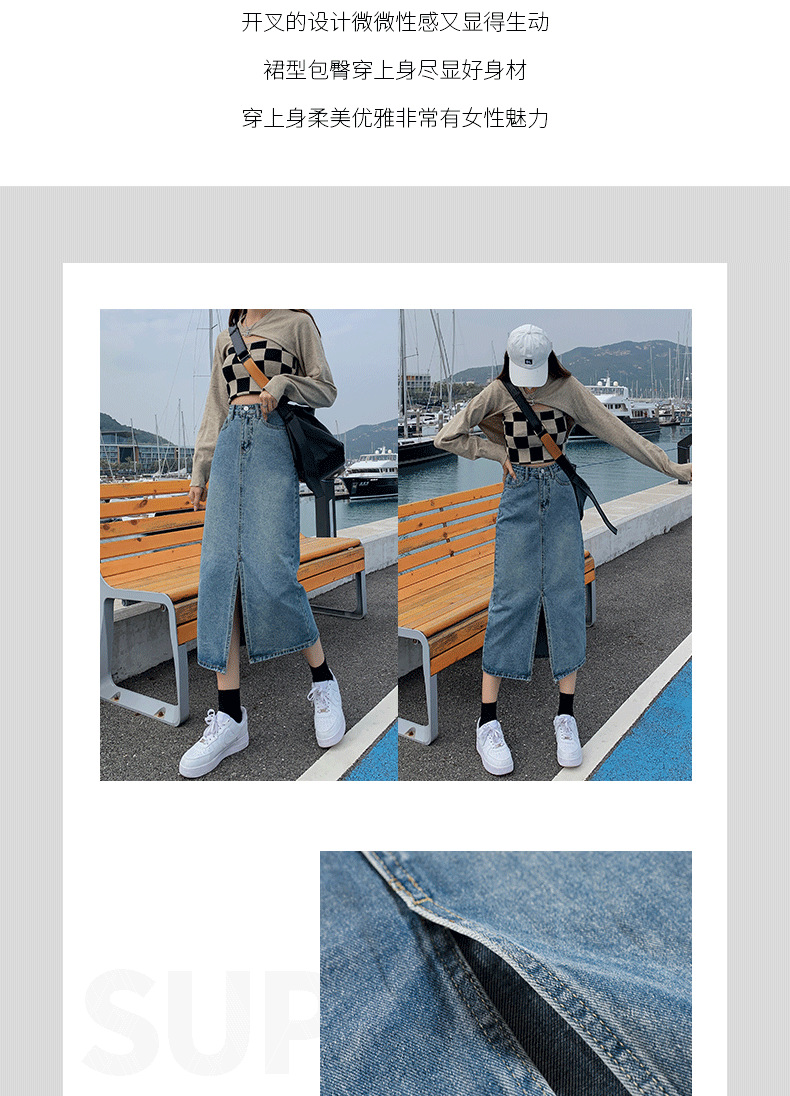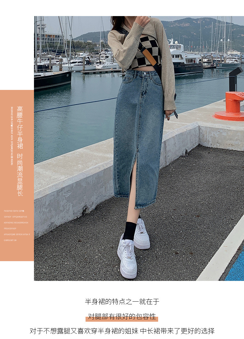 스플릿 스커트 여성 여름 여성복 2025 새로운 디자인 높은 허리 A-라인 중장 엉덩이 데님 스커트스토어 가기