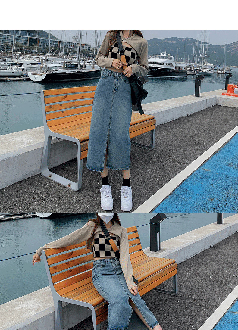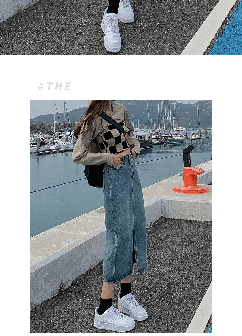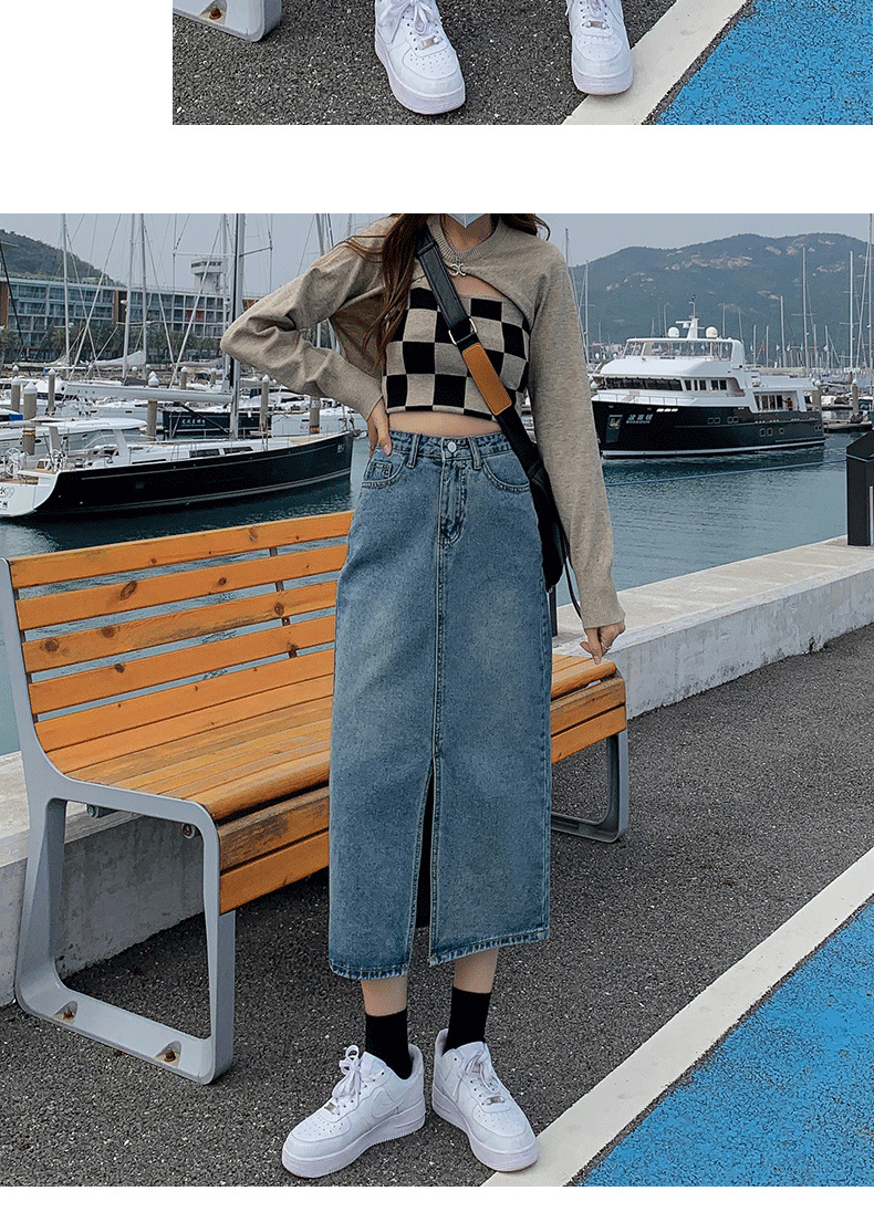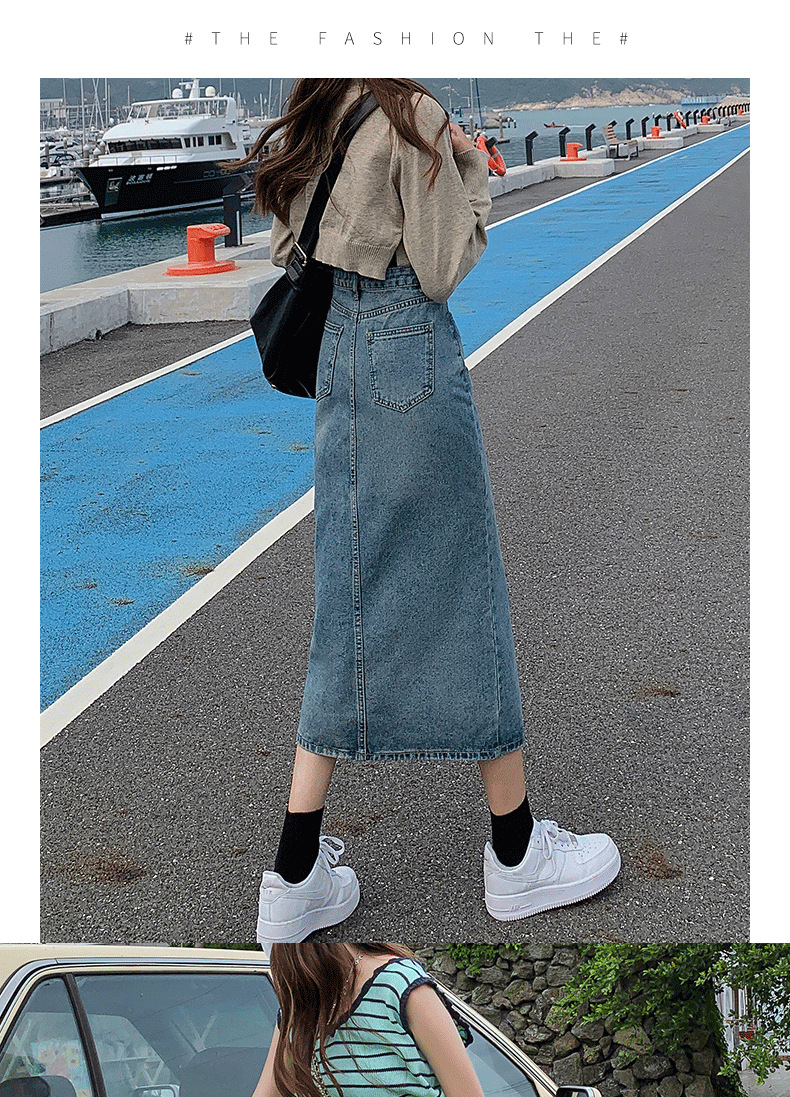 스플릿 스커트 여성 여름 여성복 2025 새로운 디자인 높은 허리 A-라인 중장 엉덩이 데님 스커트스토어 가기