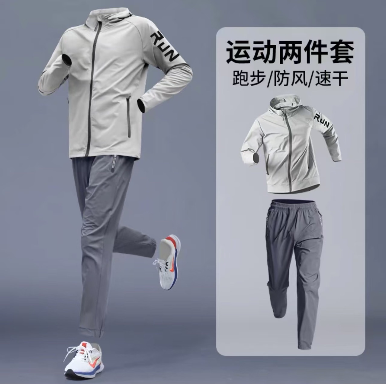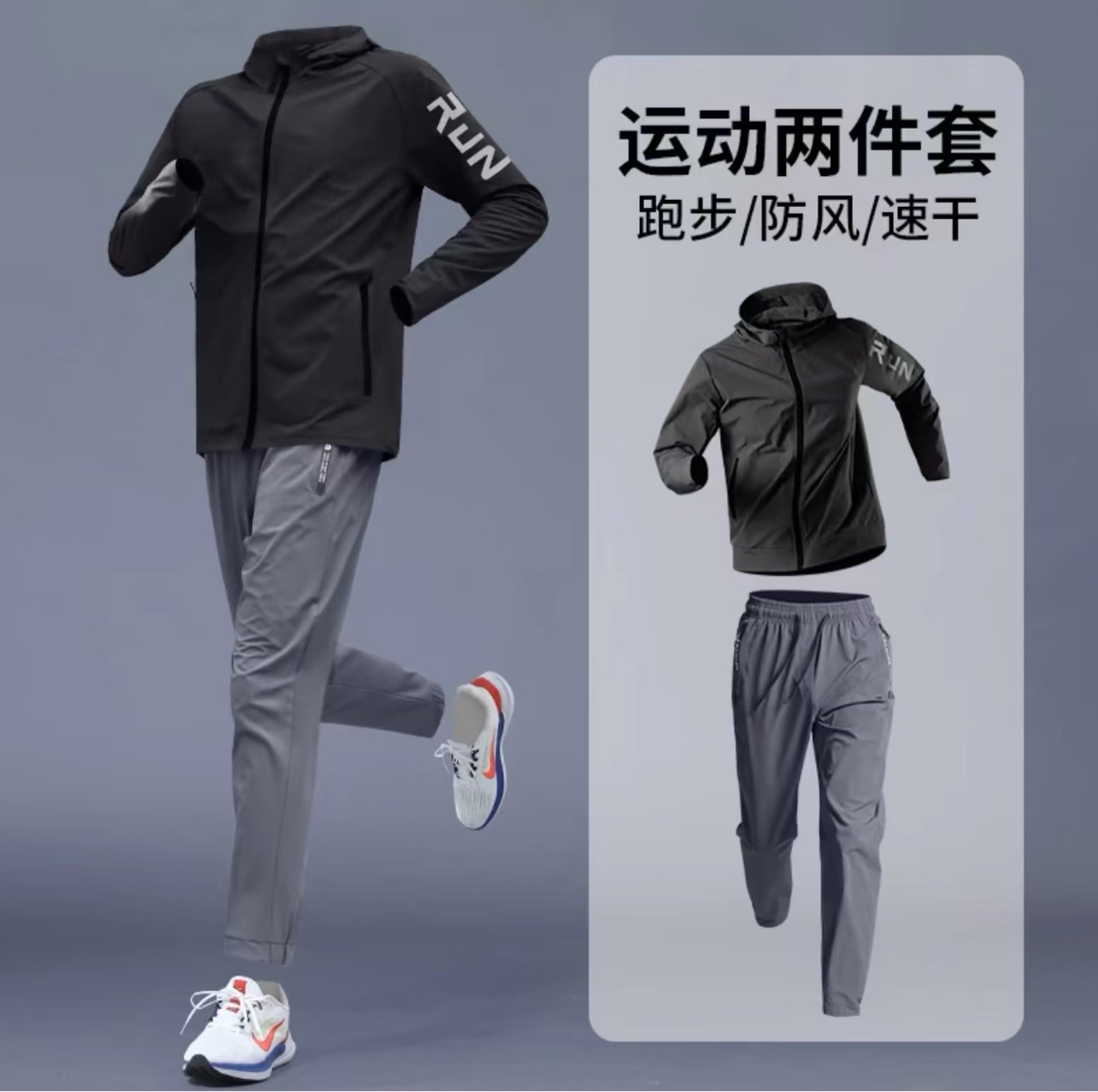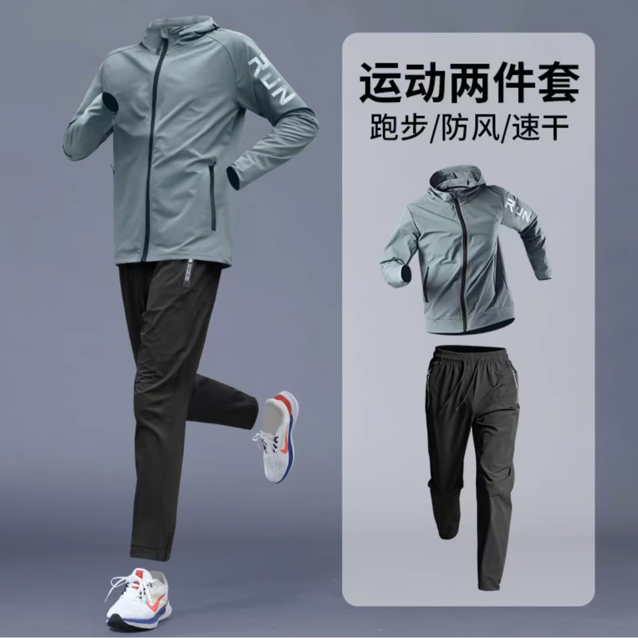 운동복 세트 남자의 봄 빠른 건조 옷 달리기 재킷 피트니스 캐주얼 승마 옷 야외 아침 달리기 훈련 바지
