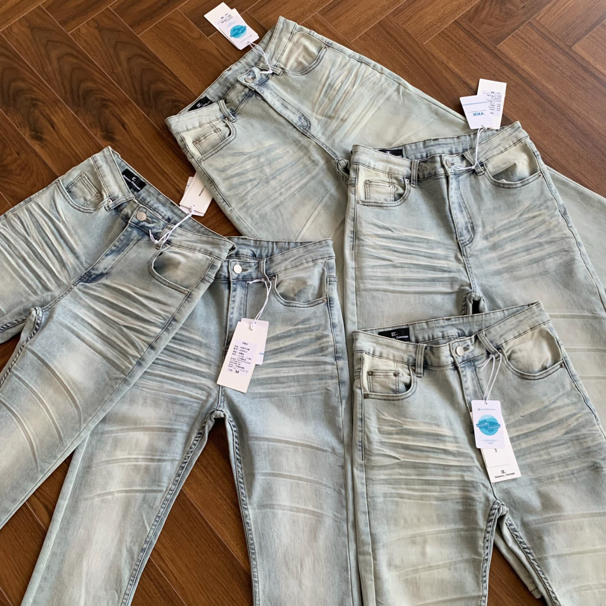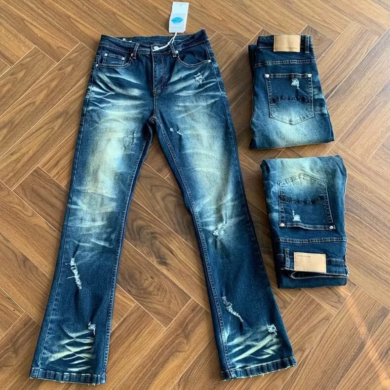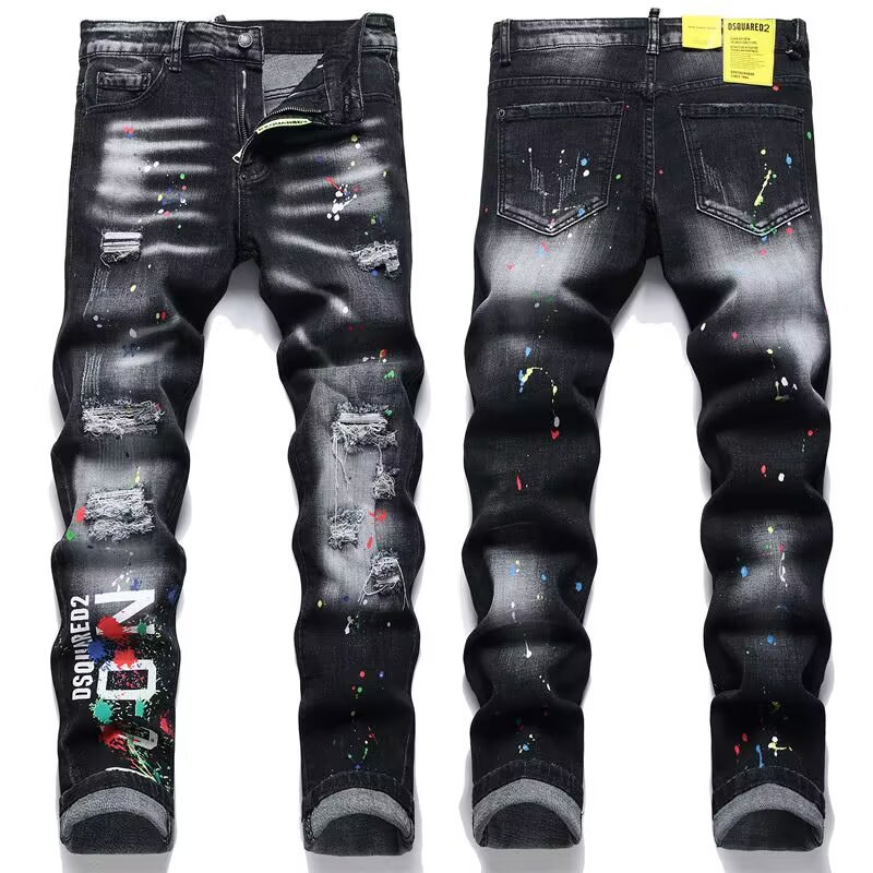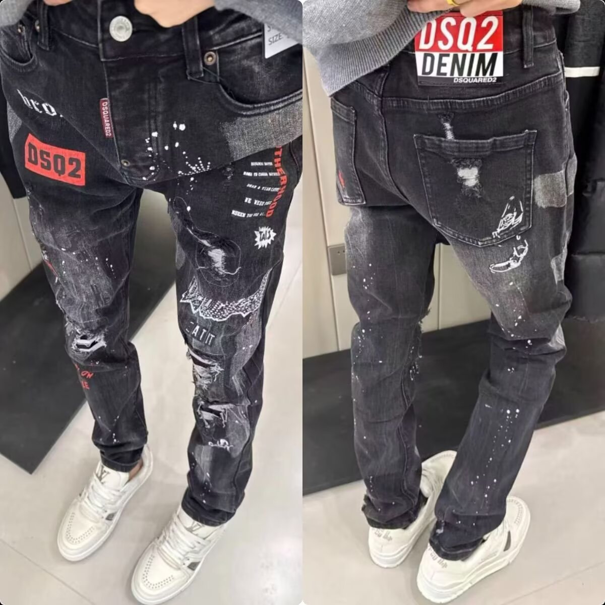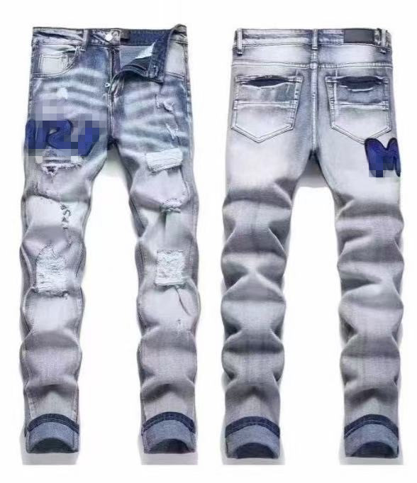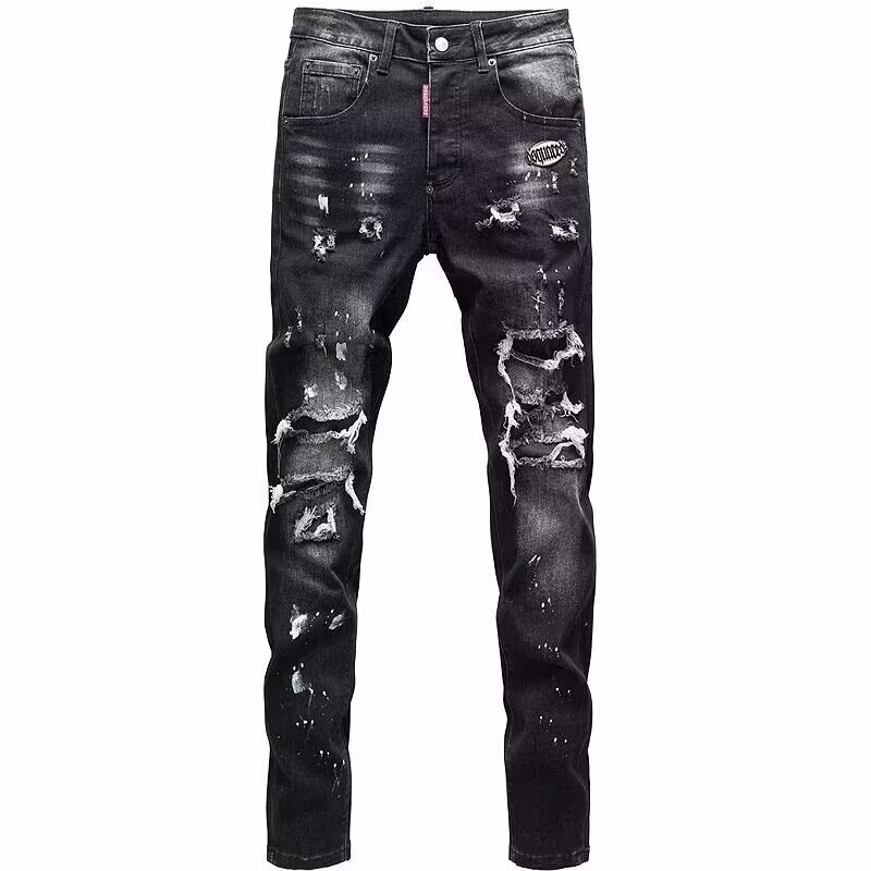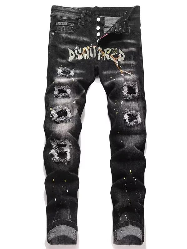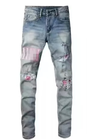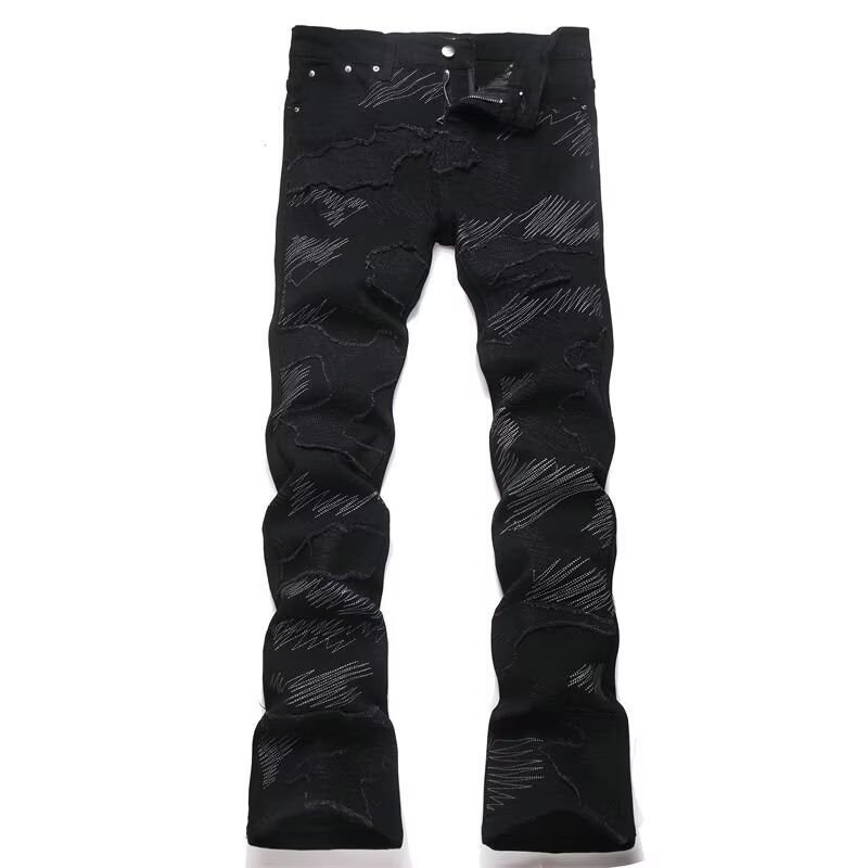 트렌디 한 새로운 도착 찢어진 천 자수 청바지 남성 트렌디 한 캐주얼 패치 슬림 핏 작은 발 유행 맞춤형 바지스토어 가기