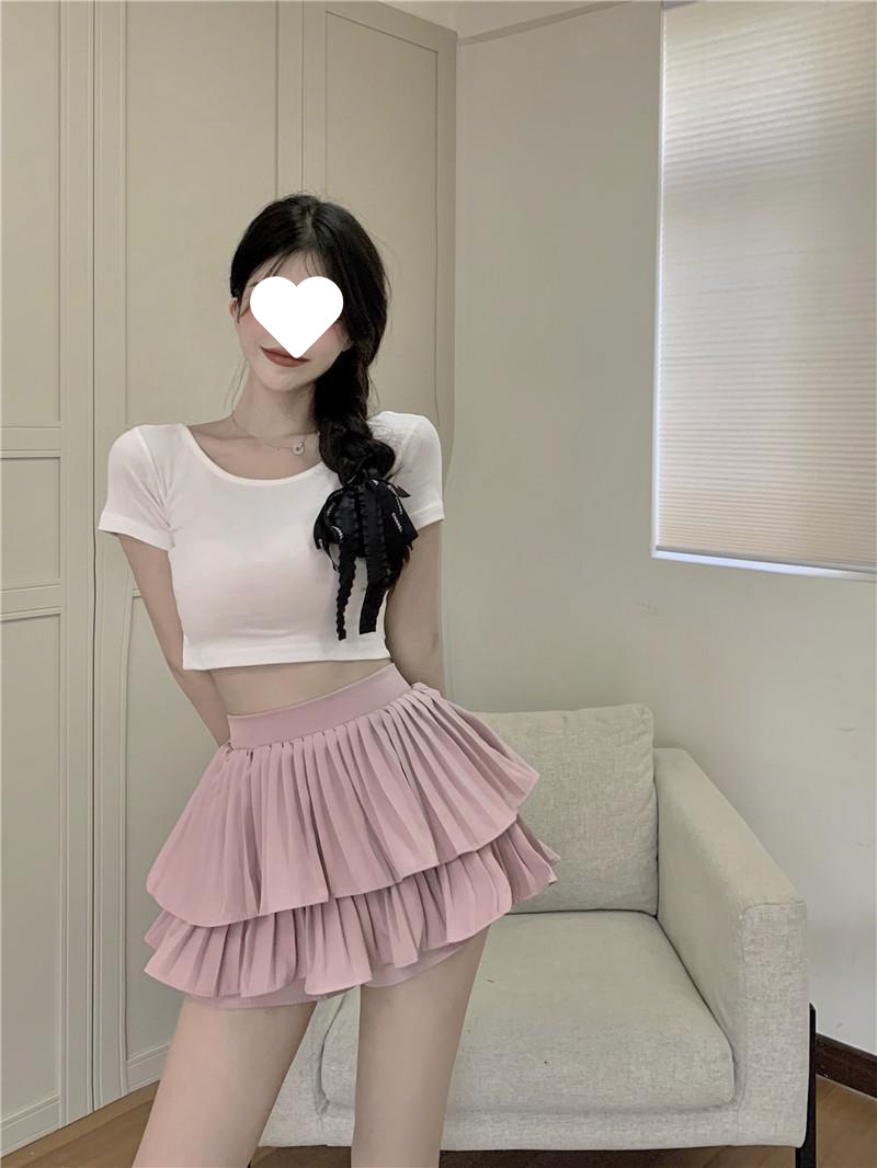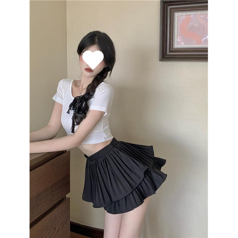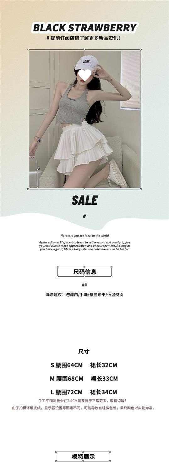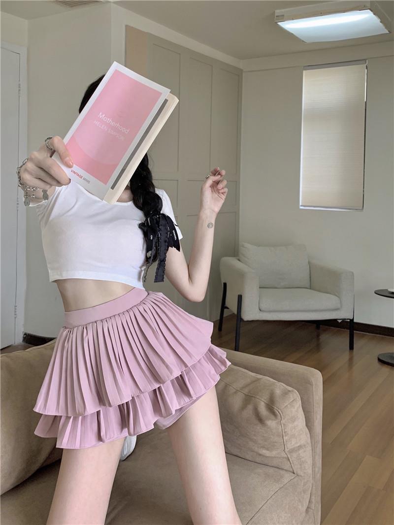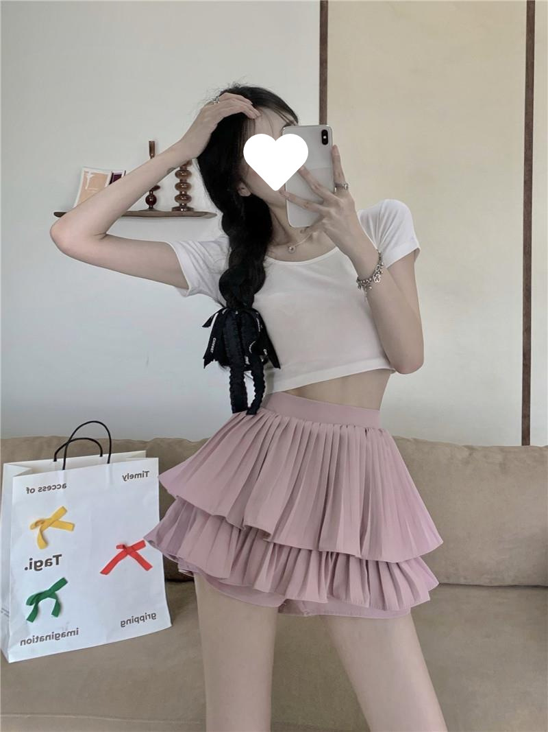 케이크 스커트 여성 화이트 하이 웨이스트 A-라인 스커트 2025 여름 새로운 도착 Culottes 작은 주름 치마스토어 가기
