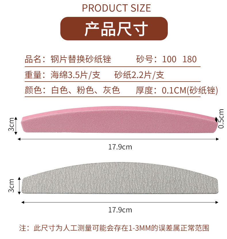 교체 가능한 사포판 강철 파일, 찢을 수 있는 스펀지판, 금속 스테인리스 코어, 구부러지지 않는 손톱 파일, 매니큐어 파일