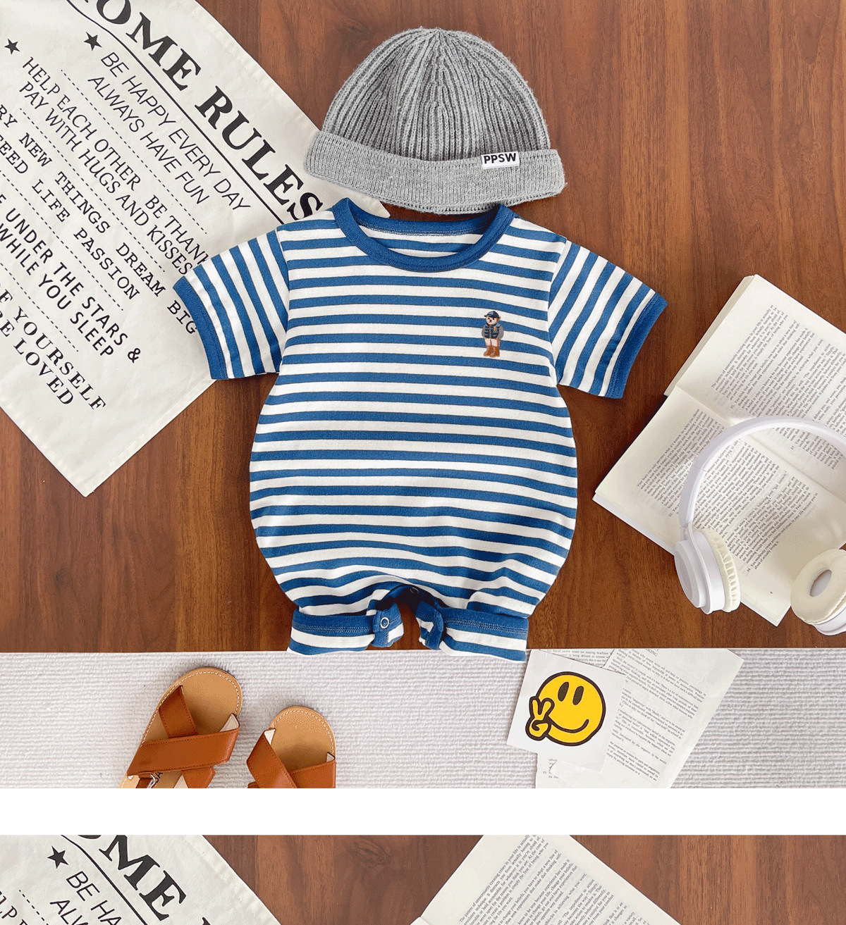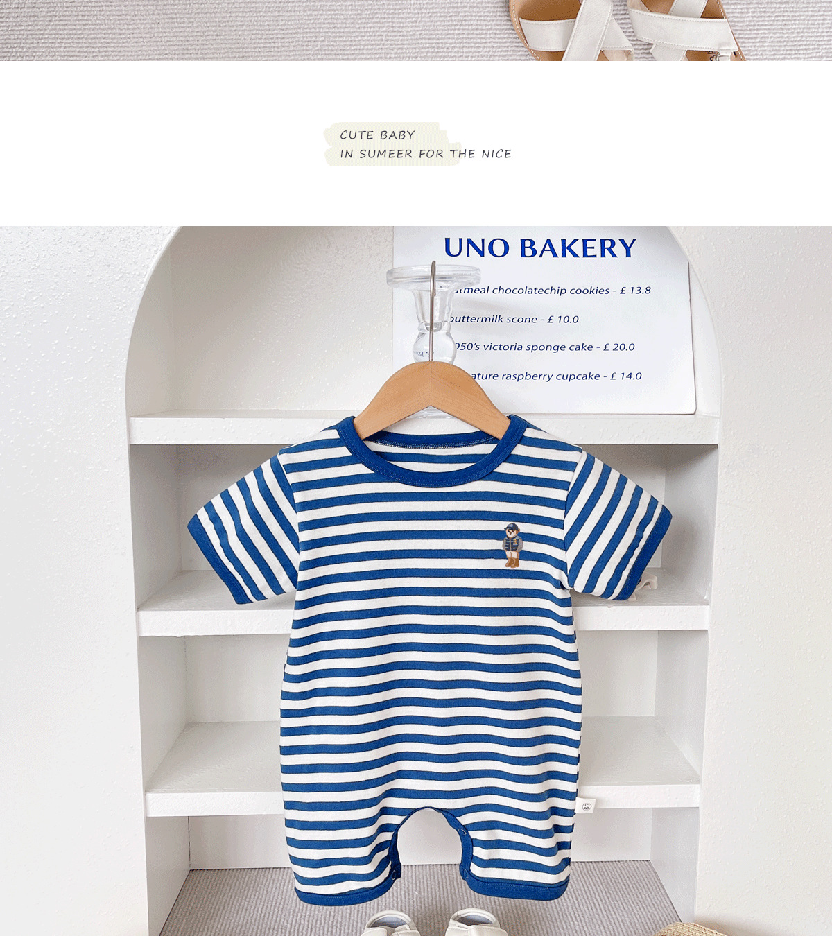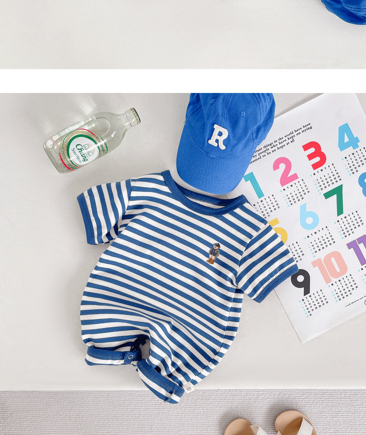 여름 새 아기와 유아 한국 스타일 Ins 귀여운 곰 줄무늬 점프 수트 등반 편안한 소년과 아이들의 유행 옷스토어 가기