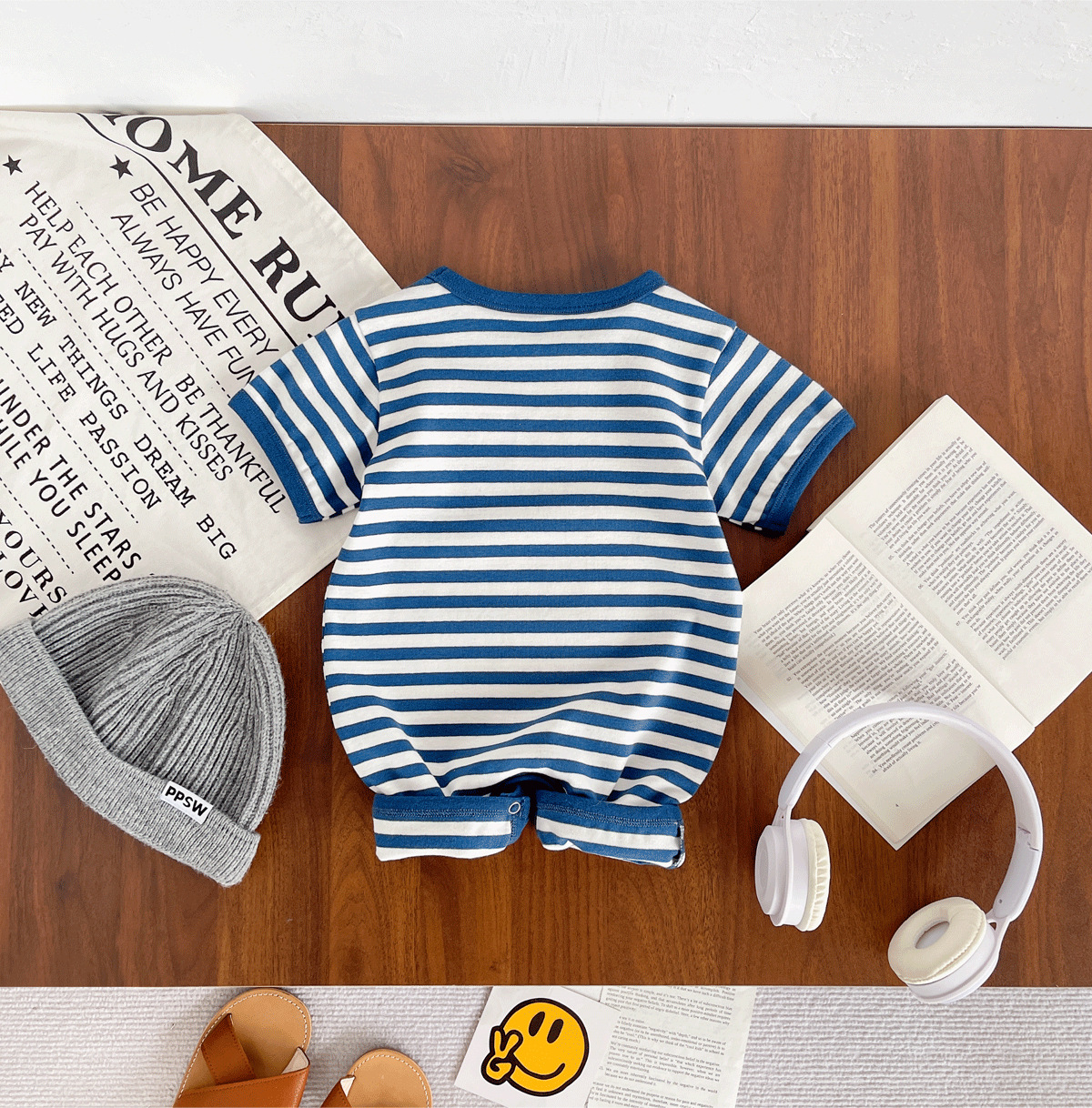 여름 새 아기와 유아 한국 스타일 Ins 귀여운 곰 줄무늬 점프 수트 등반 편안한 소년과 아이들의 유행 옷
