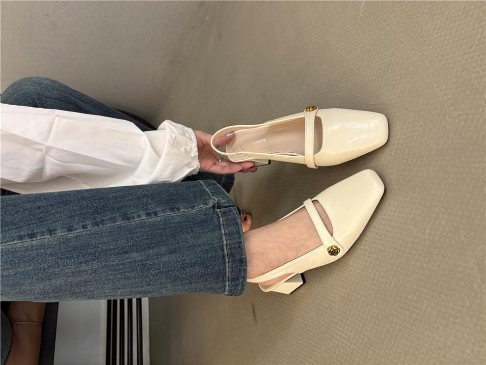 Guofeng 하이힐 여성 두꺼운 힐 여름 2025 새로운 중국 스타일 청삼 메리 제인 싱글 레이어 신발 여성용 미드 힐 샌들