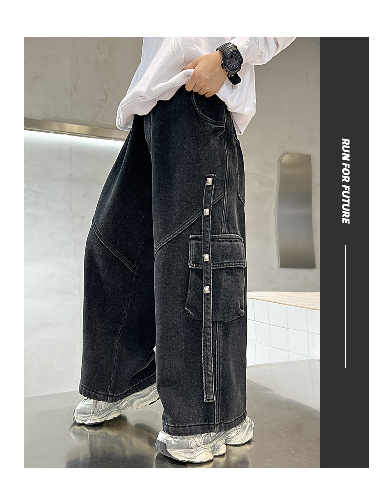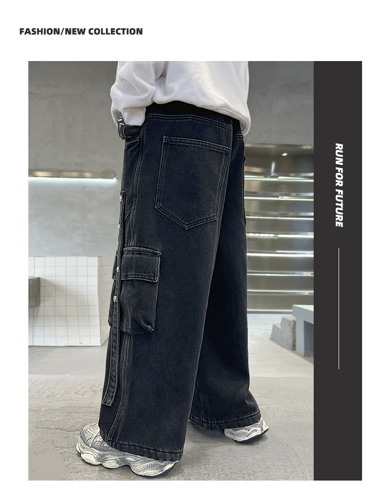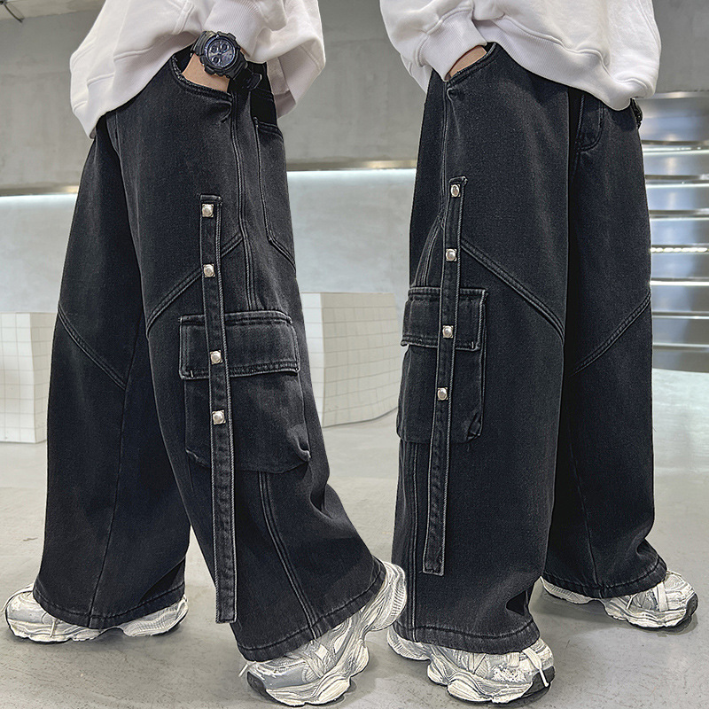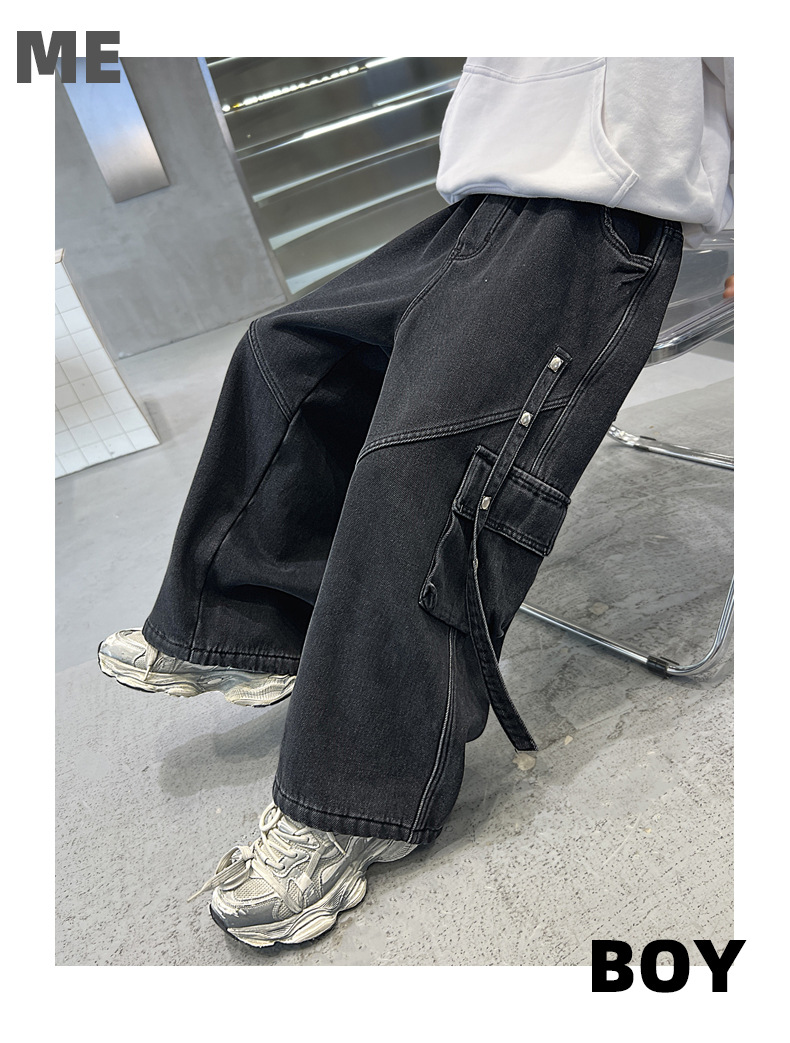 소년 청바지 가을 봄과 가을 2025 새로운 도착 CUHK 어린이 패션 유행 데님 툴링 바지 잘 생긴스토어 가기