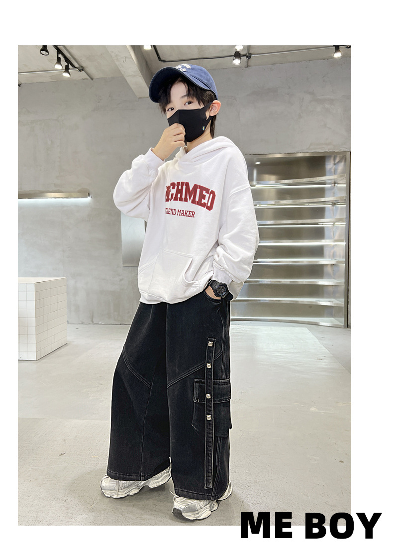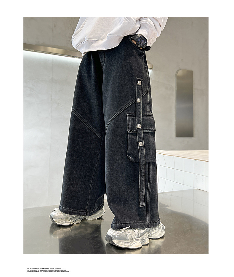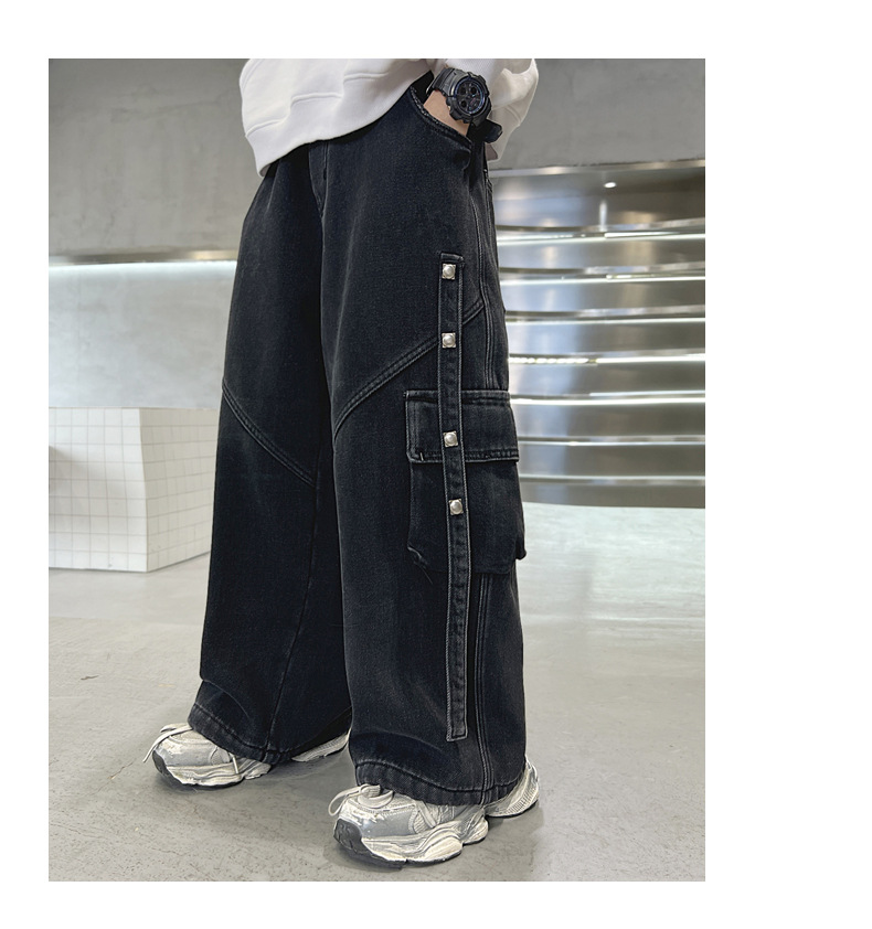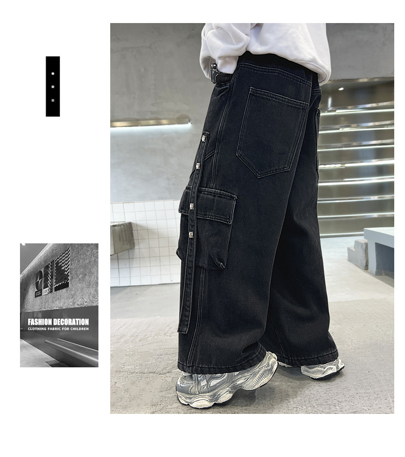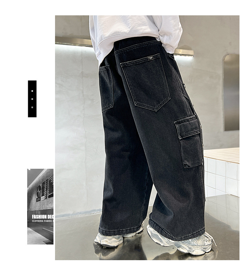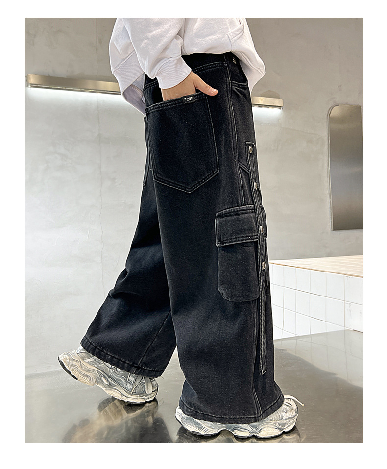 소년 청바지 가을 봄과 가을 2025 새로운 도착 CUHK 어린이 패션 유행 데님 툴링 바지 잘 생긴