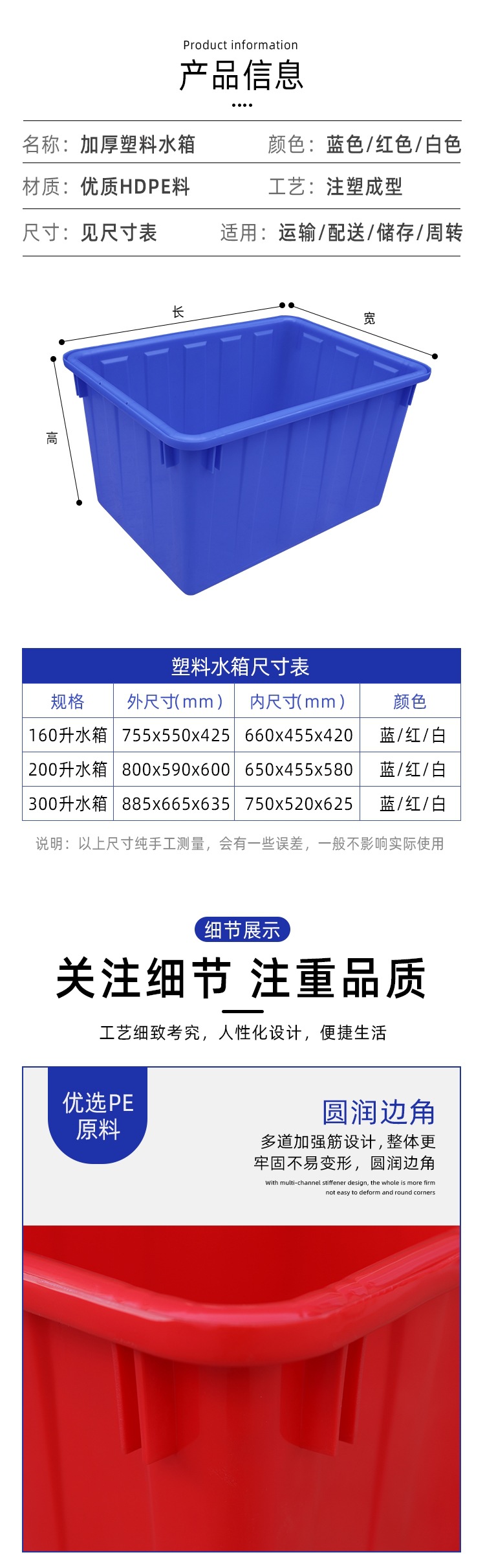 두꺼운 플라스틱 직사각형 Ox Tendon 물 탱크 턴 오버 박스 초대형 물 저장 배럴 물고기 수생 물 탱크 수생 물 탱크