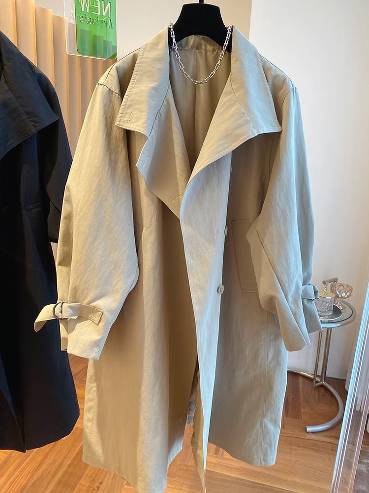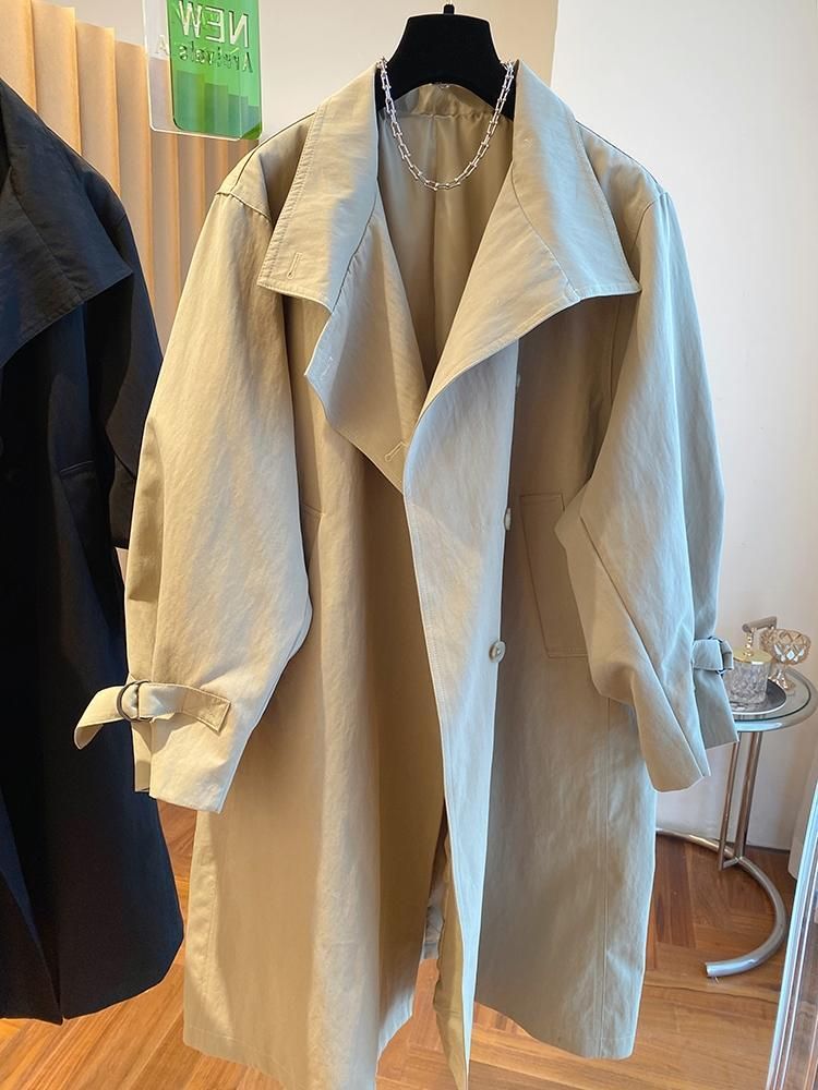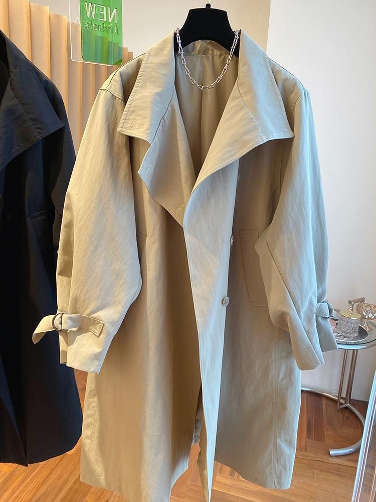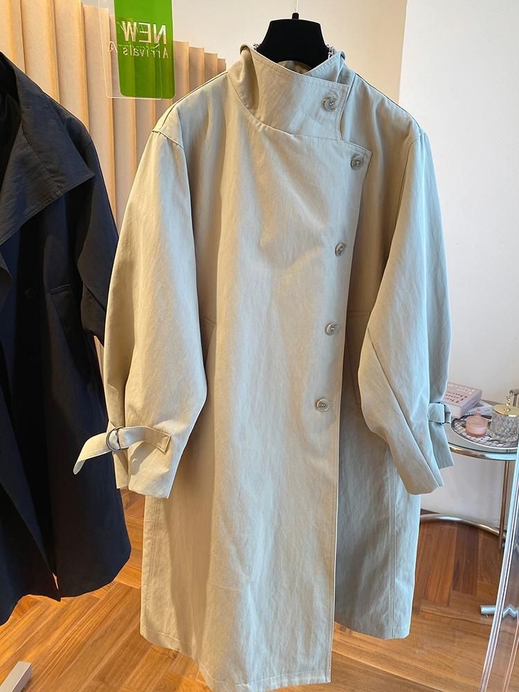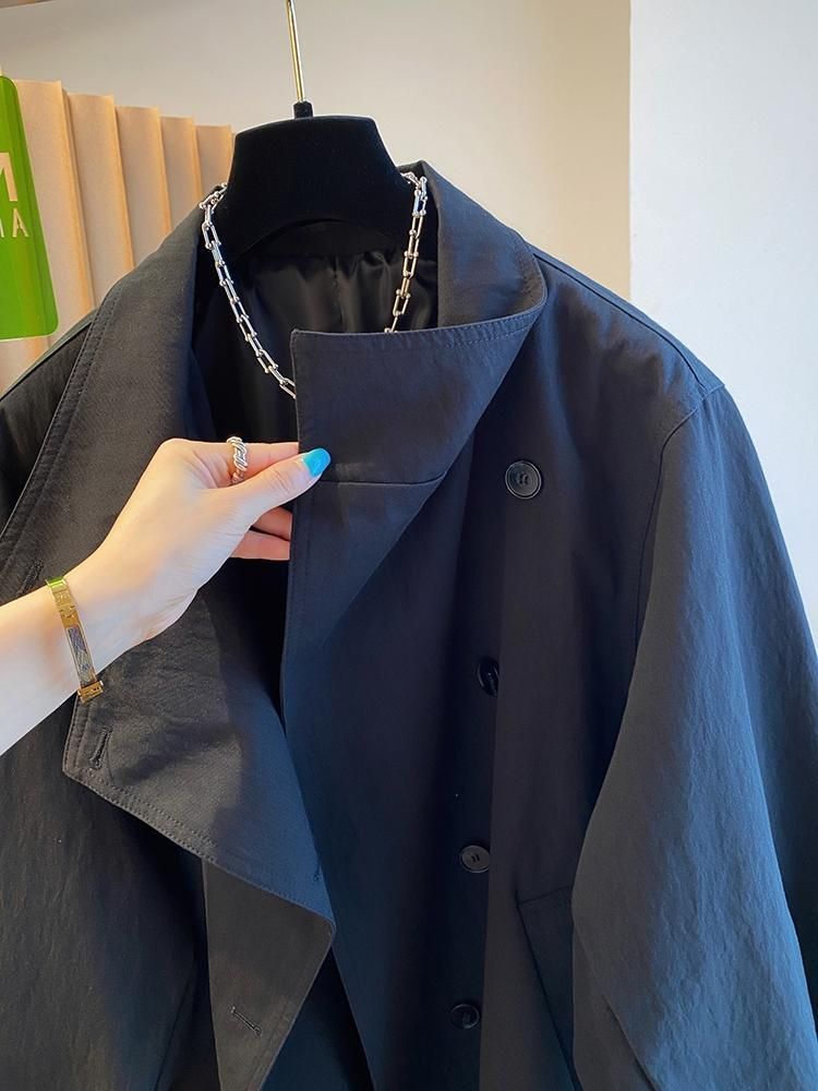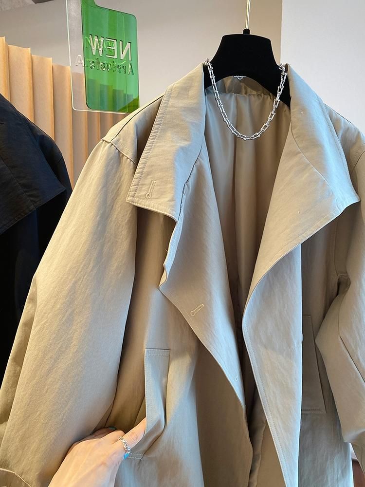플러스 사이즈 200 진 우아한 옷깃 중간 길이의 코트 여성의 봄과 가을 2024 새로운 느슨한 캐주얼 코트스토어 가기