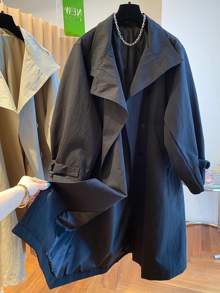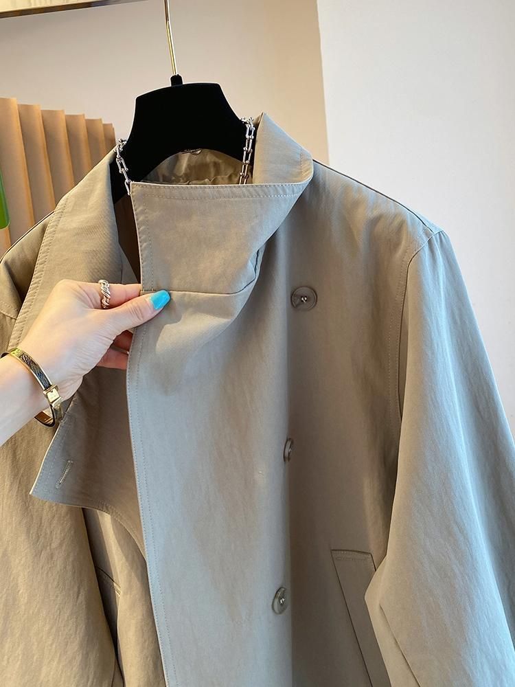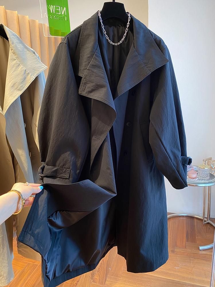 플러스 사이즈 200 진 우아한 옷깃 중간 길이의 코트 여성의 봄과 가을 2024 새로운 느슨한 캐주얼 코트