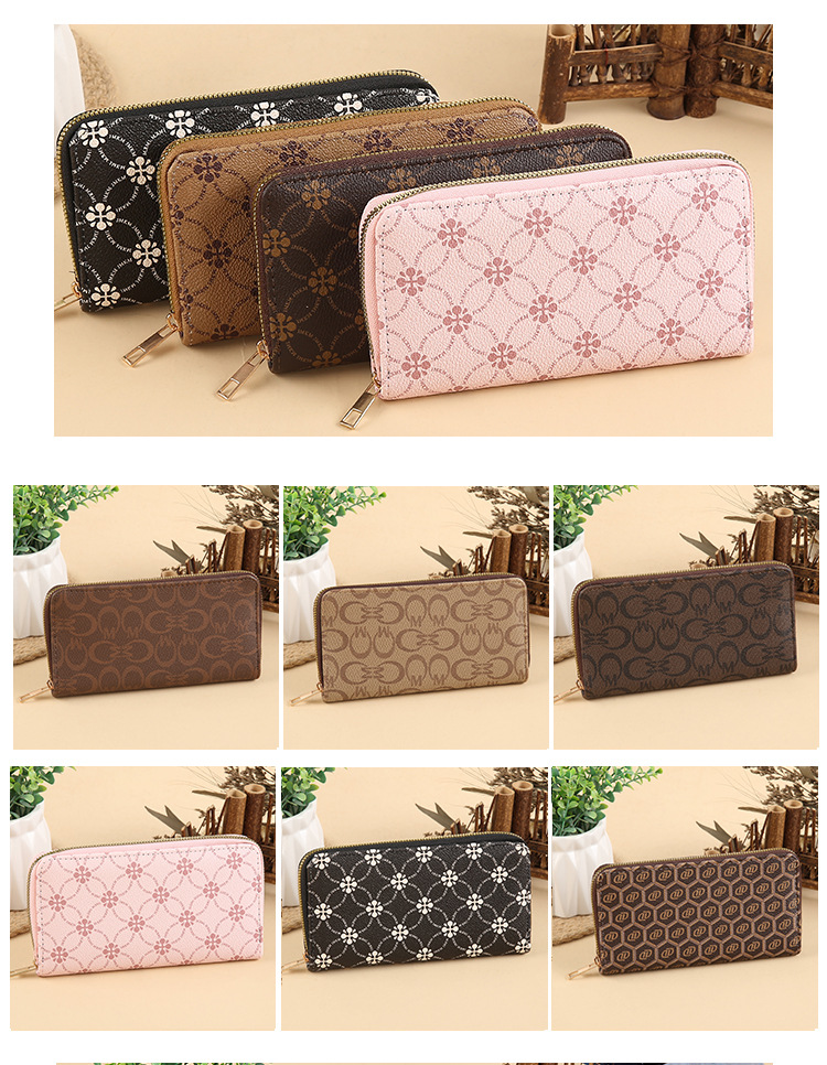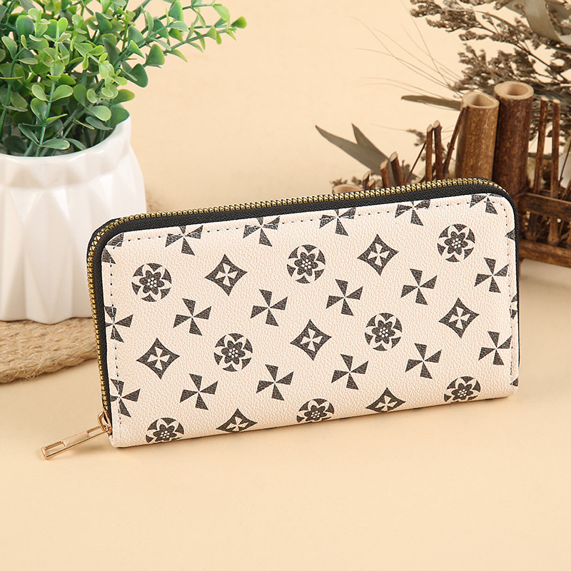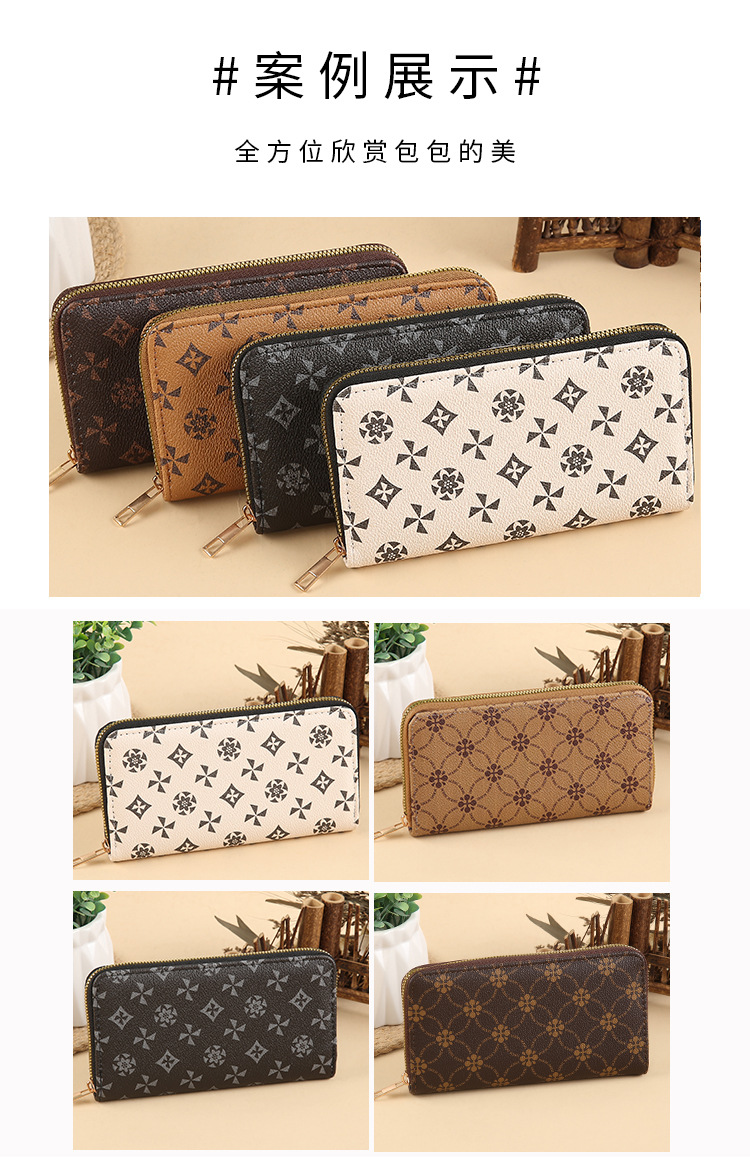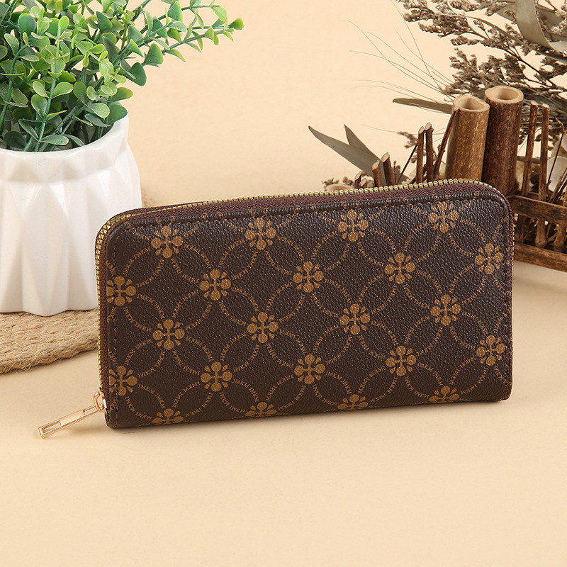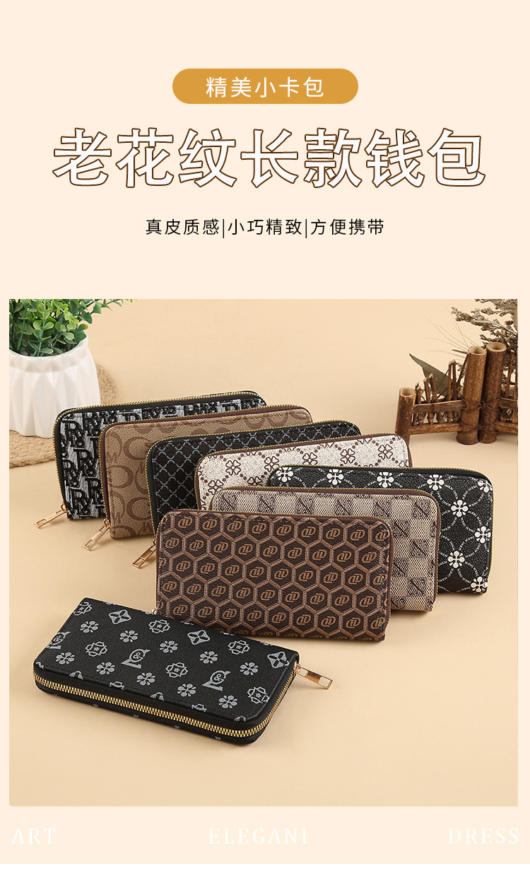 레트로 노안 스타일 싱글 지퍼 지갑 인쇄 긴 여성용 지갑 대용량 저장 지갑 도매 및 소매