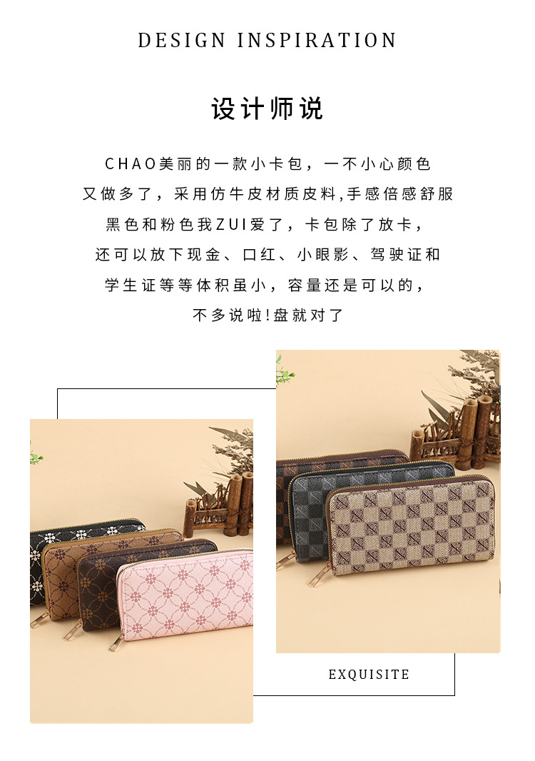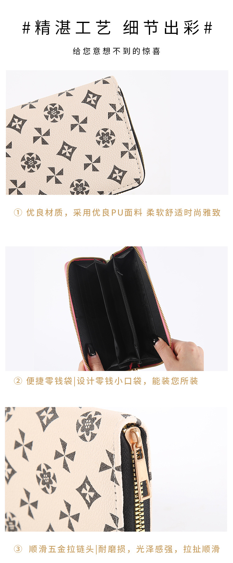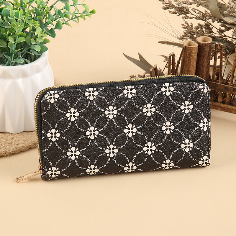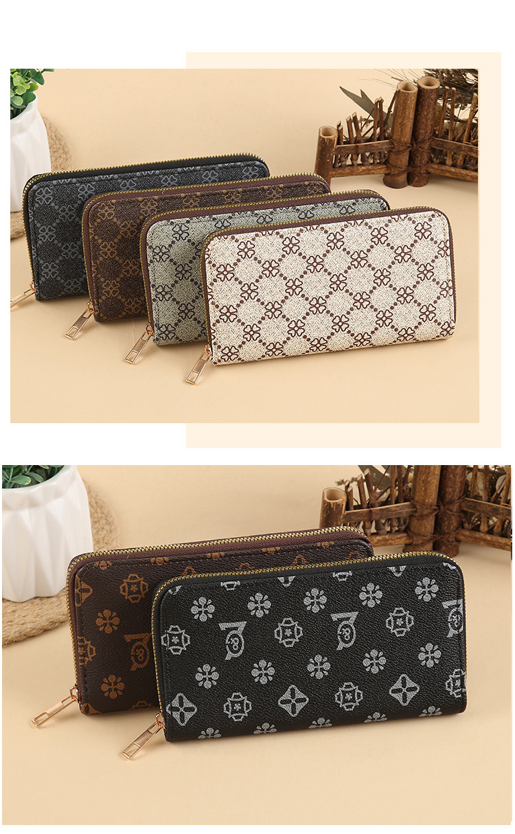 레트로 노안 스타일 싱글 지퍼 지갑 인쇄 긴 여성용 지갑 대용량 저장 지갑 도매 및 소매