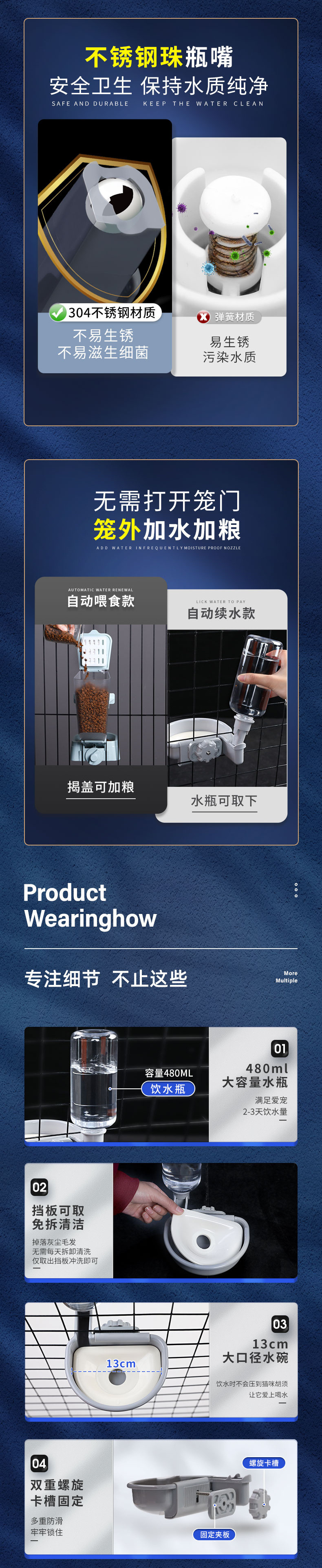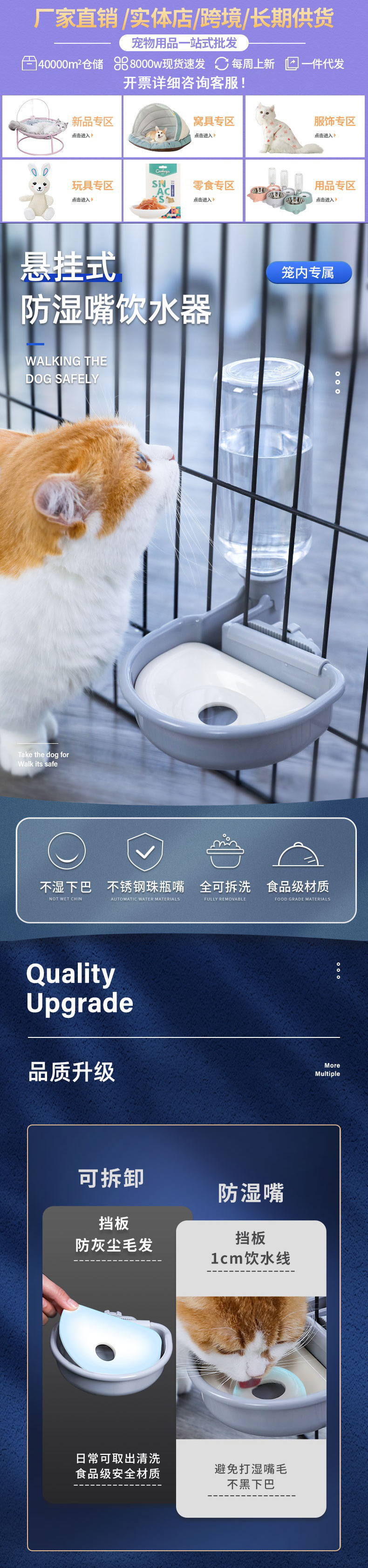 애완 동물 교수형 물 디스펜서는 물을 마시는 입 고양이 개 토끼 자동 피더 흐름 물 케이지를 적시 지 않습니다.스토어 가기