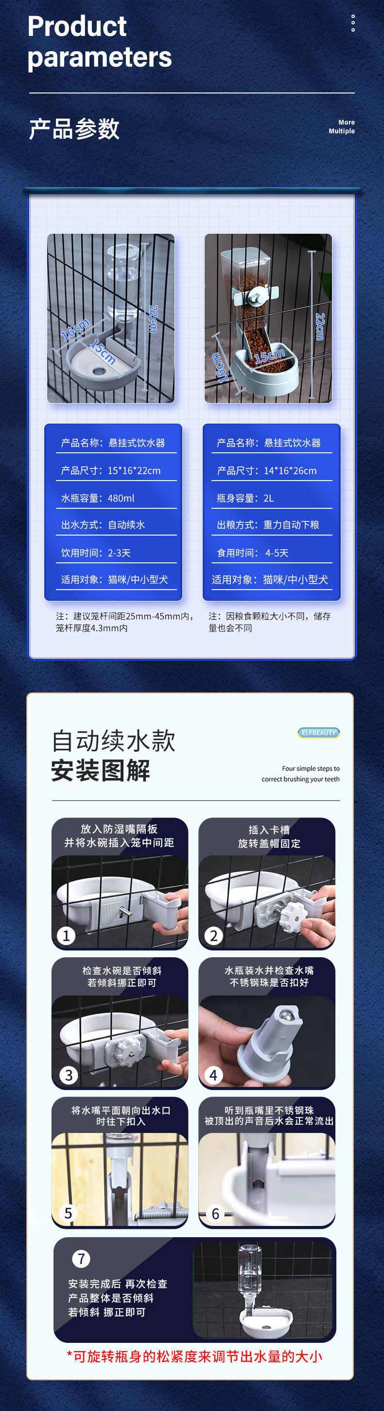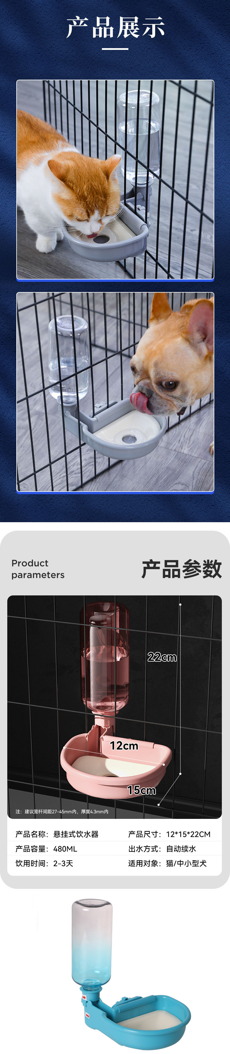 • 애완동물 유출 방지 식수대 블루 480ml