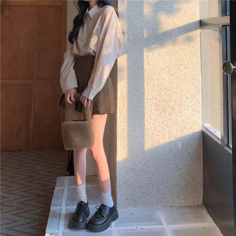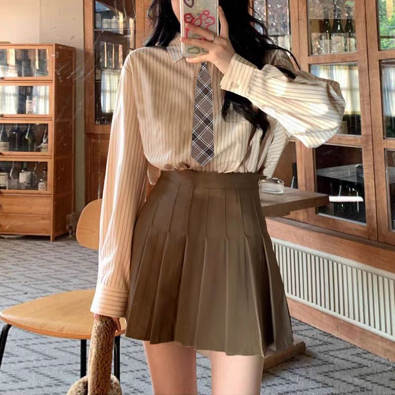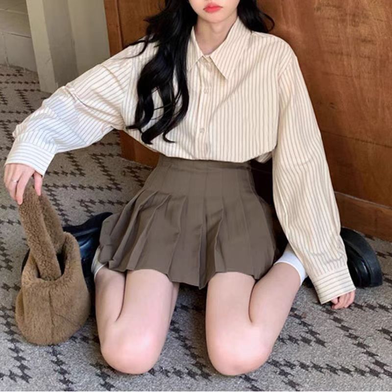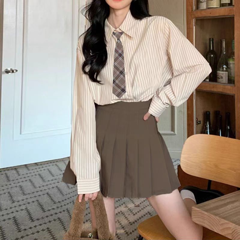 스트라이프 셔츠 여성의 봄과 가을 얇은 대학 스타일 나이 줄이기 긴 소매 최고 여성의 느슨한 캐주얼 일본 스타일 JK 셔츠 트렌디스토어 가기