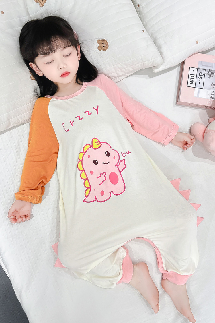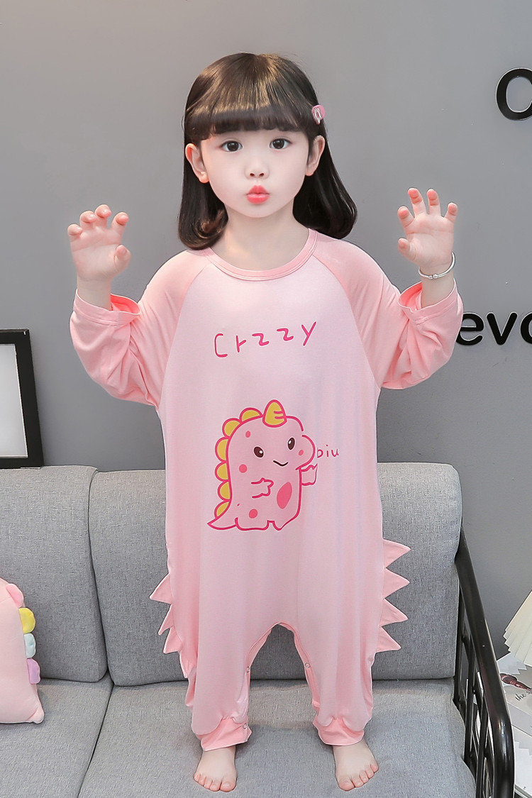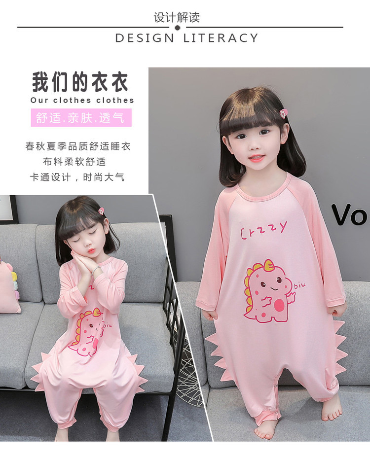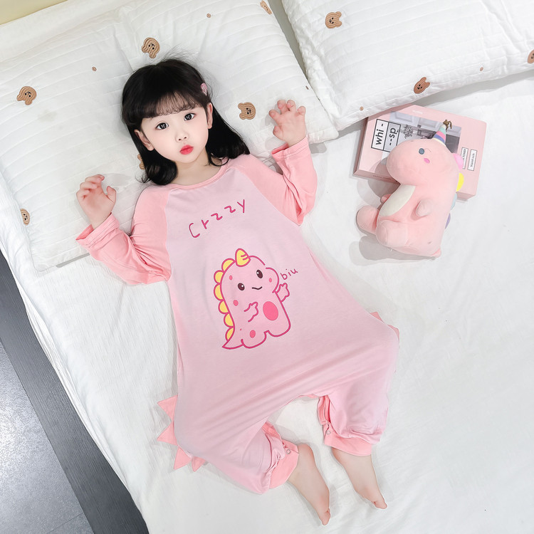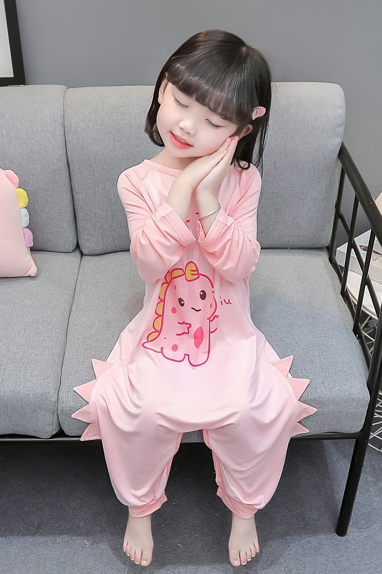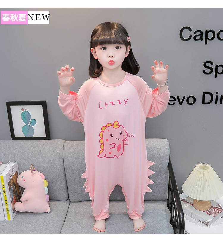 귀여운 공룡 어린이 잠옷 봄과 가을 여름 아기 아기 작은 소녀 킥 방지 슬리핑 가방 소녀 점프 수트