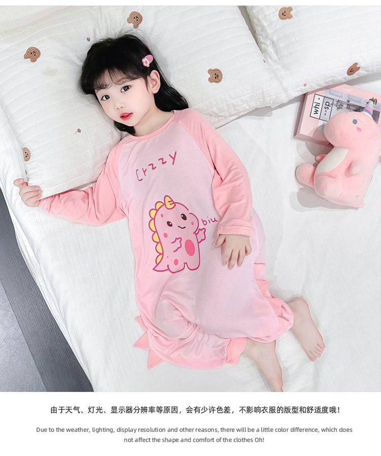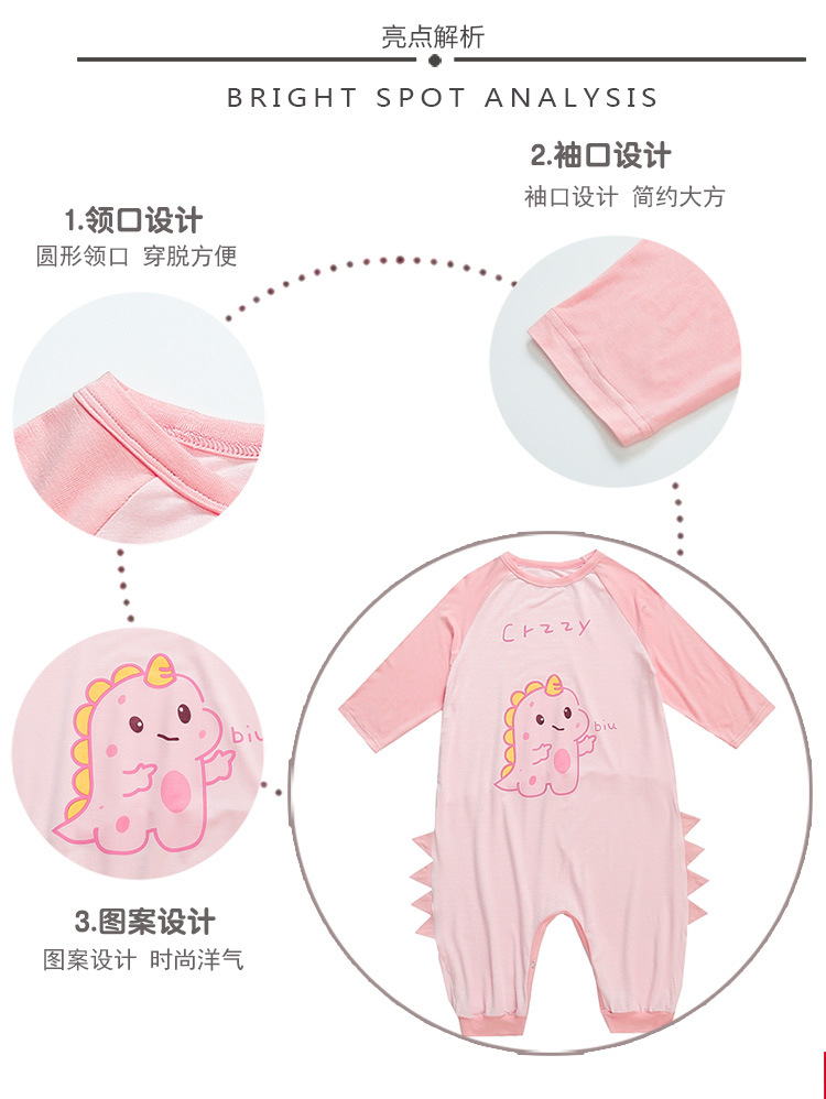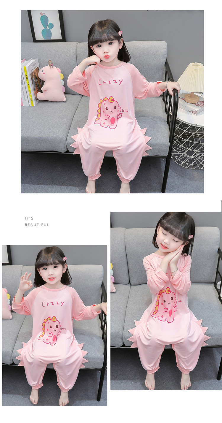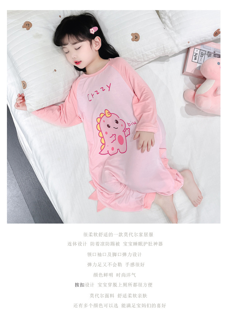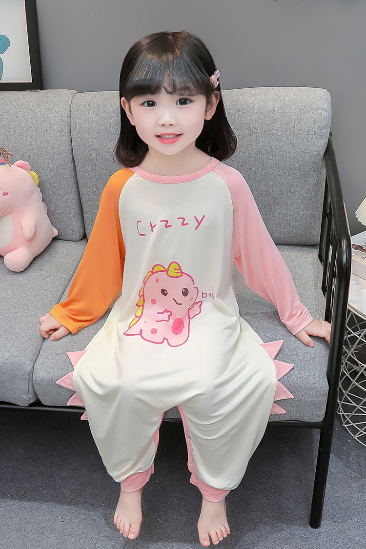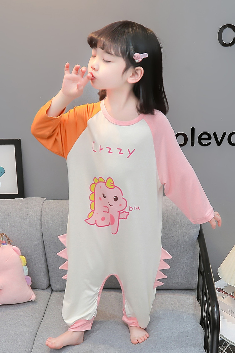 귀여운 공룡 어린이 잠옷 봄과 가을 여름 아기 아기 작은 소녀 킥 방지 슬리핑 가방 소녀 점프 수트