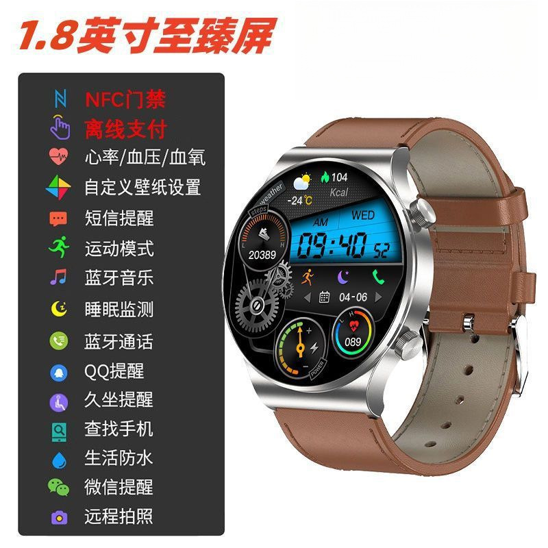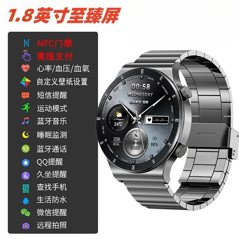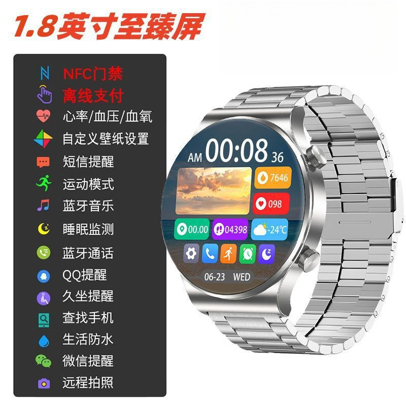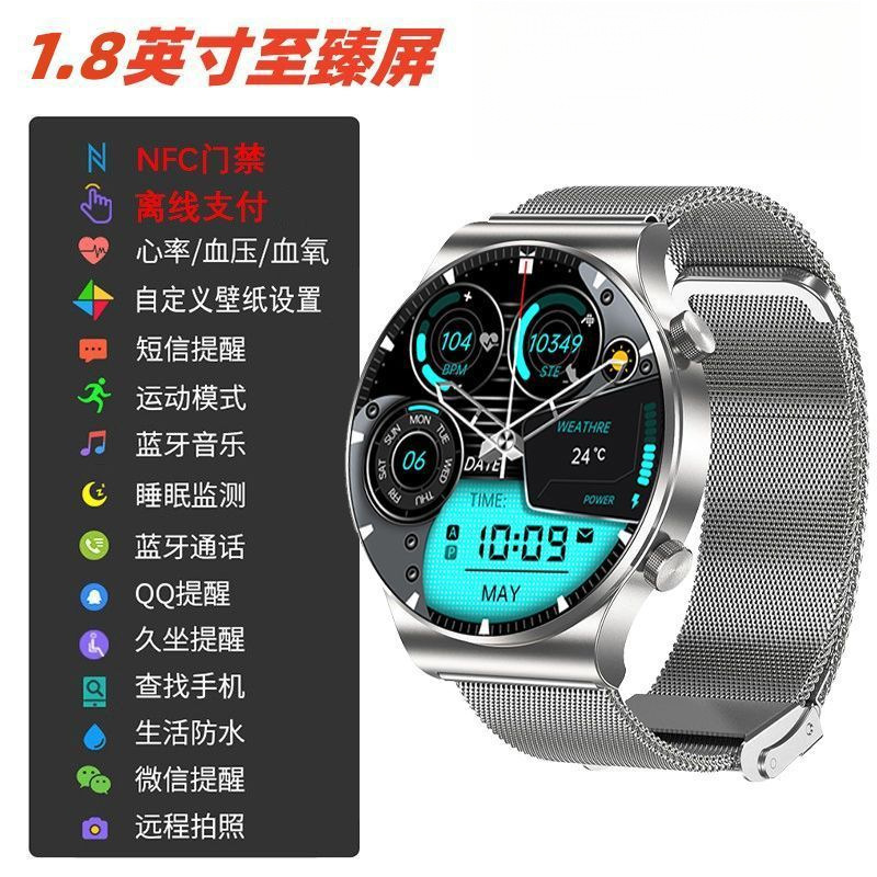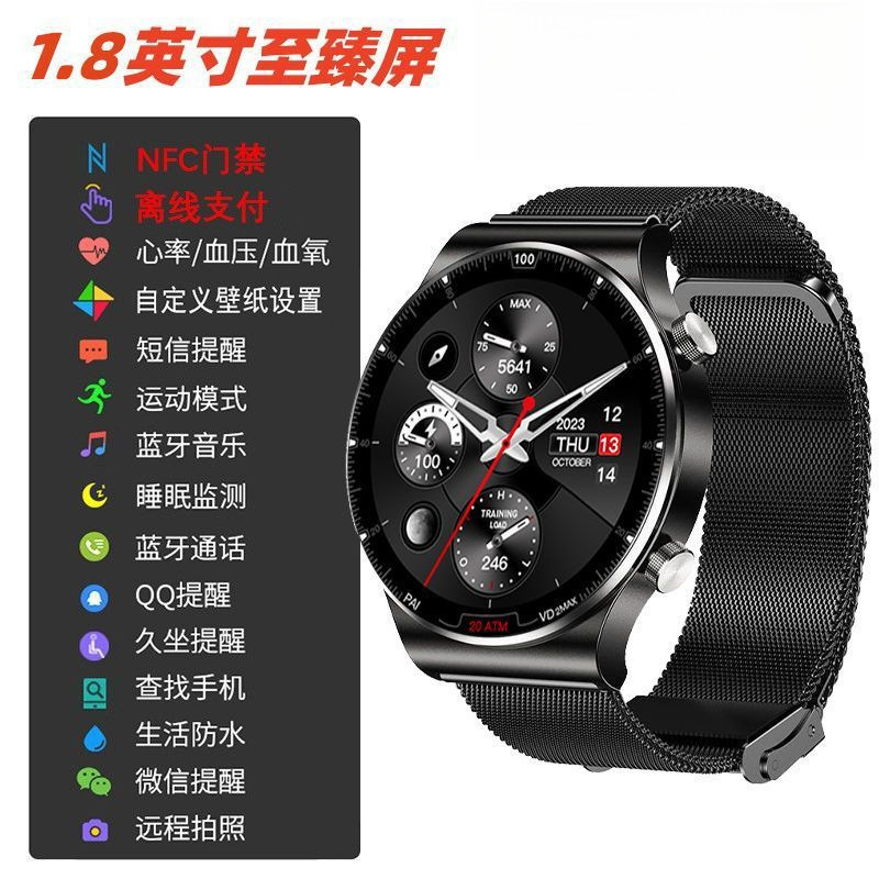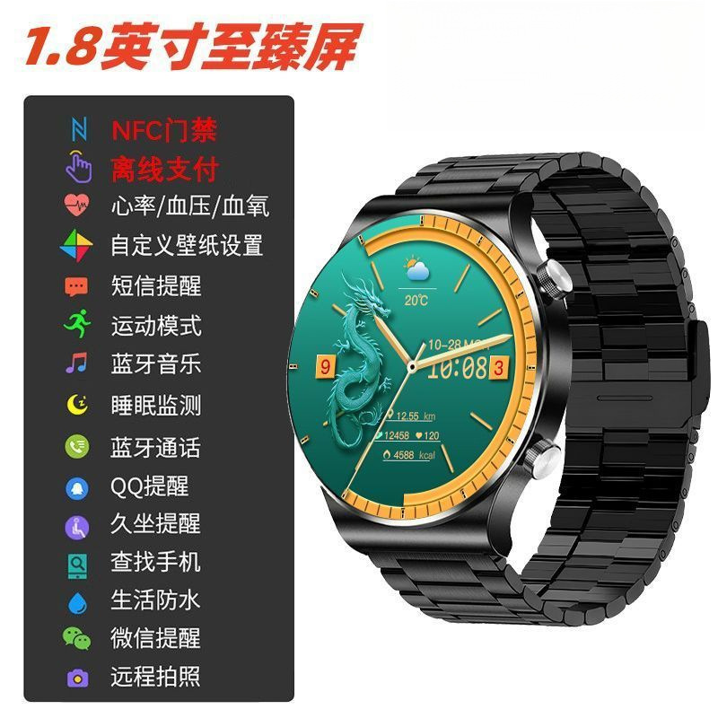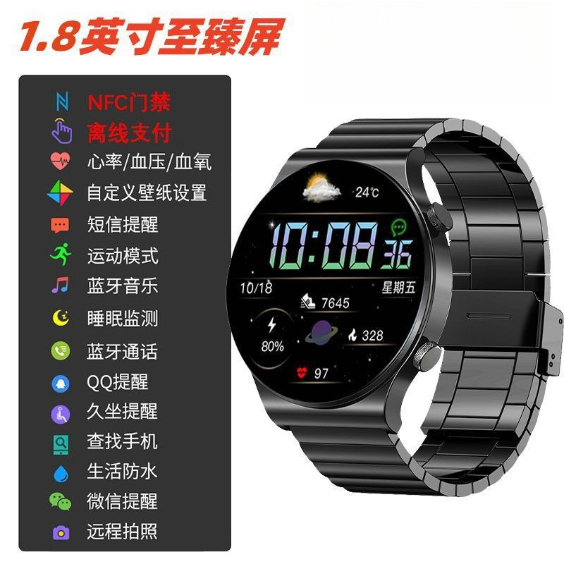 다기능 스마트 시계 블루투스 전화 NFC 블랙 기술 건강 모니터링 비즈니스 스포츠 성인 시계 음성스토어 가기