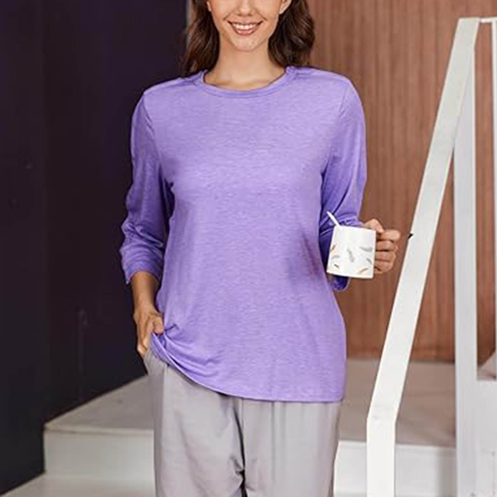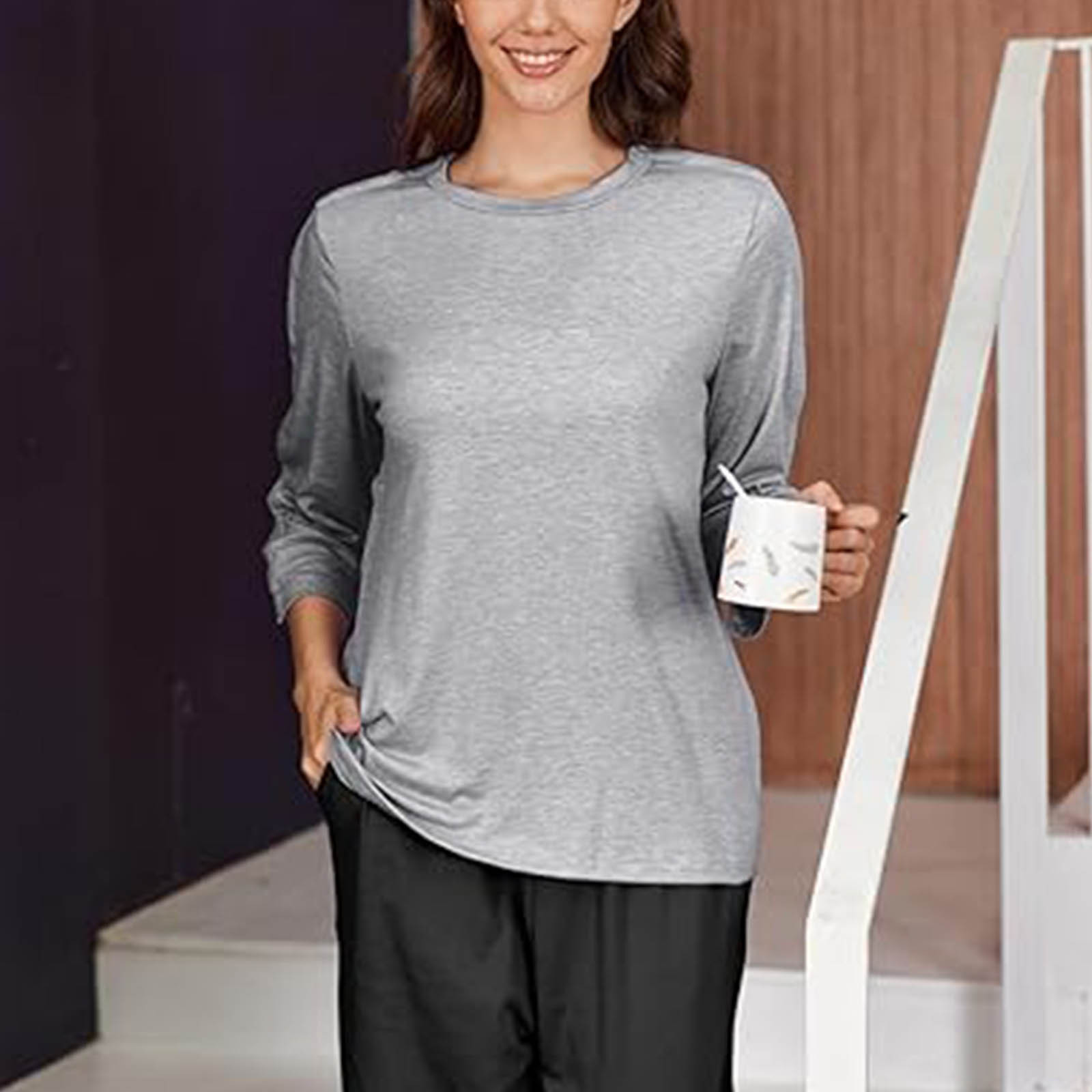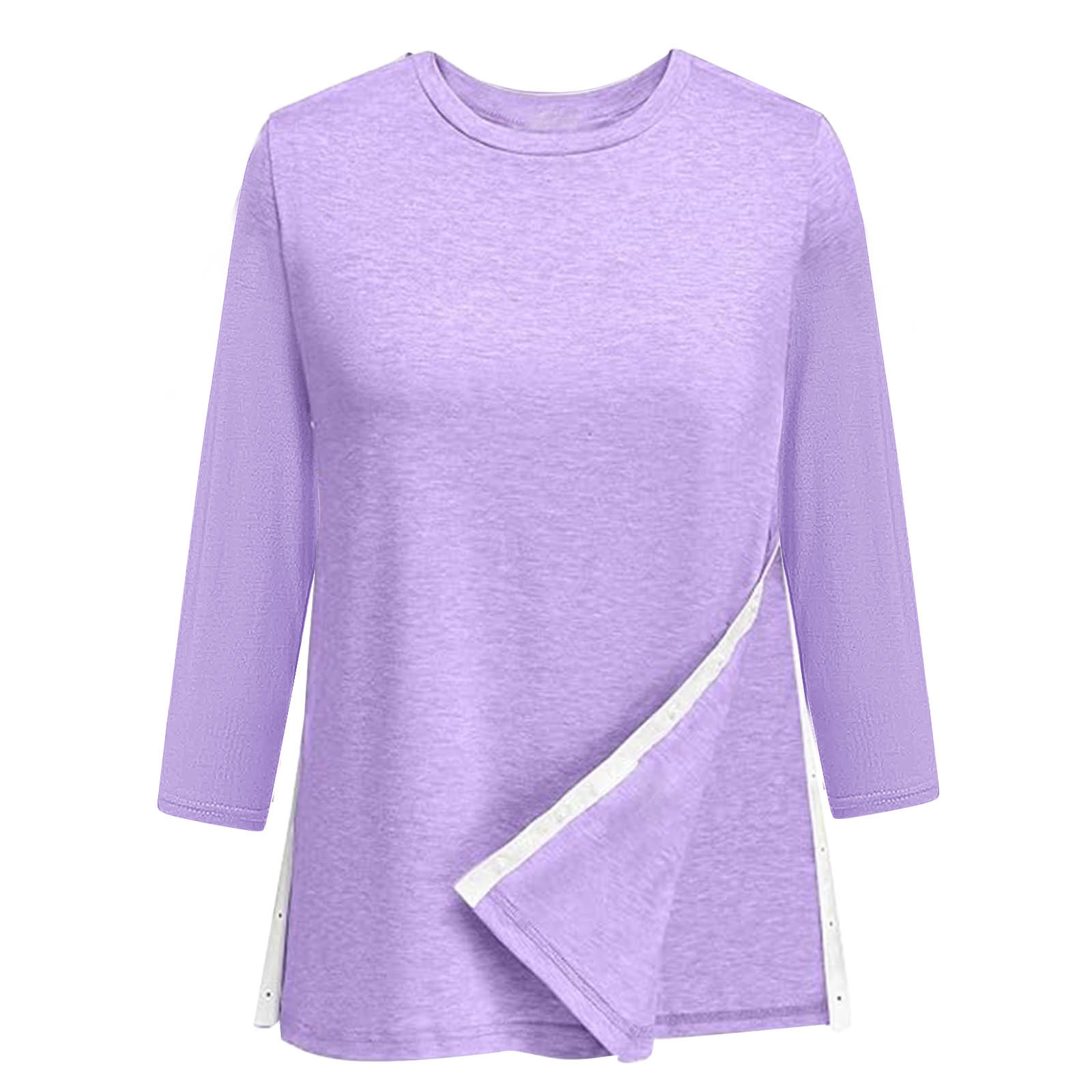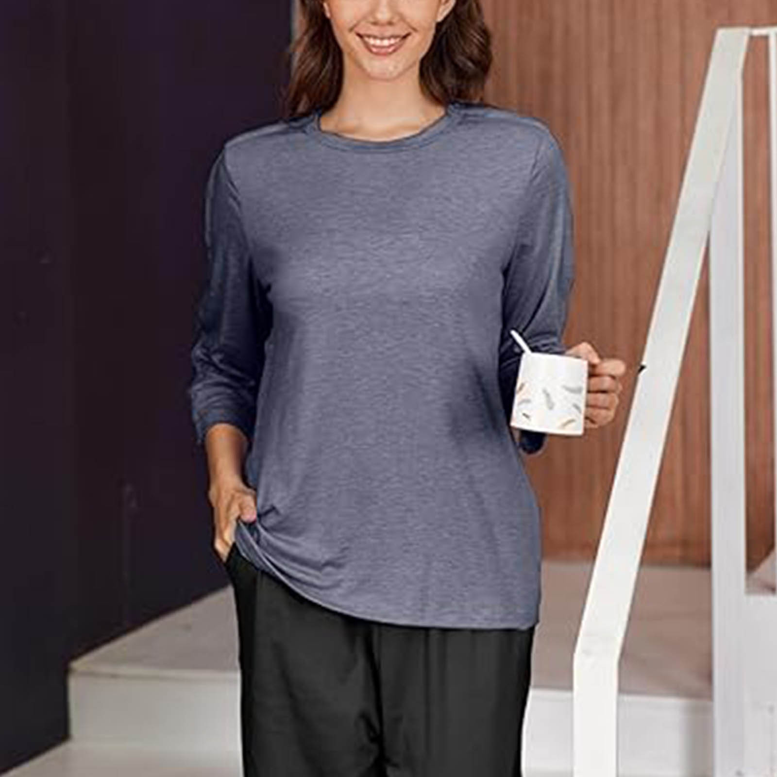 유럽과 미국의 아마존 여성 티셔츠 사이드 바느질 긴 소매 조정 가능한 버튼 라운드 캐주얼 루즈 탑스토어 가기