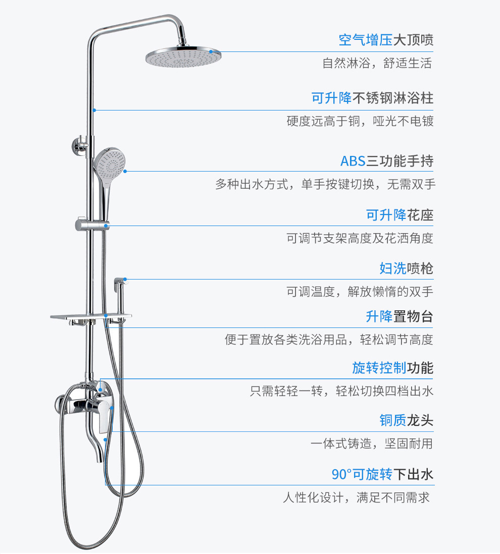 • 리프팅 튜브가 있는 간편 설치 샤워 헤드(설치 패키지 포함)