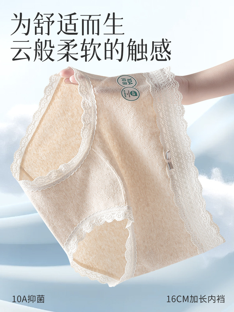 클래스 10A 항균 클래스 면화 확장 가랑이 통기성 레이스 허리 부드럽고 편안한 소녀의 삼각형 반바지스토어 가기