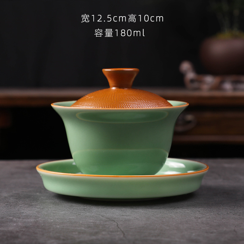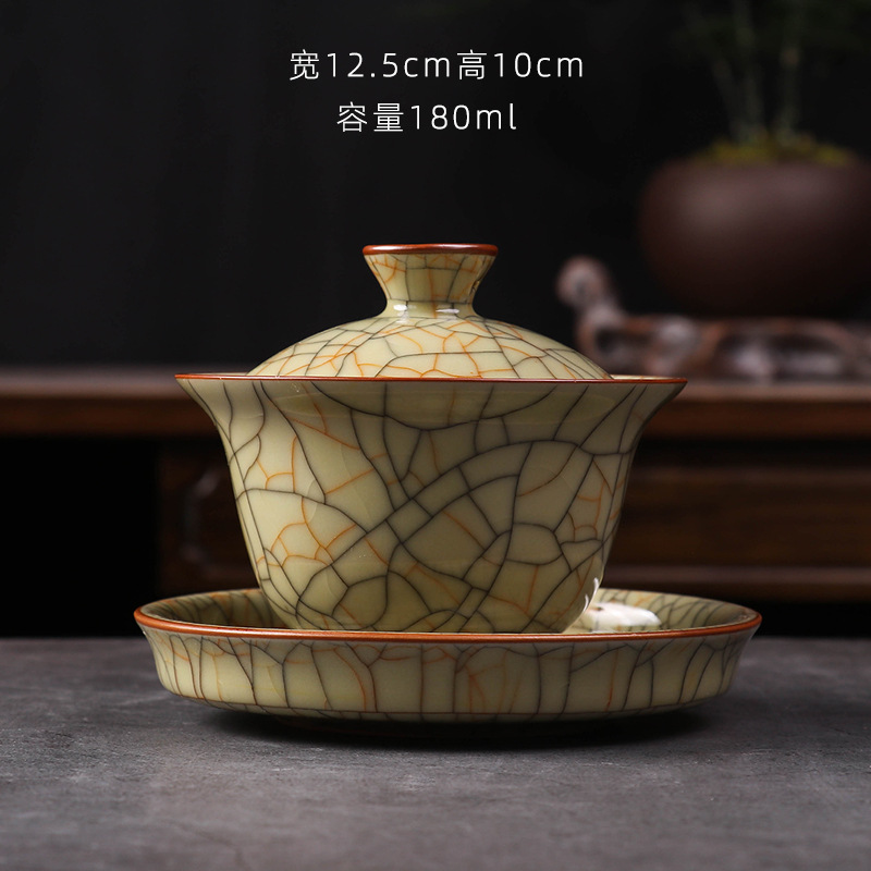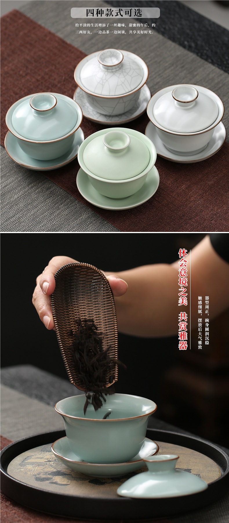 Ru Yao Sicai Gai Bowl 티 컵 대형 세라믹 가정용 다도 싱글 안티 스케일 핸드 티 볼 쿵푸 티 세트스토어 가기