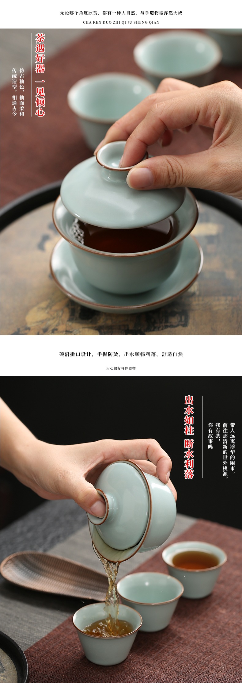 Ru Yao Sicai Gai Bowl 티 컵 대형 세라믹 가정용 다도 싱글 안티 스케일 핸드 티 볼 쿵푸 티 세트