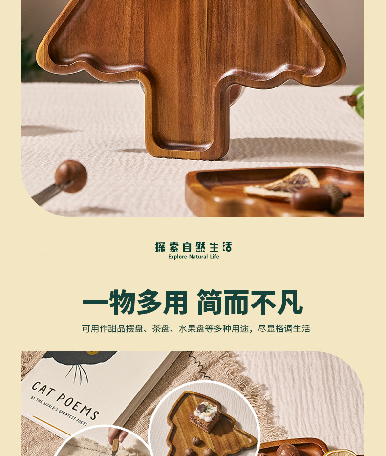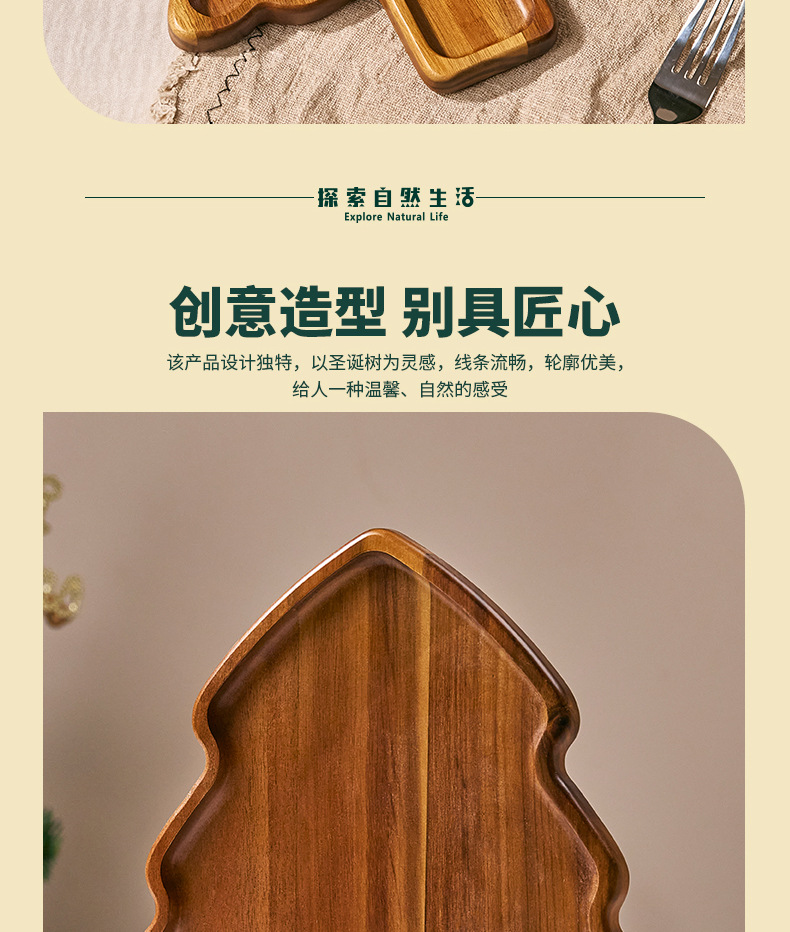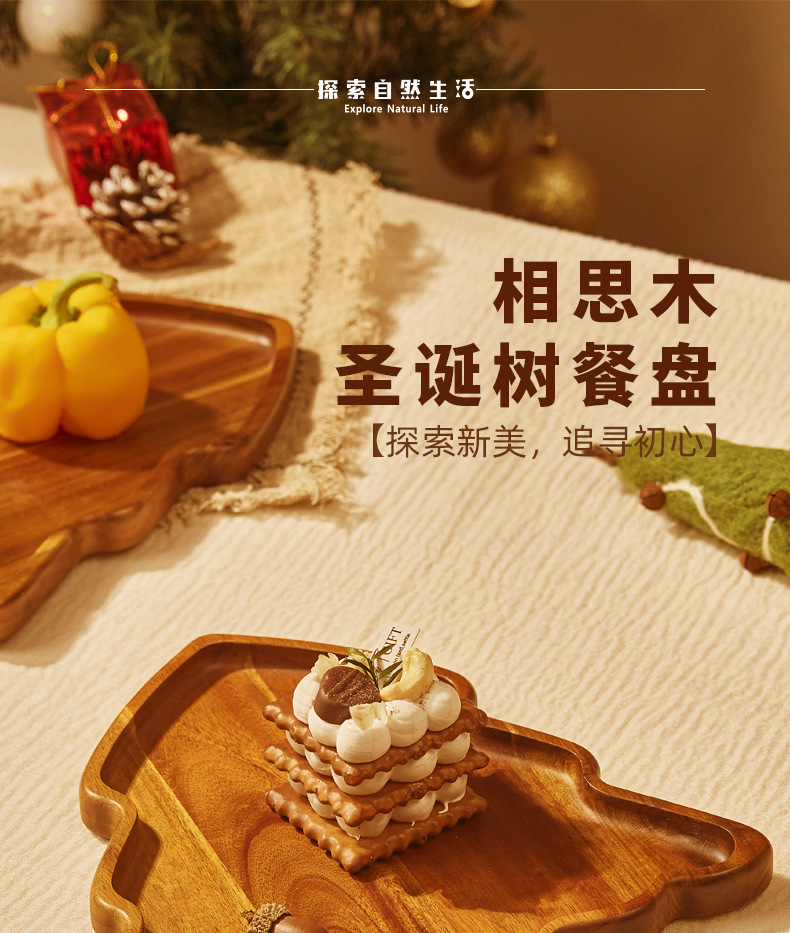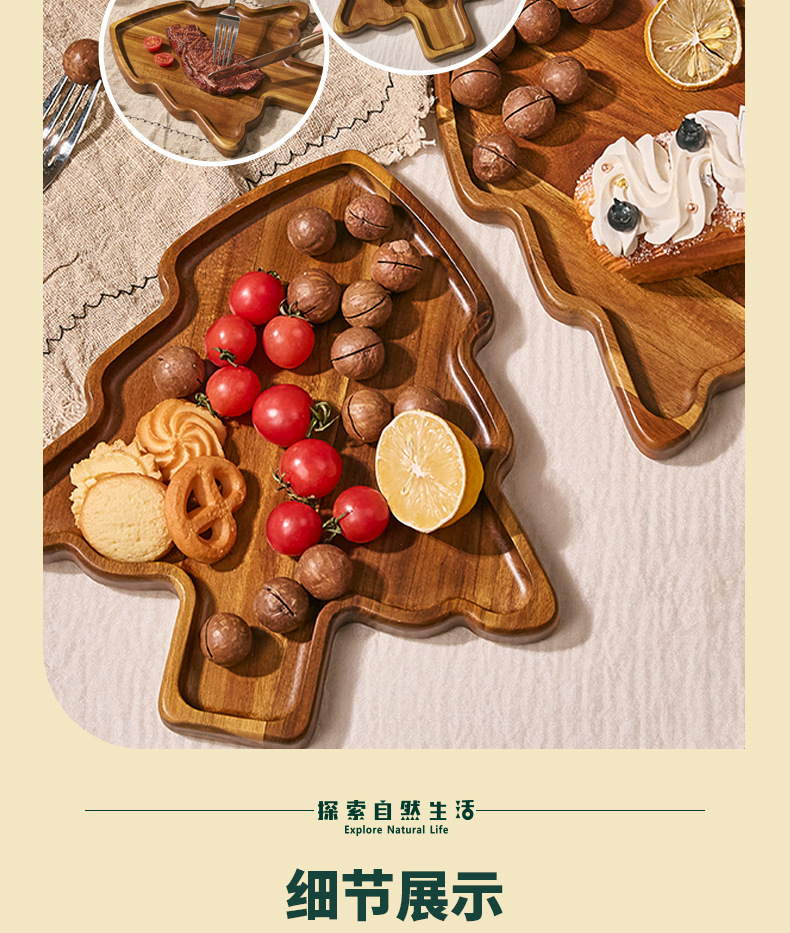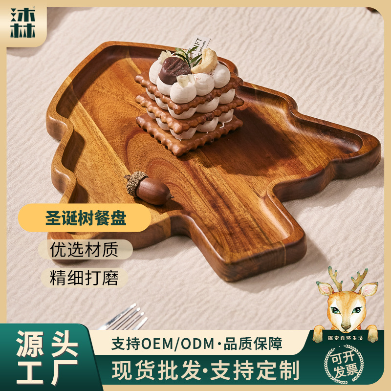 도매 아카시아 나무 크리스마스 트리 디너 플레이트 오후 차 가정용 중국 디너 플레이트 작은 나무 접시 단단한 나무 트레이 나무 트레이스토어 가기
