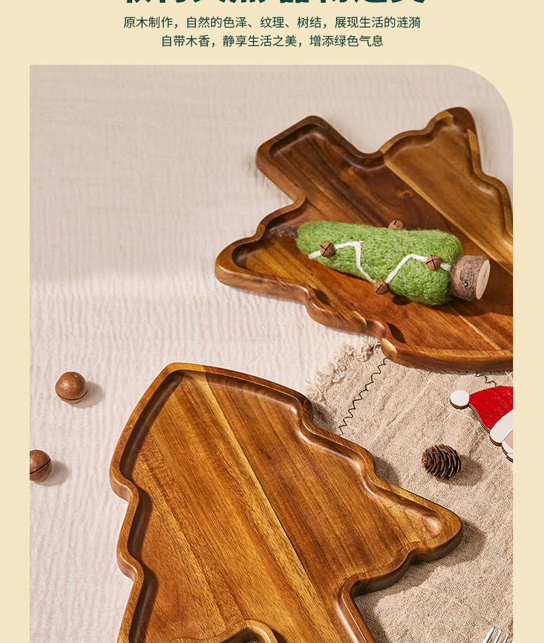 도매 아카시아 나무 크리스마스 트리 디너 플레이트 오후 차 가정용 중국 디너 플레이트 작은 나무 접시 단단한 나무 트레이 나무 트레이