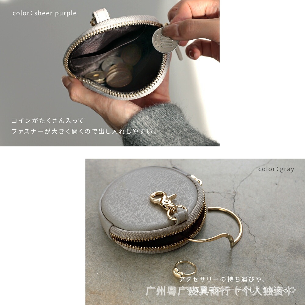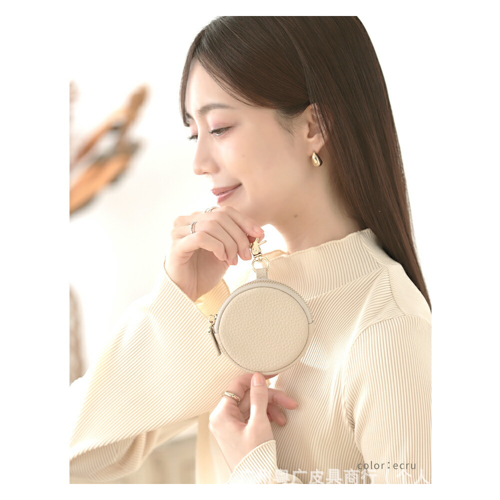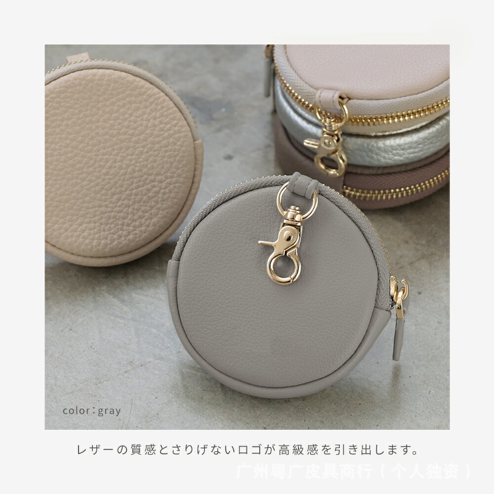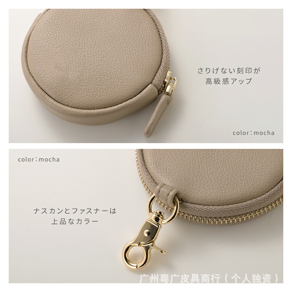 일본 라쿠텐 새로운 정품 가죽 라운드 동전 지갑 Lychee 패턴 지퍼 휴대용 동전 가방 여성용 다기능 지갑스토어 가기