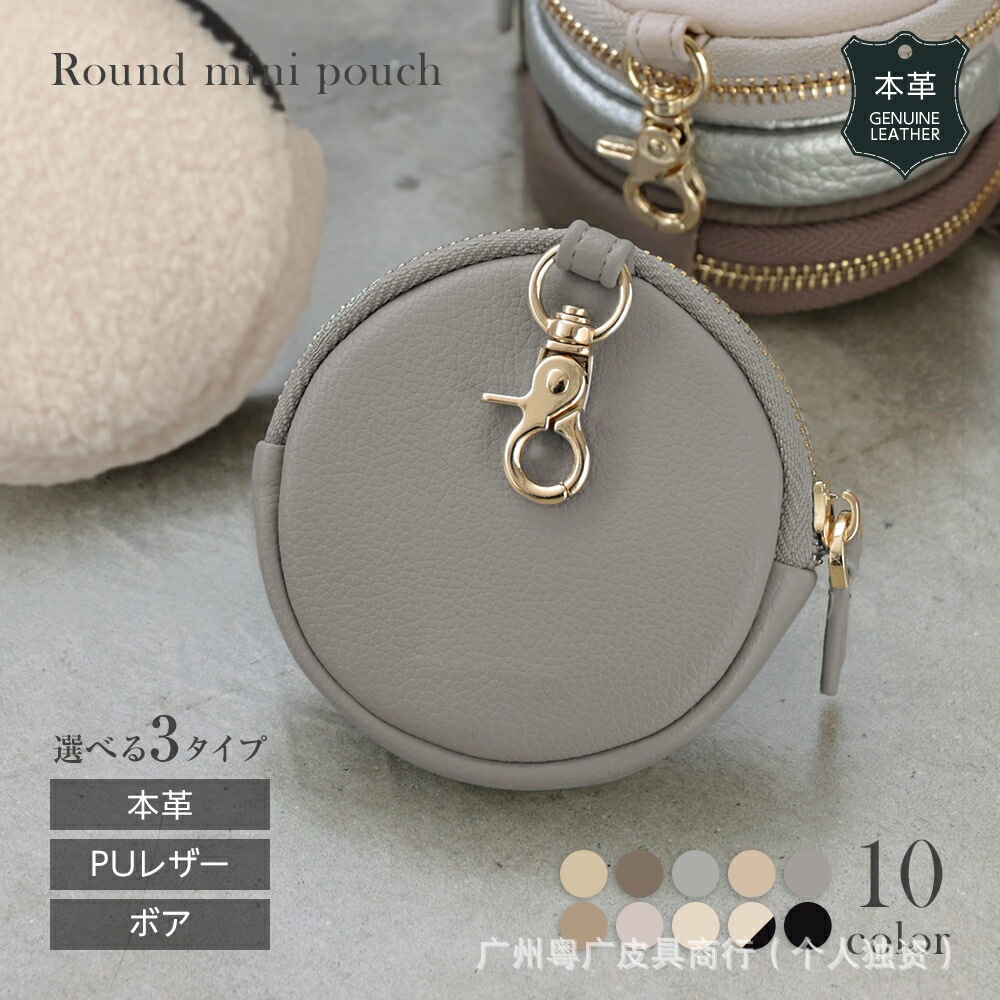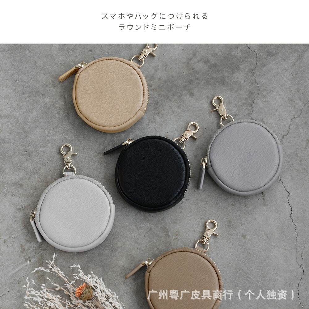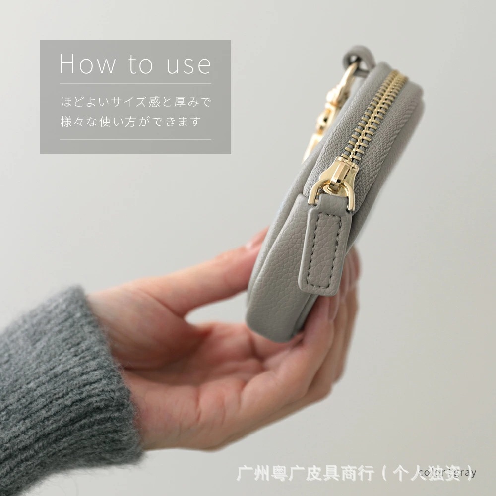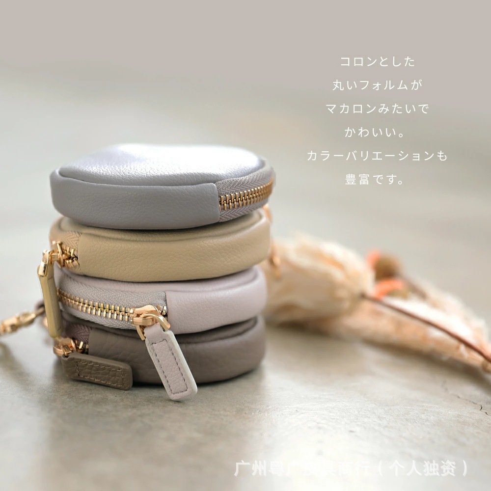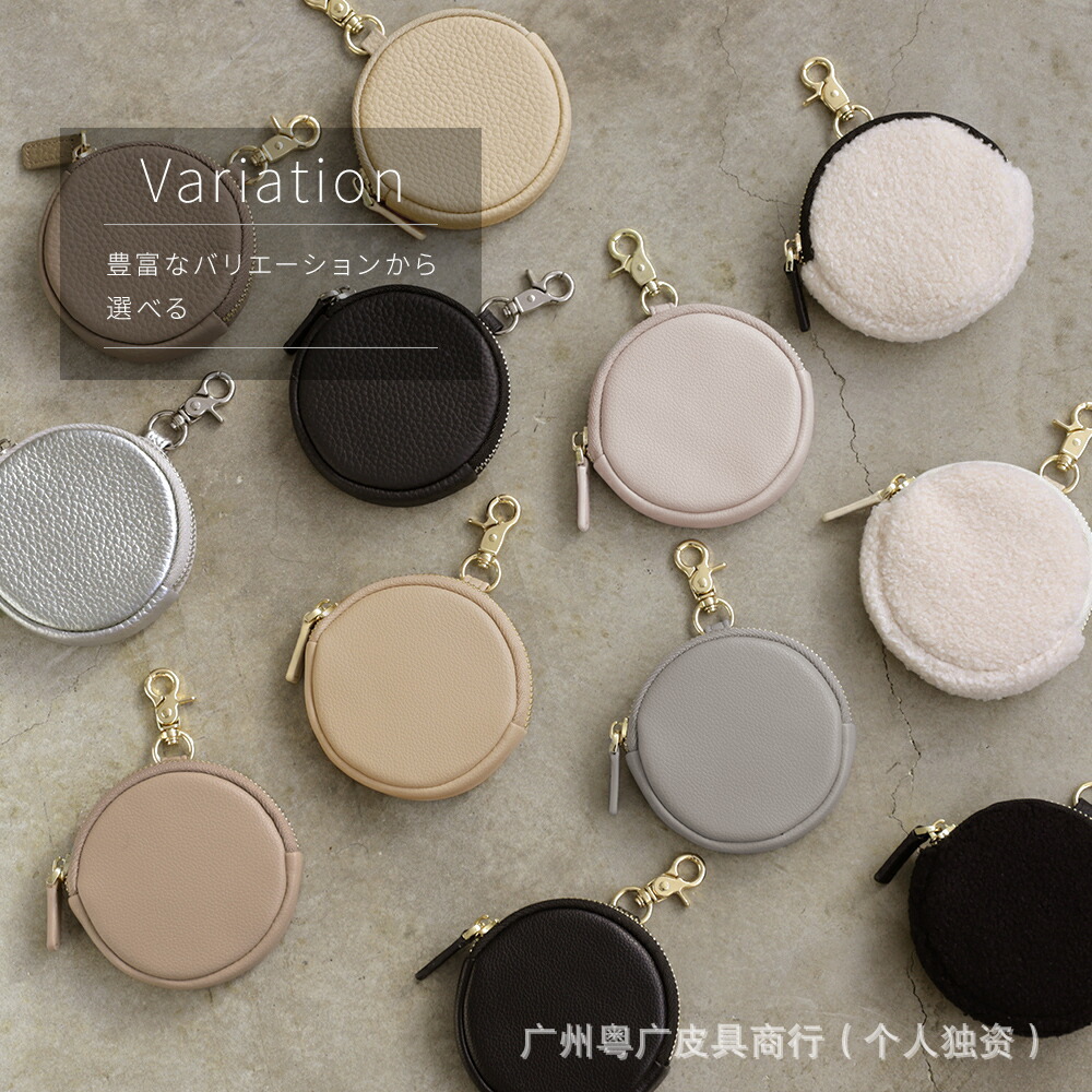 일본 라쿠텐 새로운 정품 가죽 라운드 동전 지갑 Lychee 패턴 지퍼 휴대용 동전 가방 여성용 다기능 지갑스토어 가기