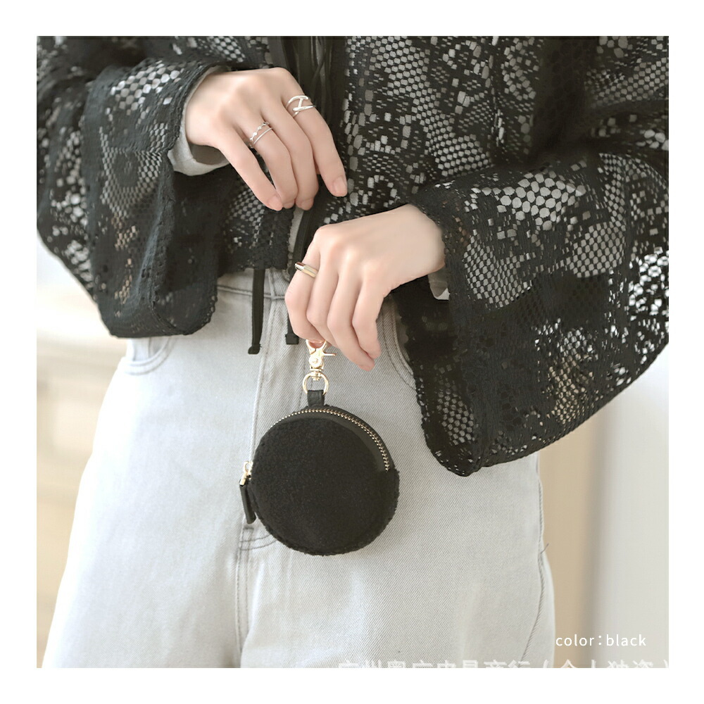 일본 라쿠텐 새로운 정품 가죽 라운드 동전 지갑 Lychee 패턴 지퍼 휴대용 동전 가방 여성용 다기능 지갑