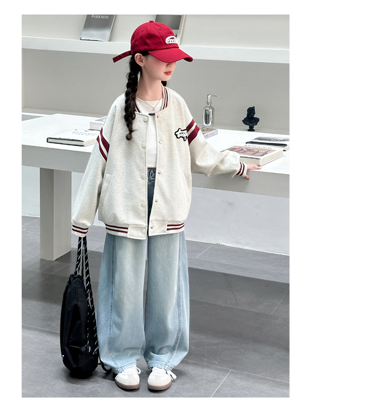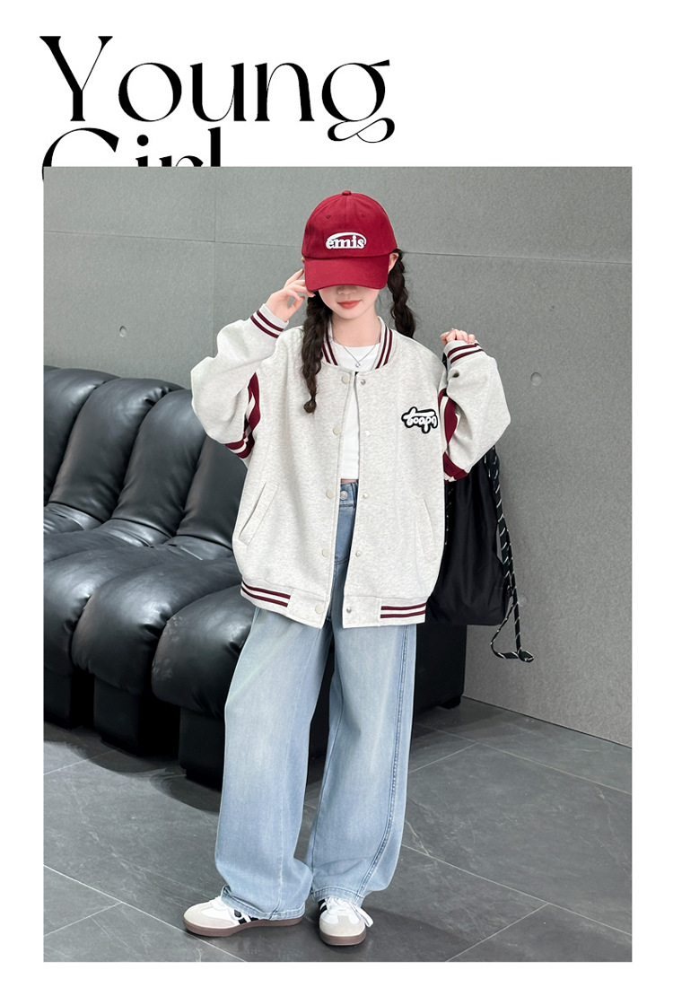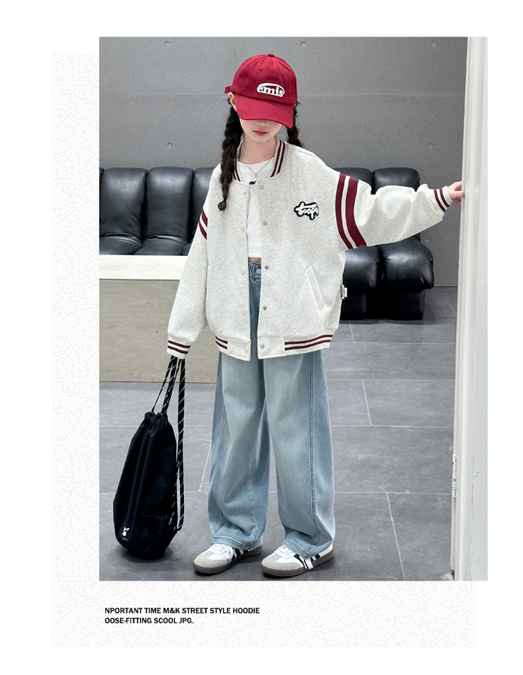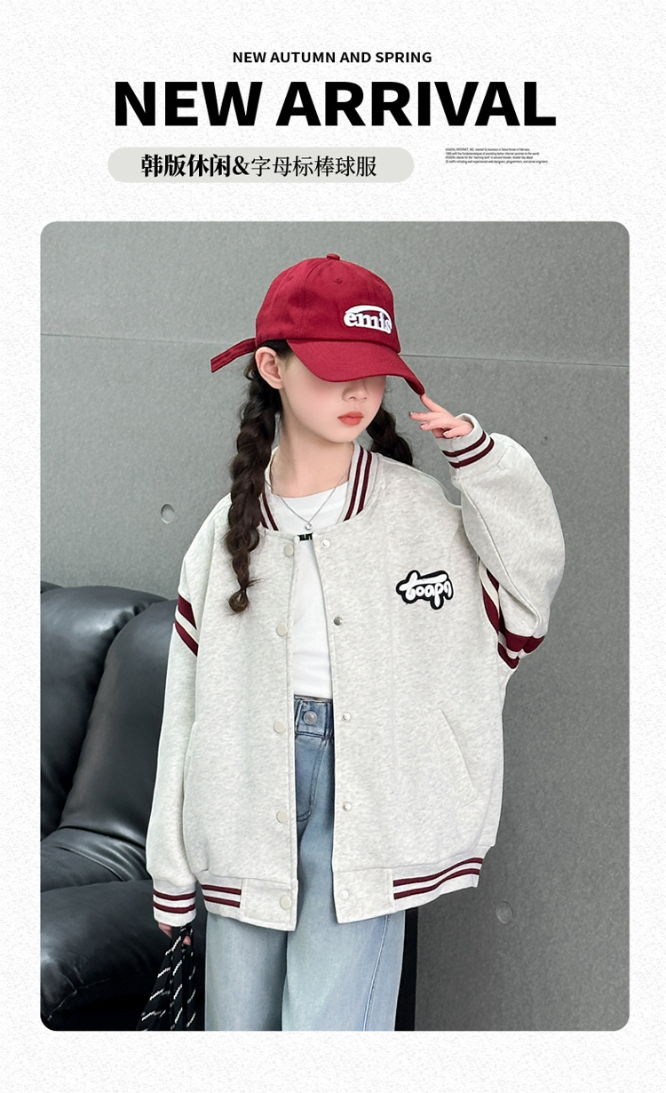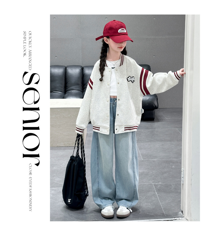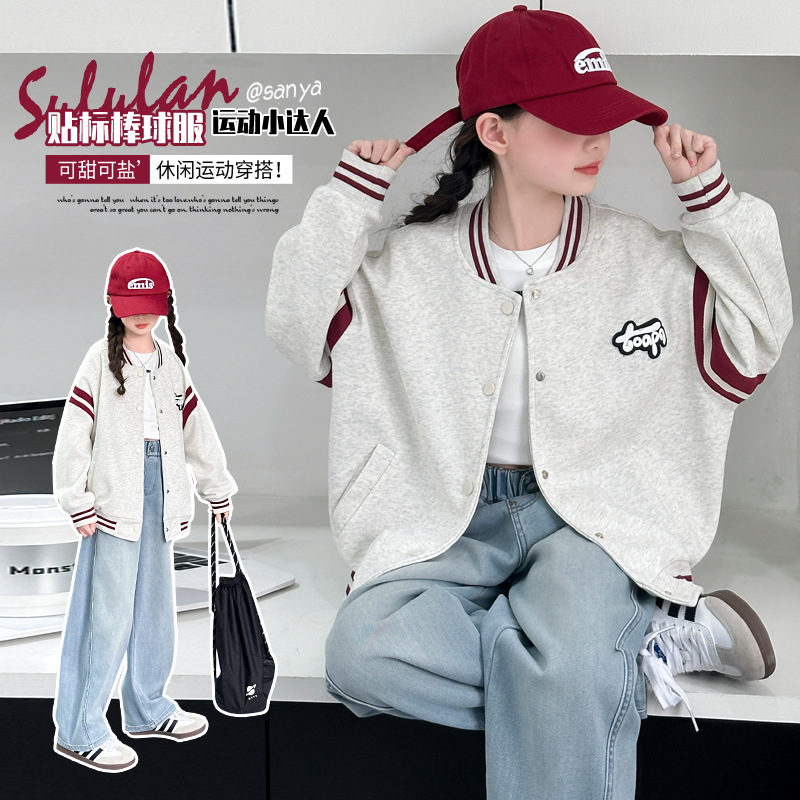 소녀 봄 코트 2025 새로운 어린이 서양식 대형 어린이 자켓 봄과 가을 유행 인터넷 축하 야구 세트 탑